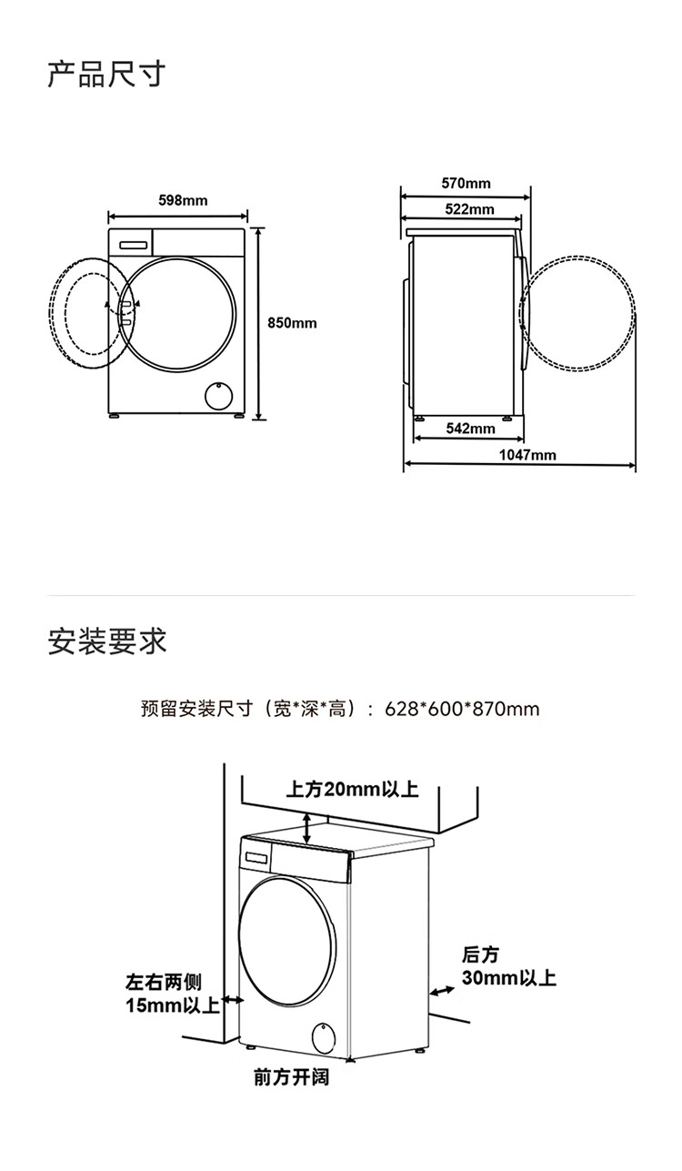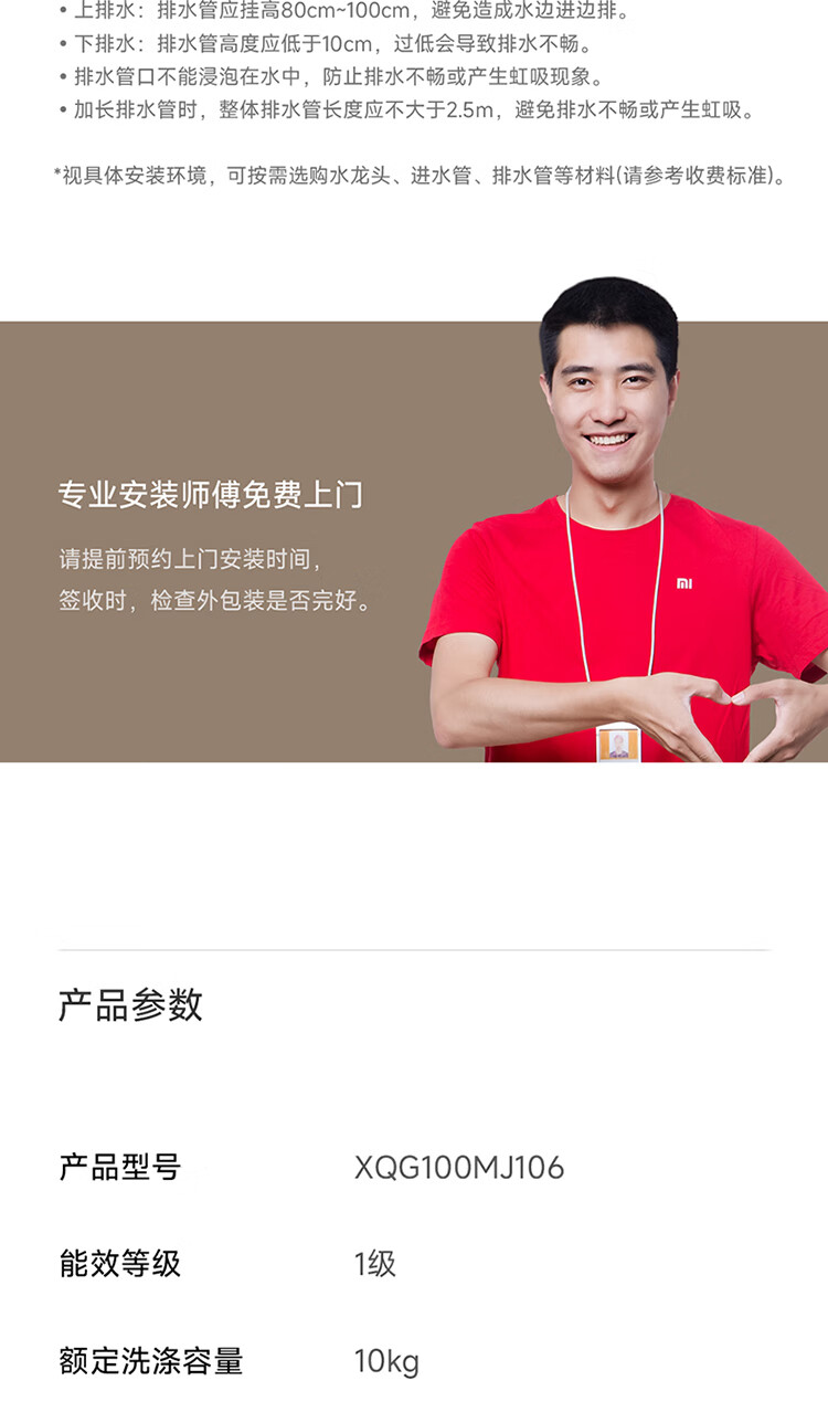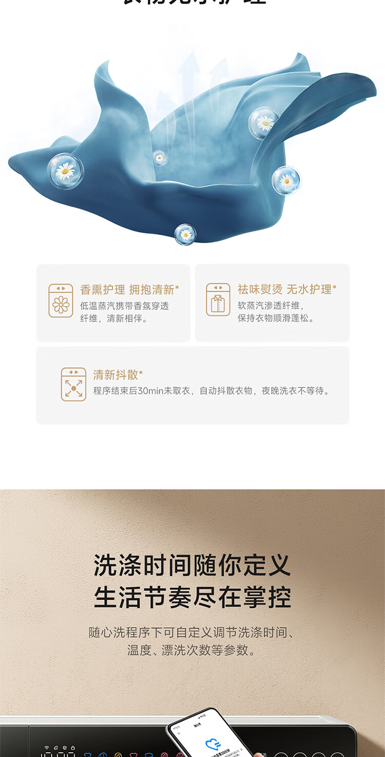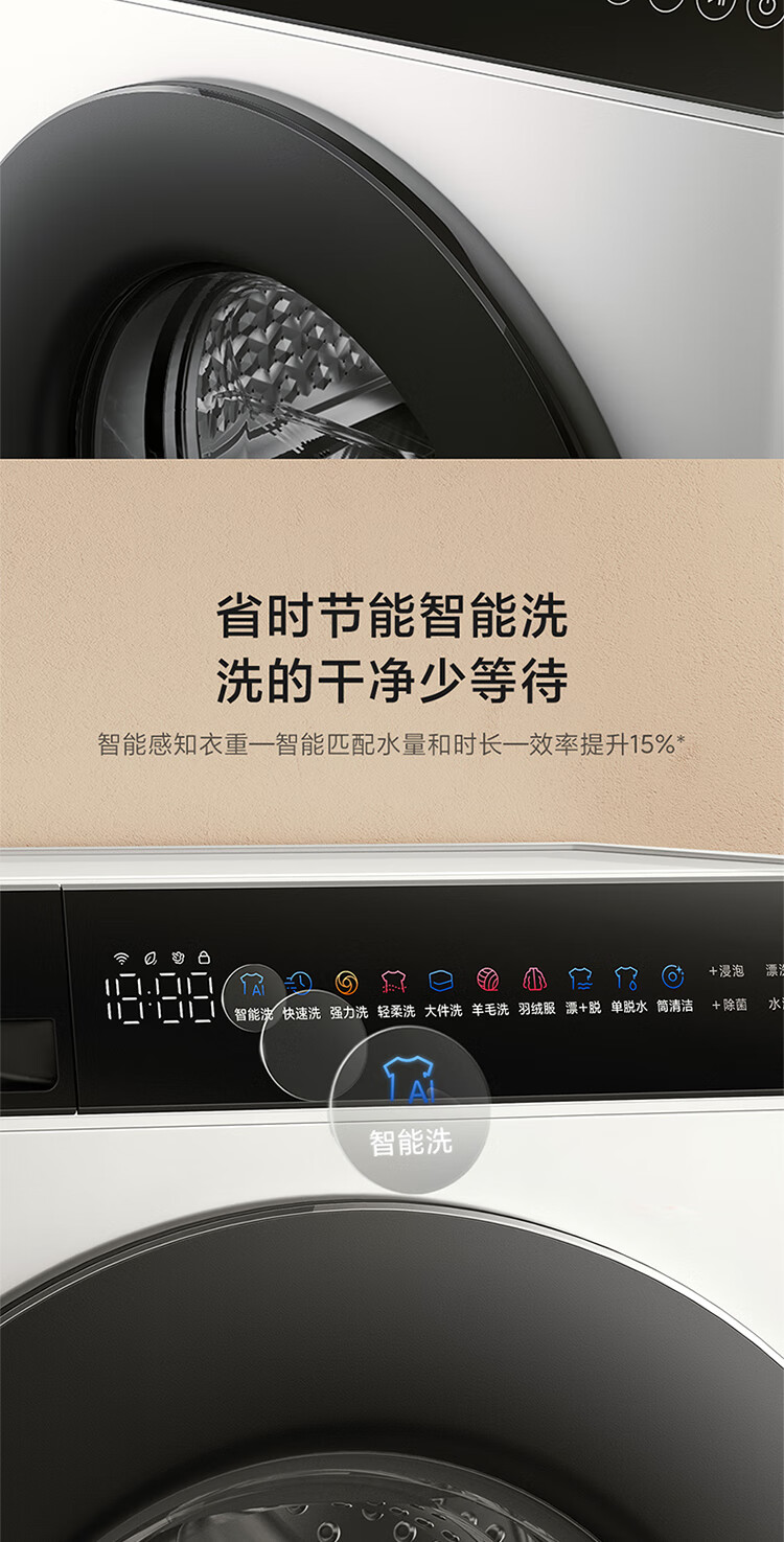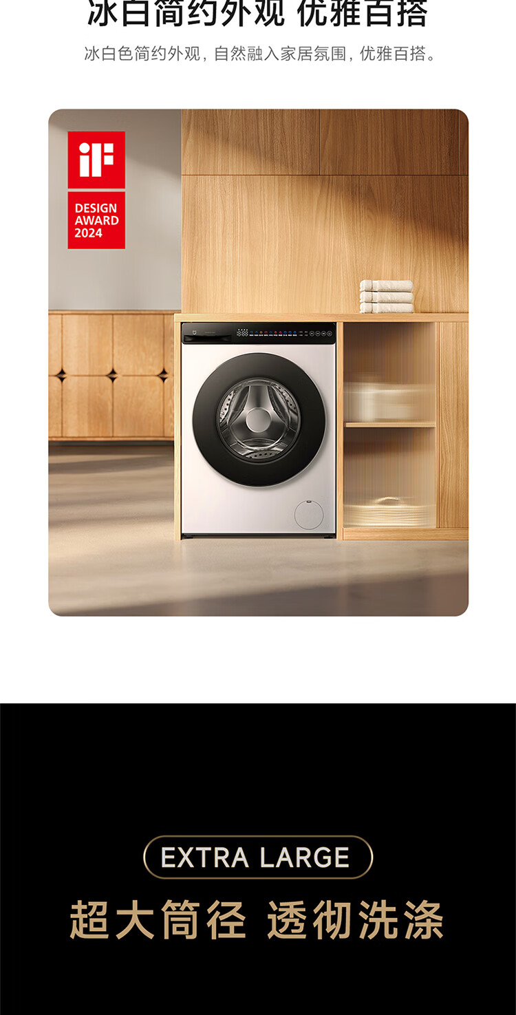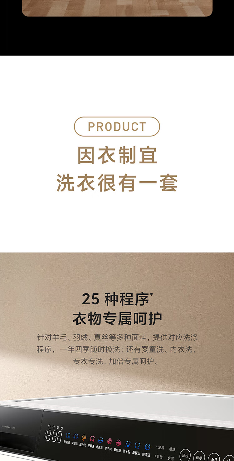 Mijia Xiaomi 10kg drum washing machine fully embedded body 525mm large drum diameter 1.1 high cleaning ratio direct drive motor to remove mites XQG100MJ106 507mm thin fully embedded cleaning 10kg drum