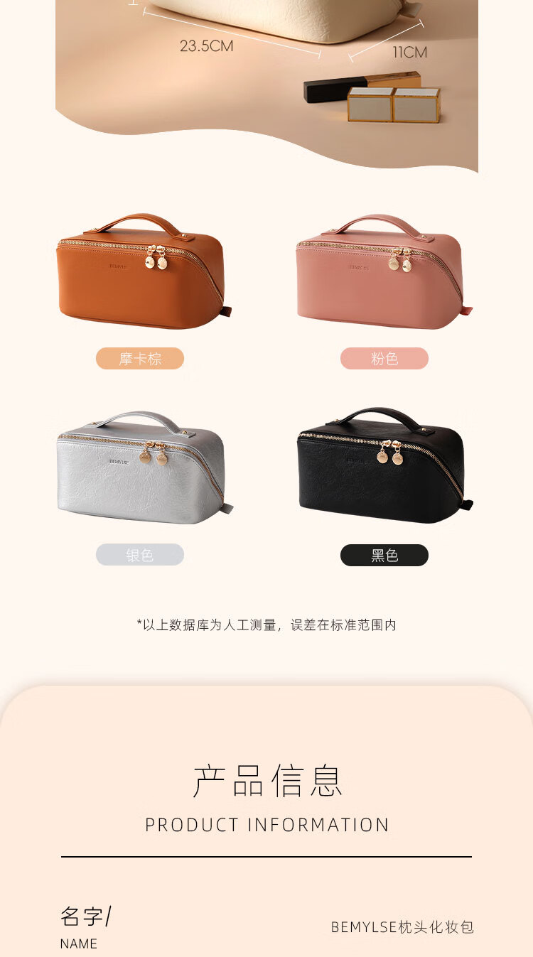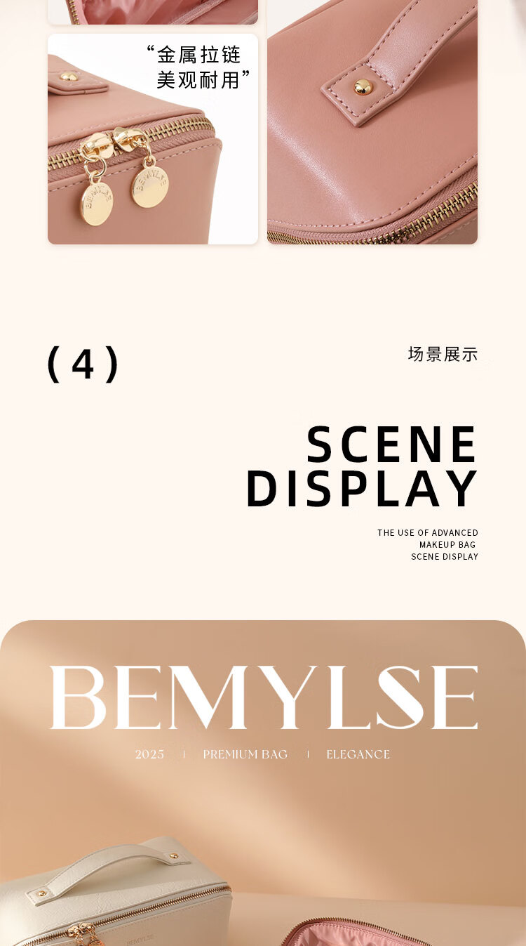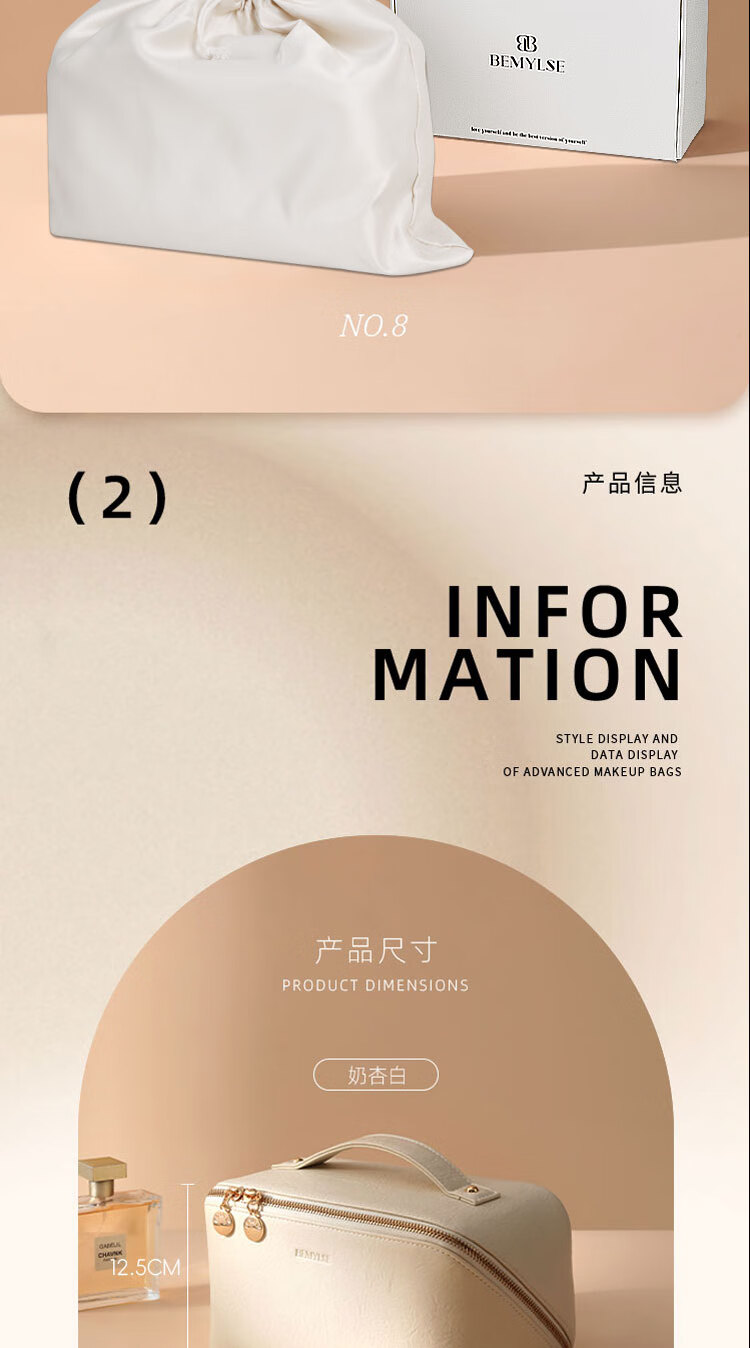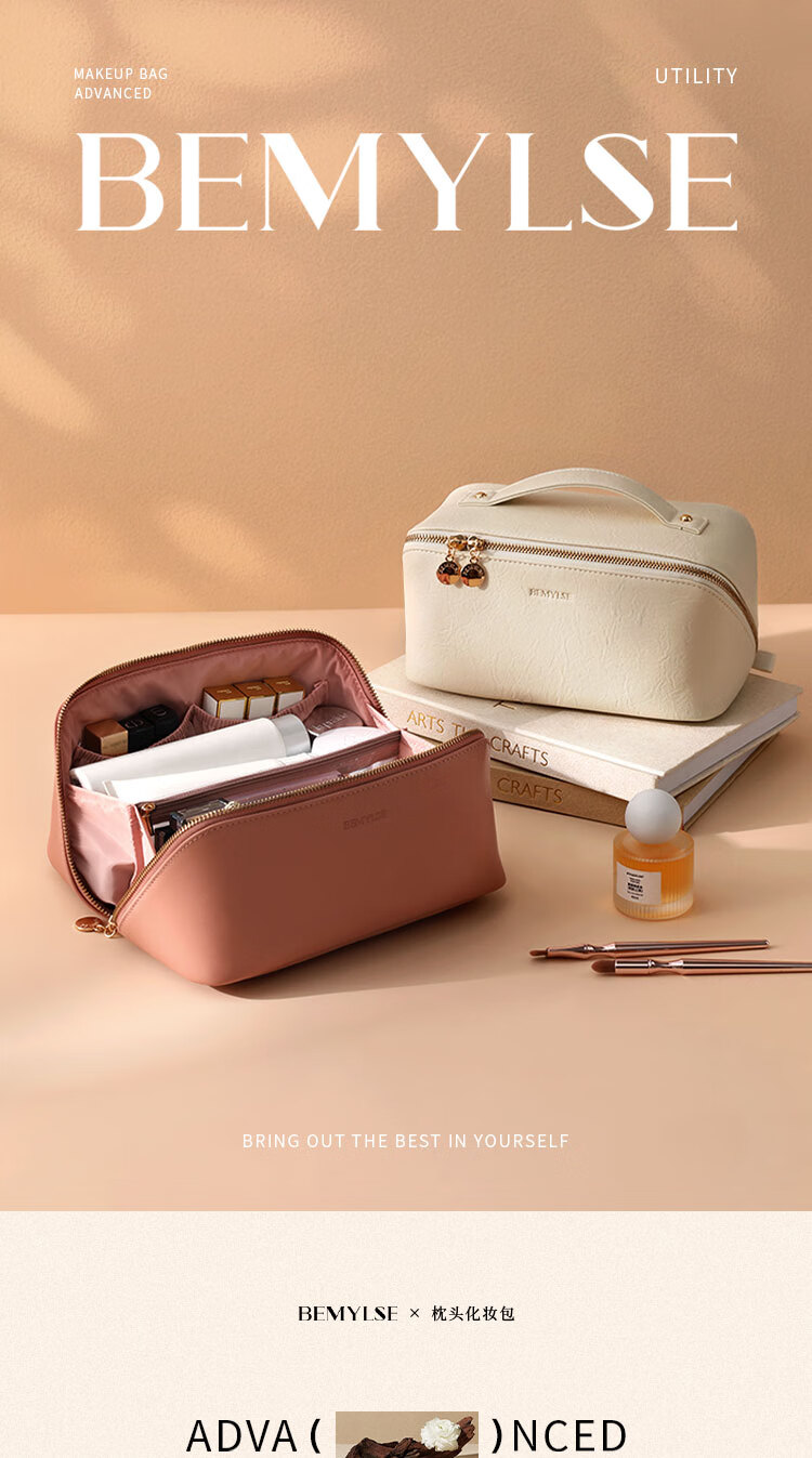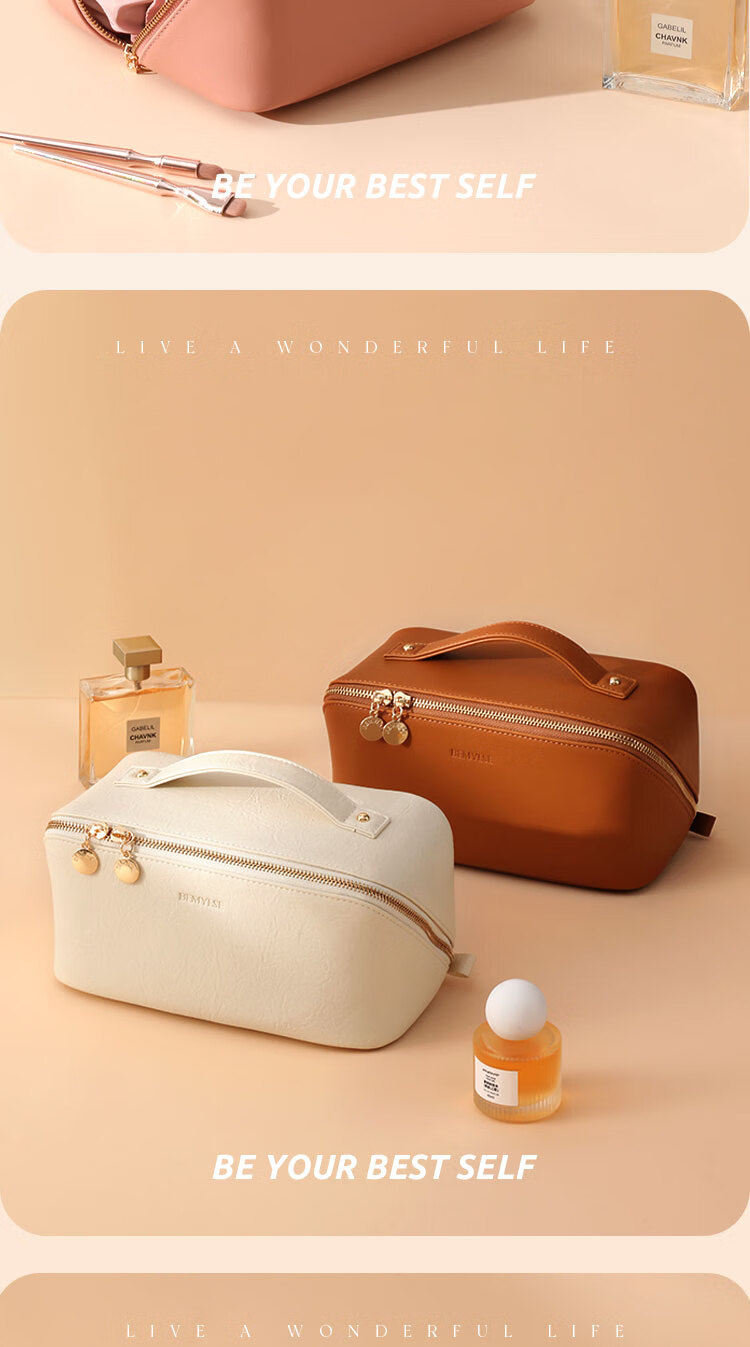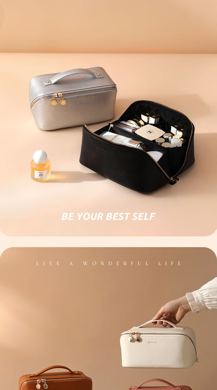 BEMYLSE high-end cosmetic bag for women 2025 new portable Bemylse large capacity portable storage bag travel toiletry bag 23.5*11*11cm brown