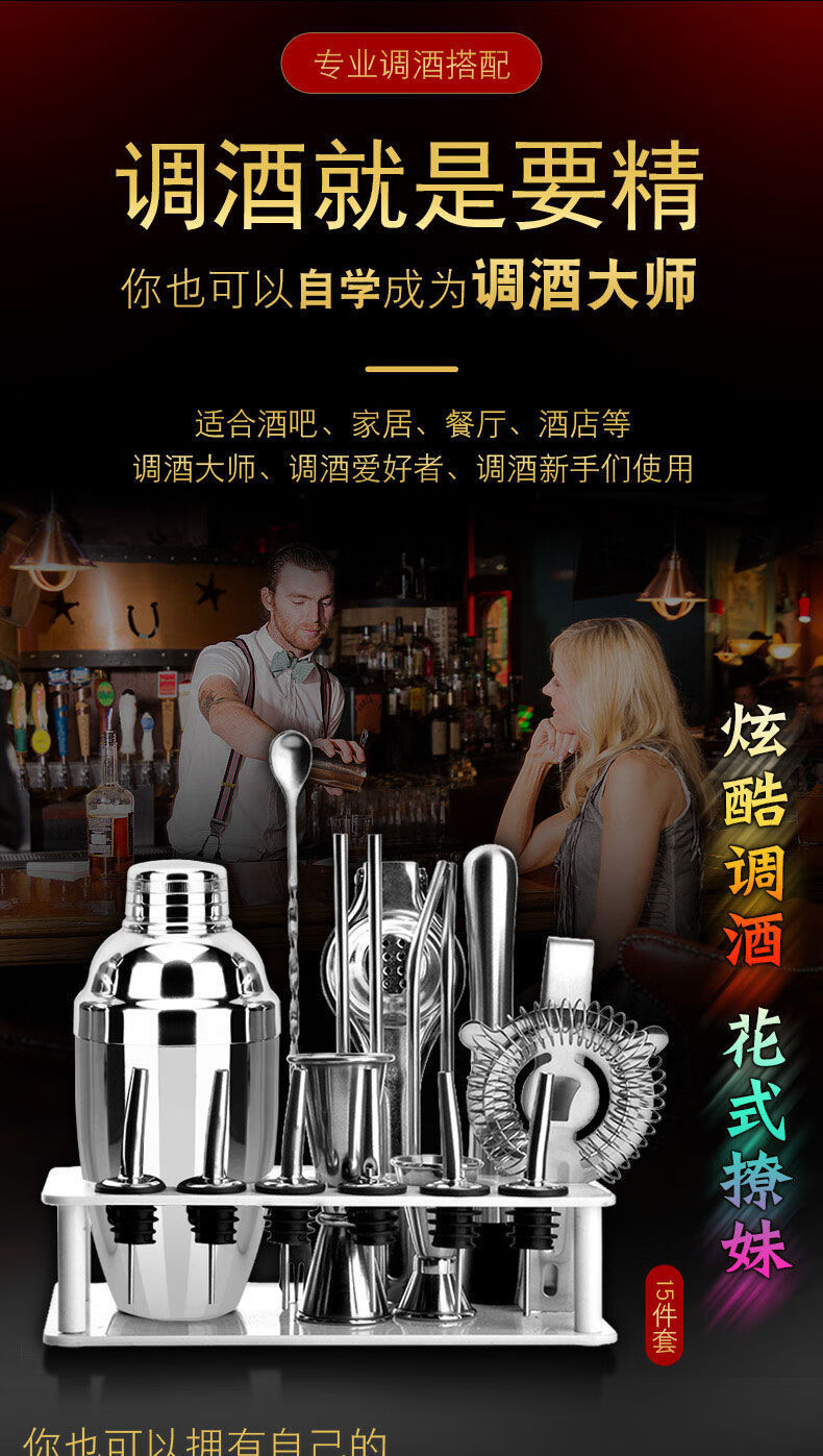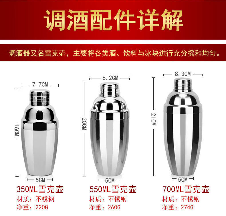 Zixi stainless steel mixer set shaker cup cocktail shaker shaker bar full set of tools bartending accessories basic three-piece set 550ML