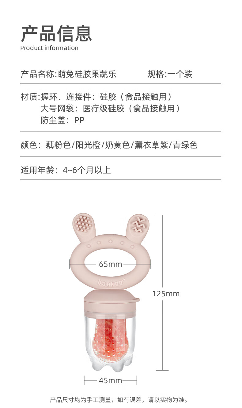 Haakaa baby food bite bag fruit and vegetable teether baby teething stick eating fruit pacifier food supplement artifact lotus root pink 1 pack