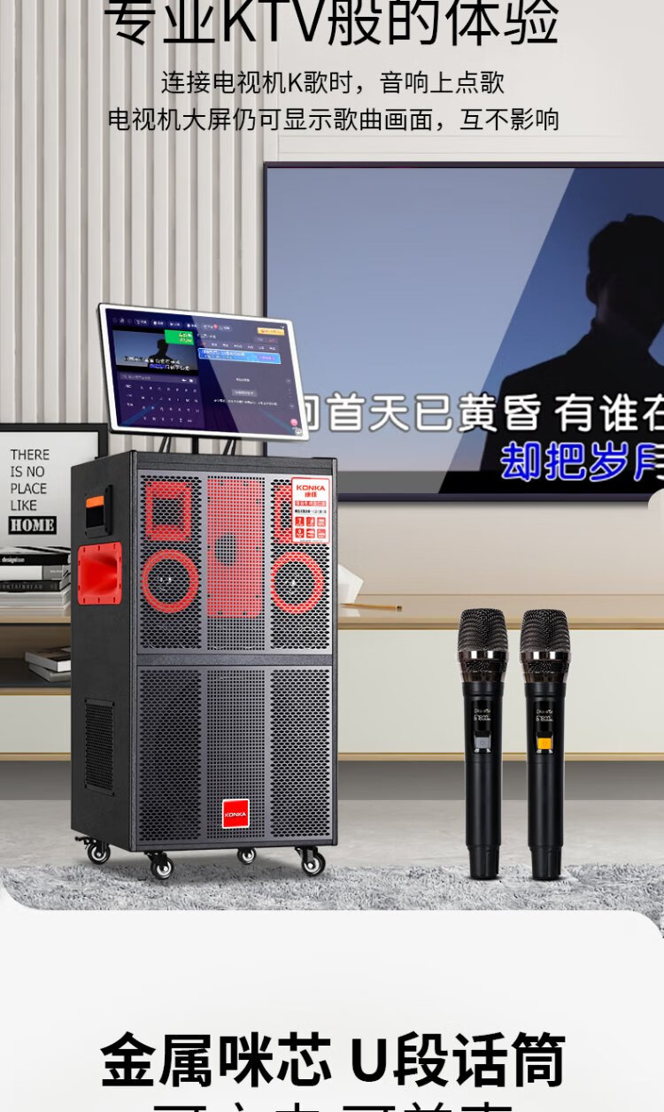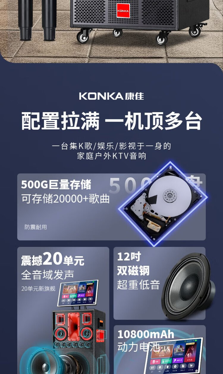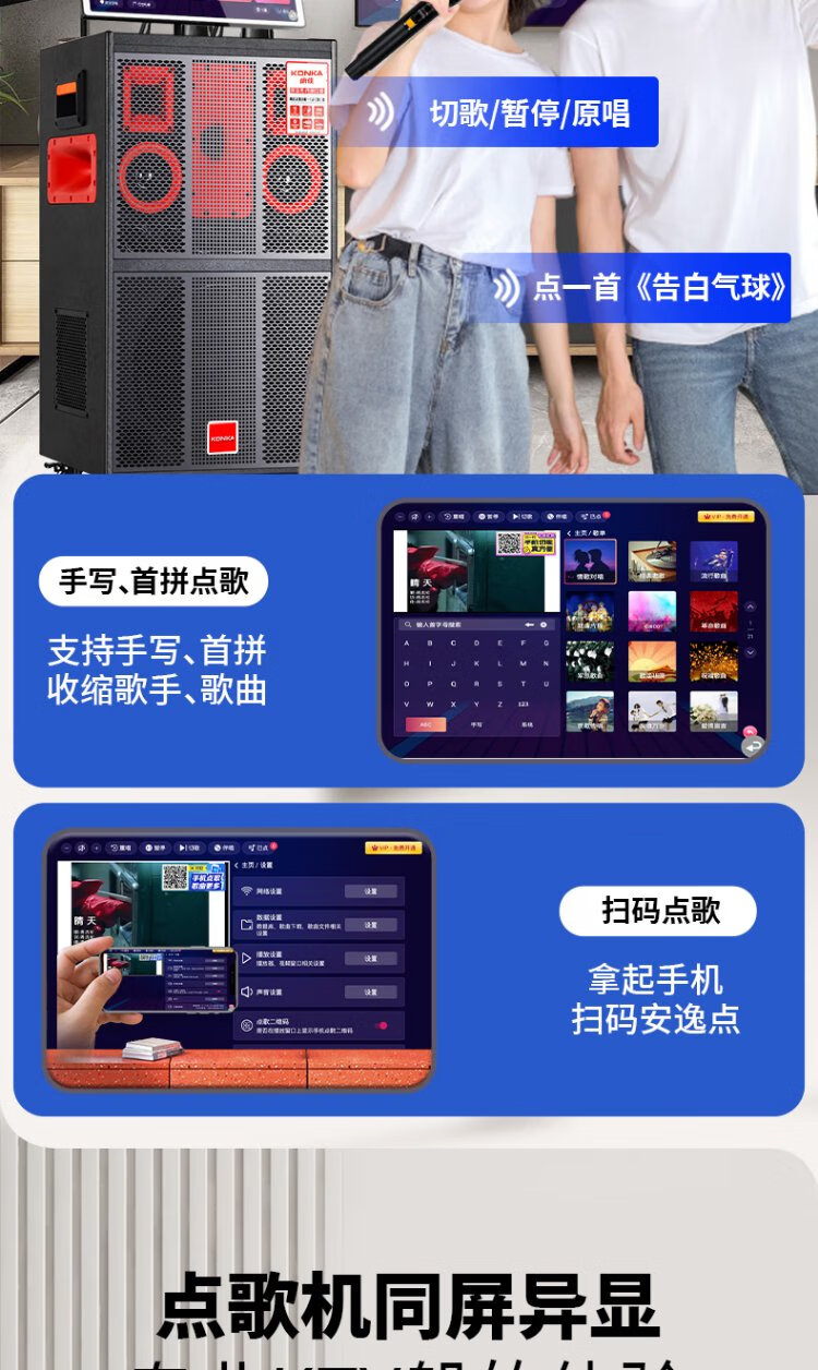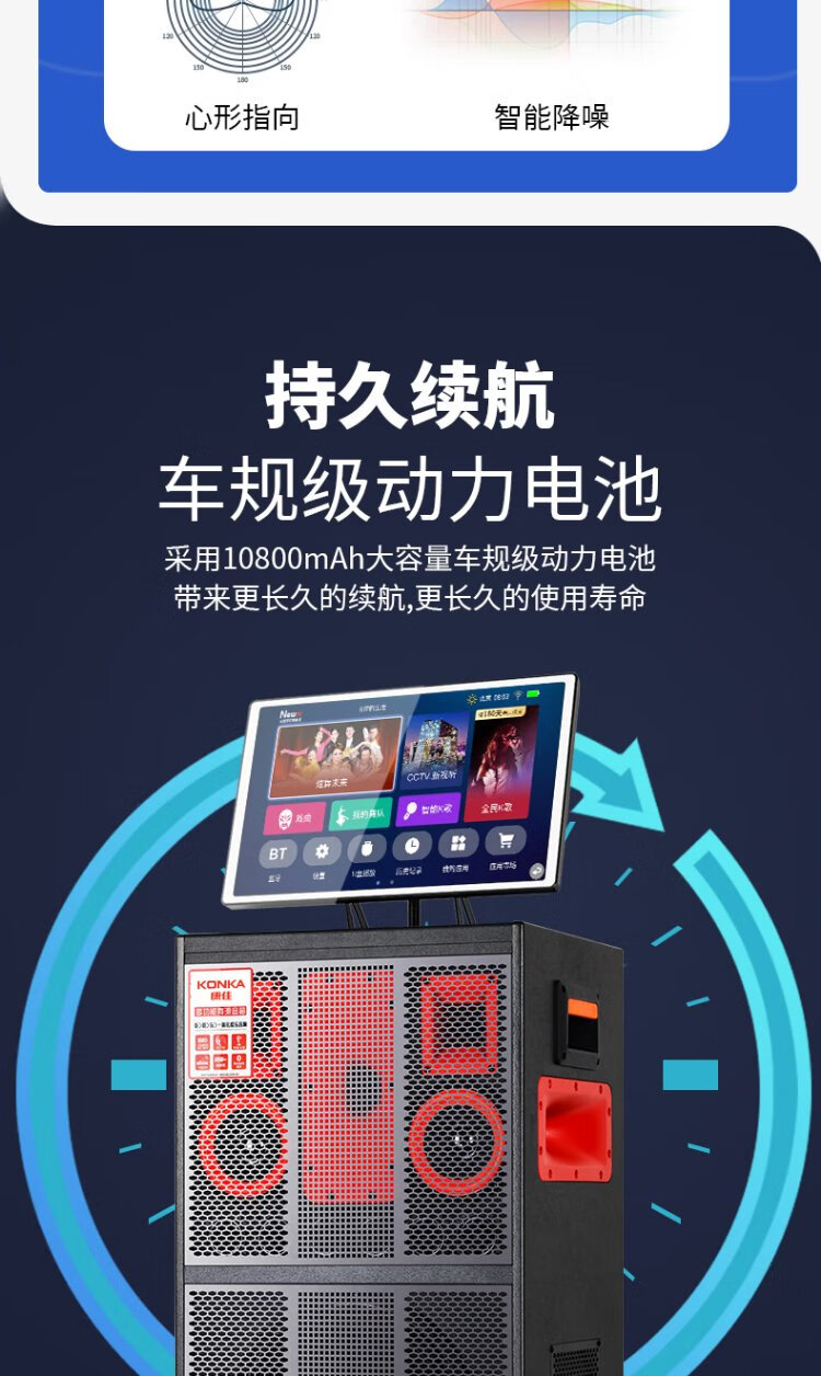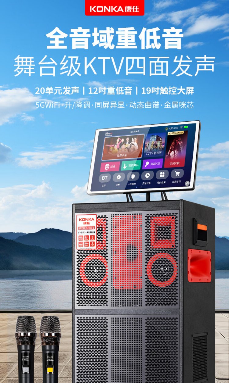 Konka home ktv audio set outdoor square dance audio with display screen home mobile karaoke live performance speaker large volume karaoke machine touch screen integrated karaoke machine 17-inch screen 10-inch bass 10-speaker dual microphone