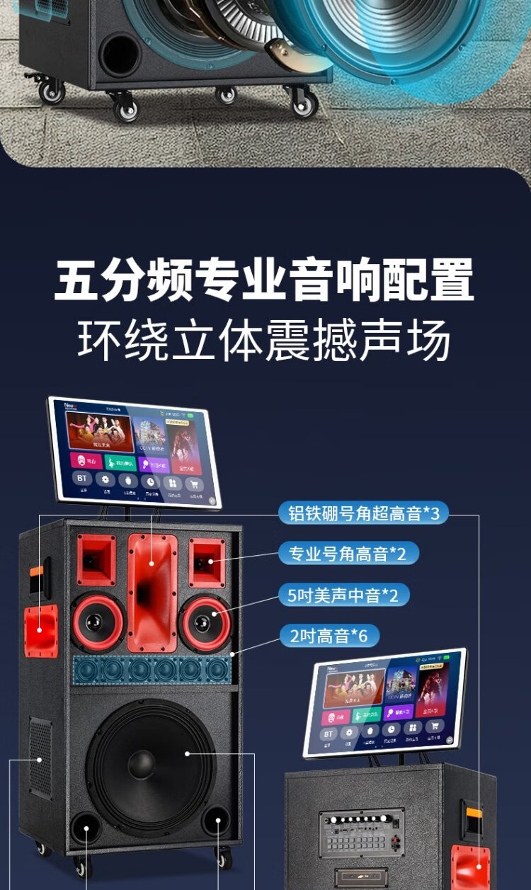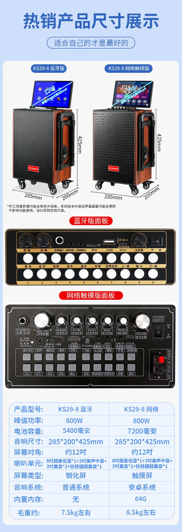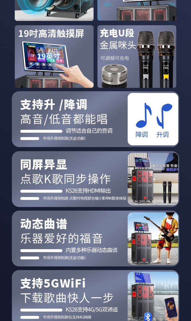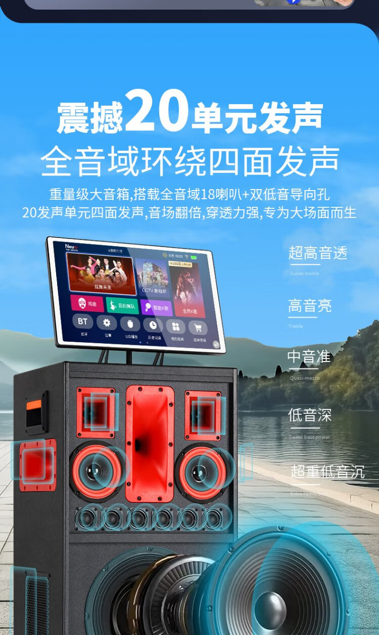 Konka home ktv audio set outdoor square dance audio with display screen home mobile karaoke live performance speaker large volume karaoke machine touch screen integrated karaoke machine 17-inch screen 10-inch bass 10-speaker dual microphone