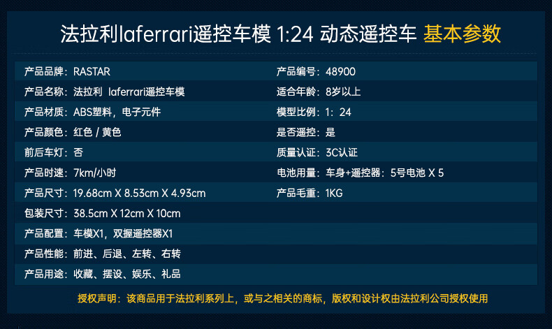 RASTAR Ferrari remote control car electric racing sports car simulation model boys and children toy car Ferrari laferrari-red rechargeable model (with charger + rechargeable battery)
