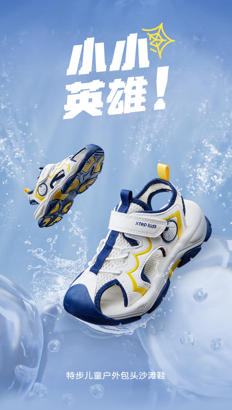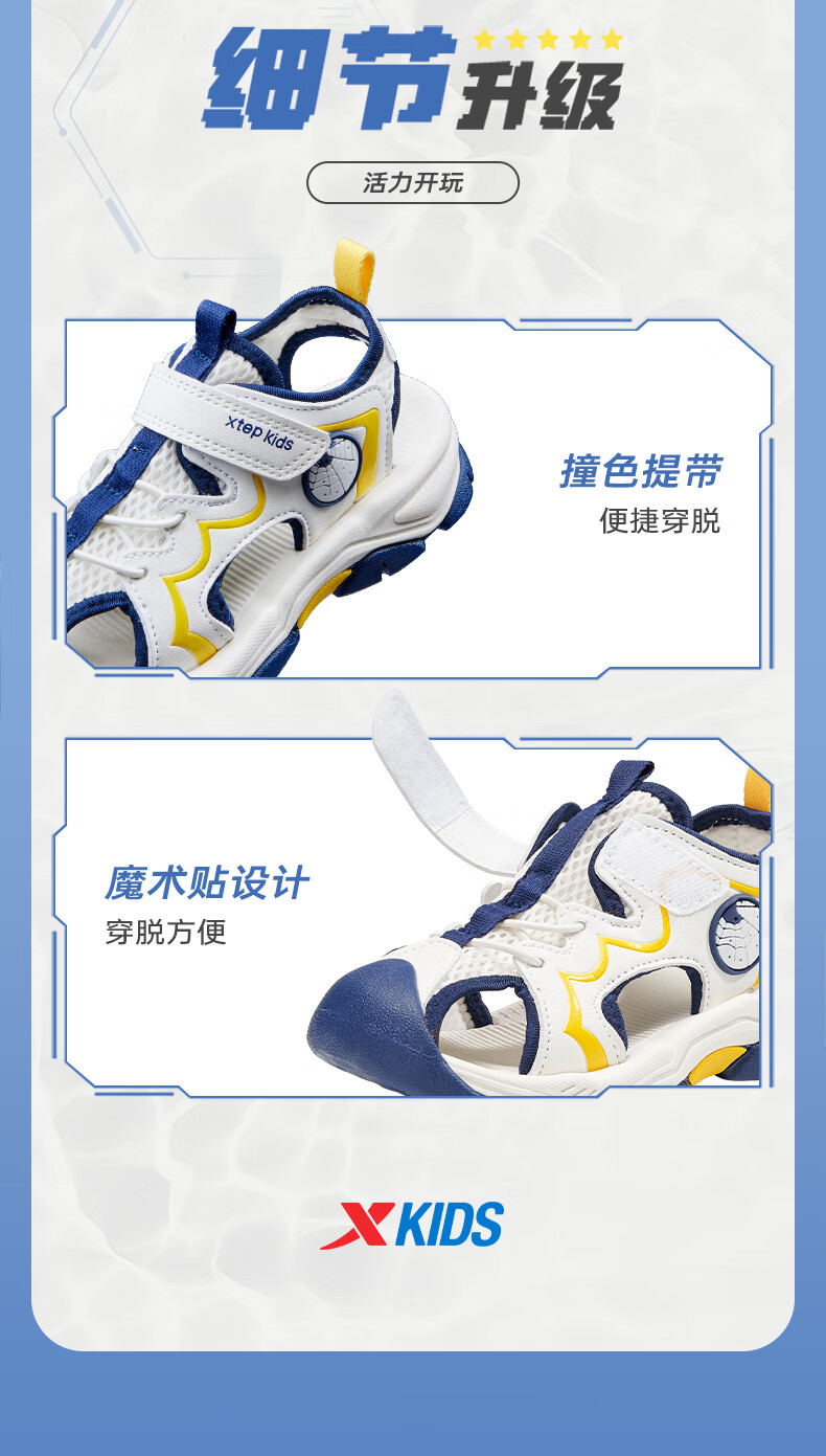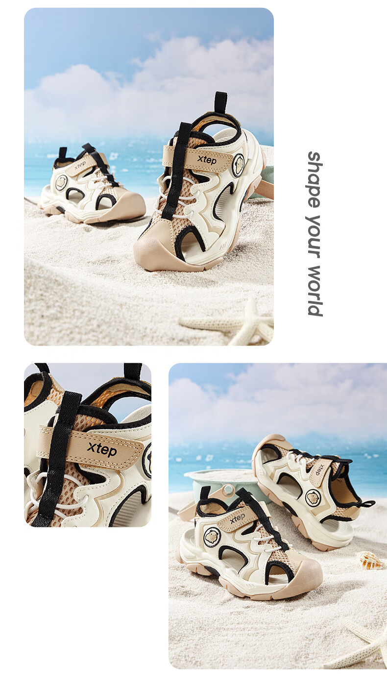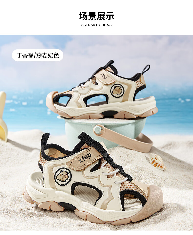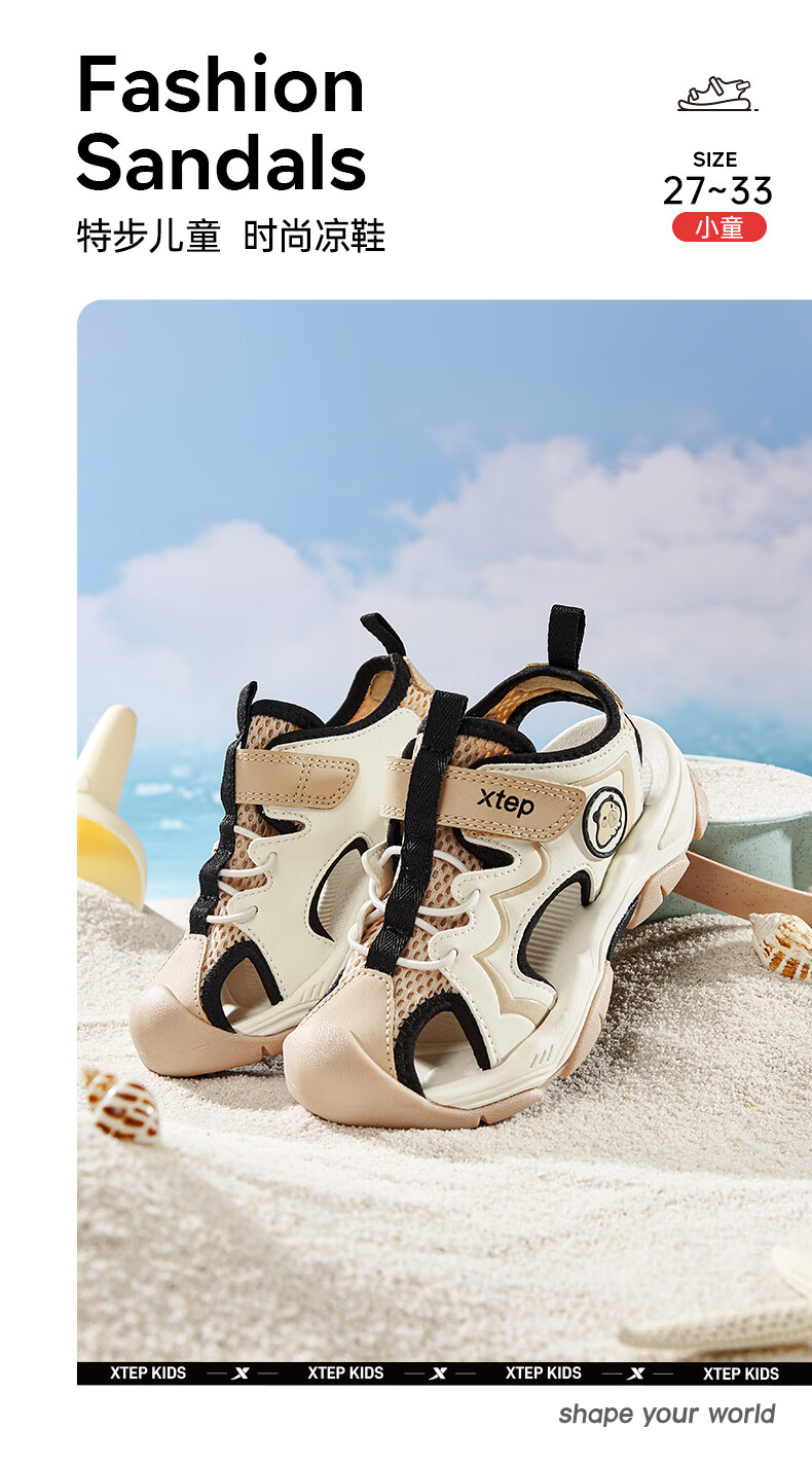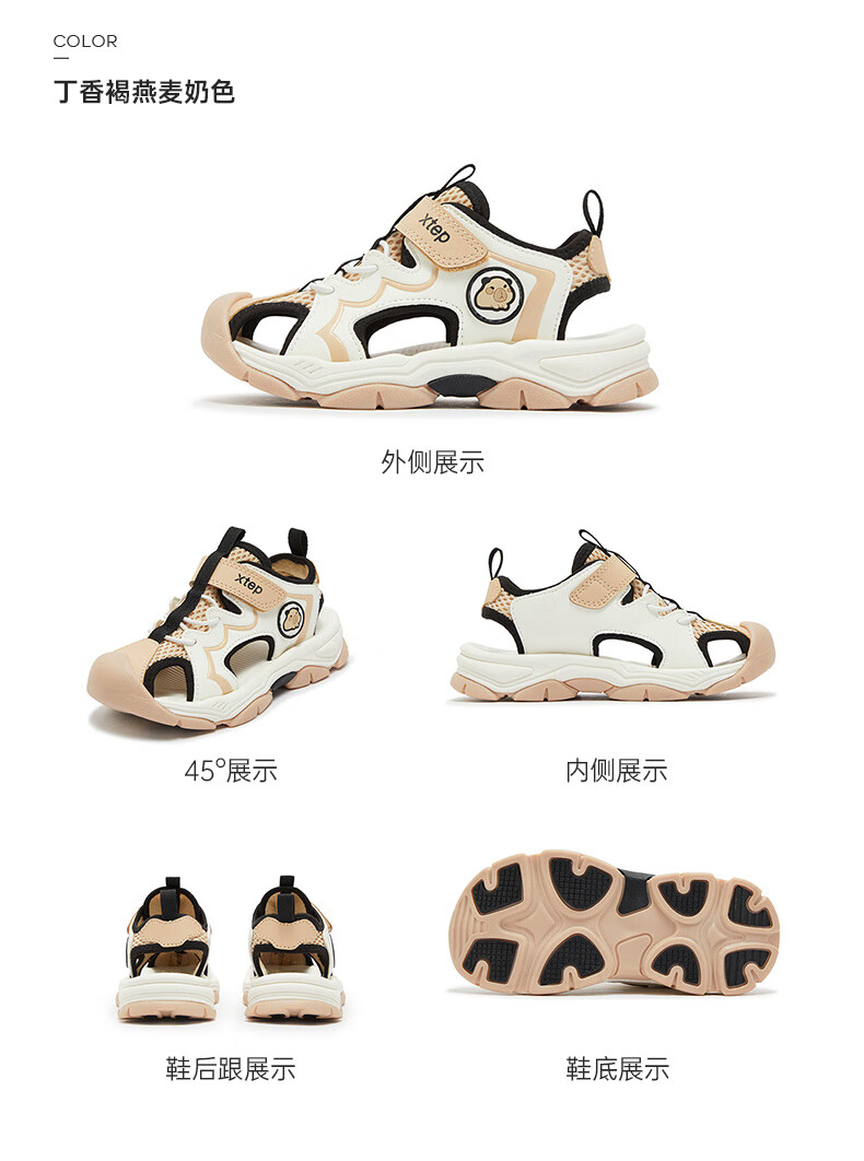 Xtep Children's Beach Shoes Summer Boys and Kids Breathable Mesh Cushioning Comfortable Wear-Resistant Non-Slip Fashionable Versatile Sandals Lilac Brown/Oatmeal Milk 28