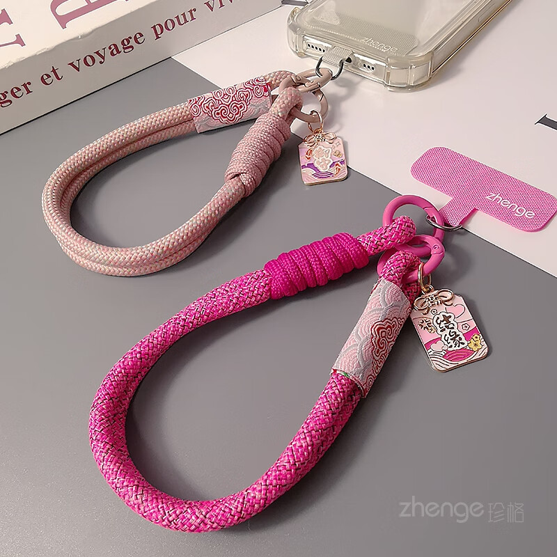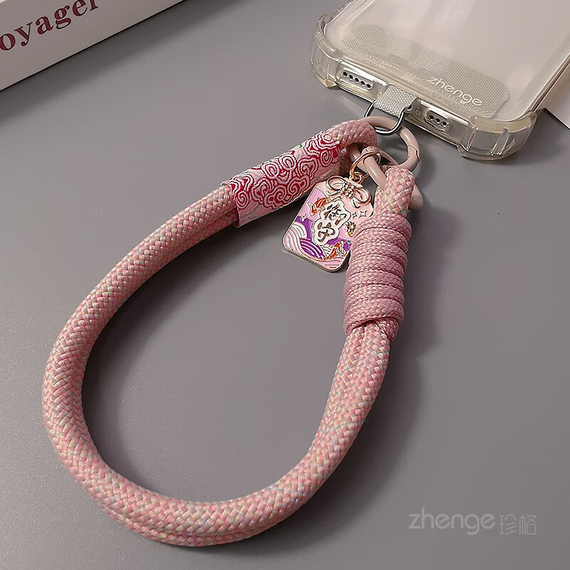 Xinzhufu brand pendant Guofeng Xiangyun mobile phone lanyard wrist short ins women's outdoor anti-lost hand rope travel anti-lost mobile phone case pendant small sling strong and durable new pastel Xiangyun two-strand simple thick hand rope + gray long clip + Yushoufu brand