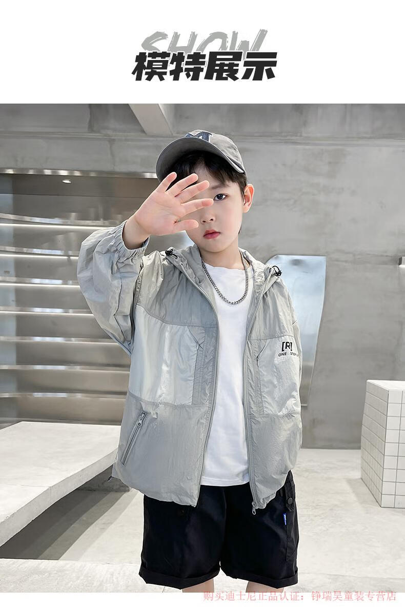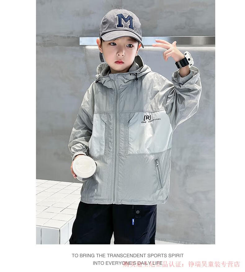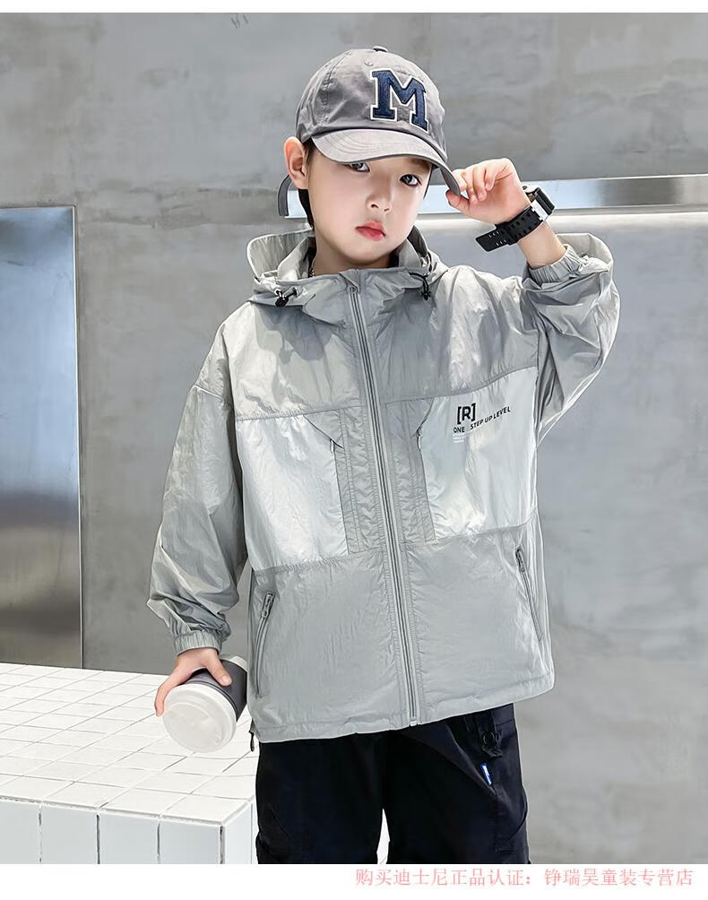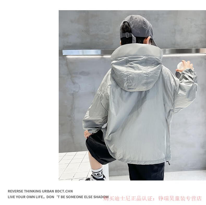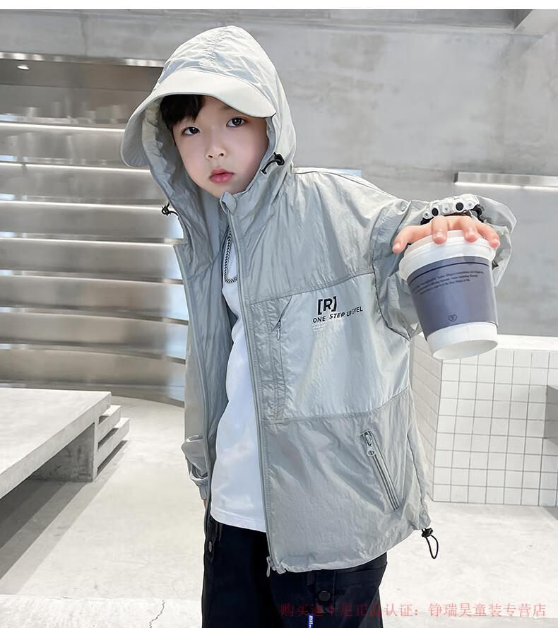 G.DUCKKIDS children's clothing boys summer sun protection clothing jacket 2025 new medium and large children summer boys thin breathable sun protection clothing gray 130 cm