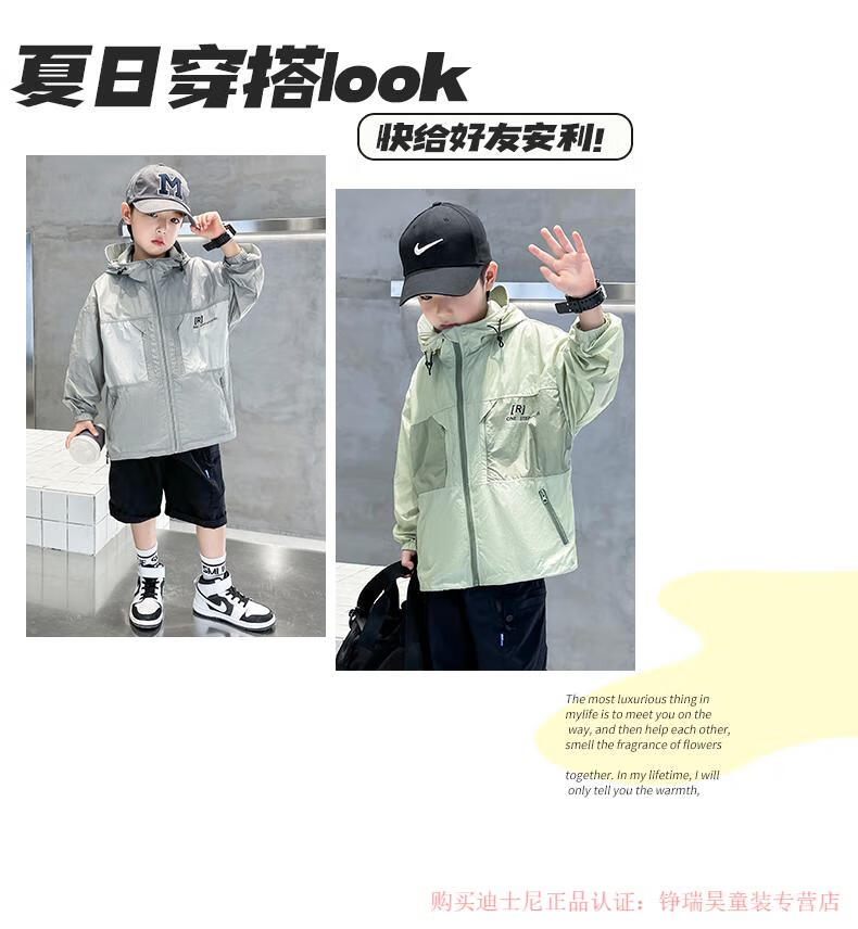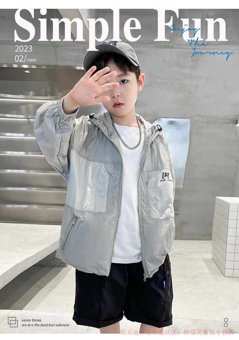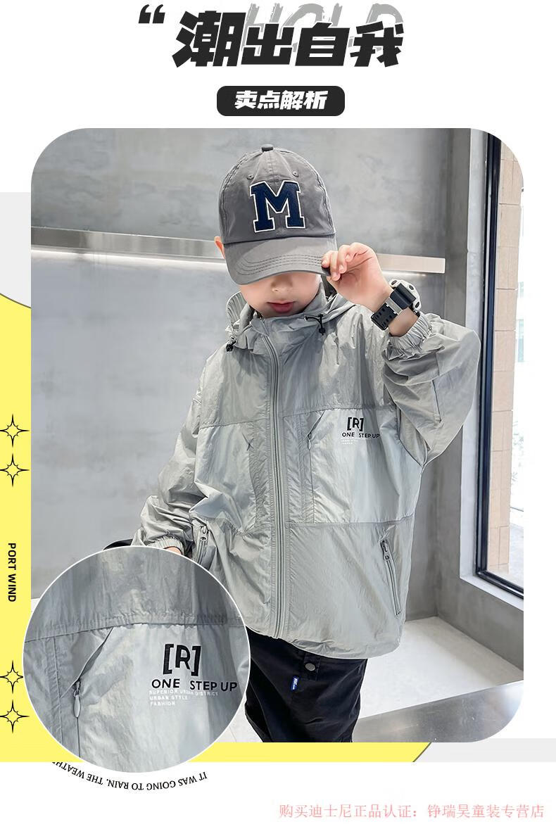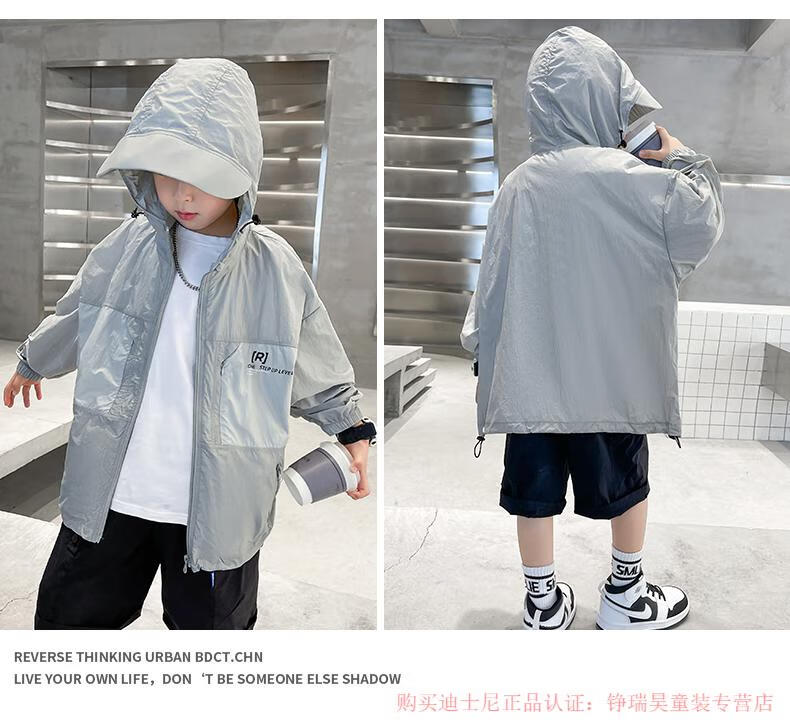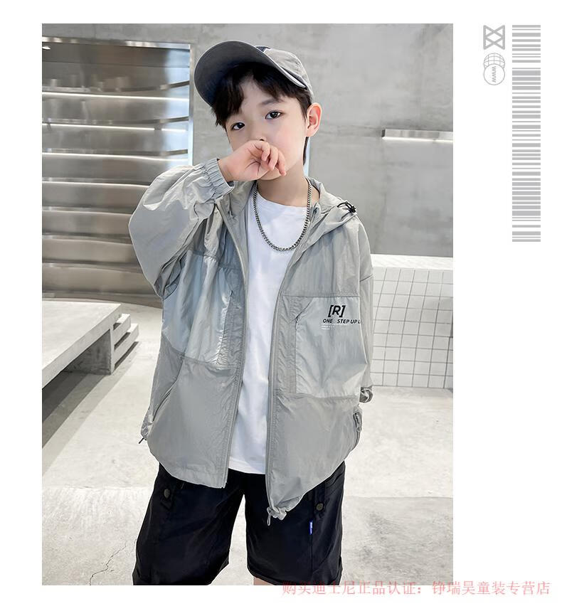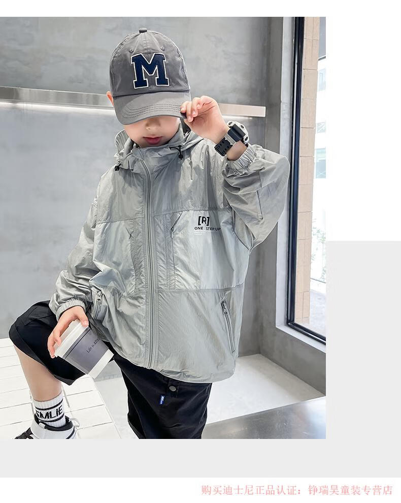 G.DUCKKIDS children's clothing boys summer sun protection clothing jacket 2025 new medium and large children summer boys thin breathable sun protection clothing gray 130 cm