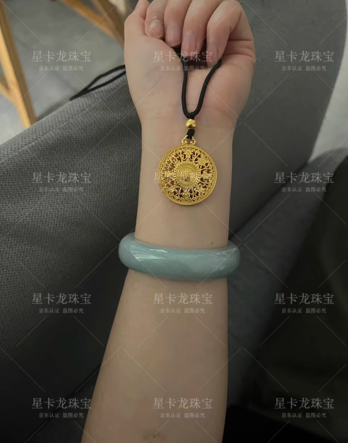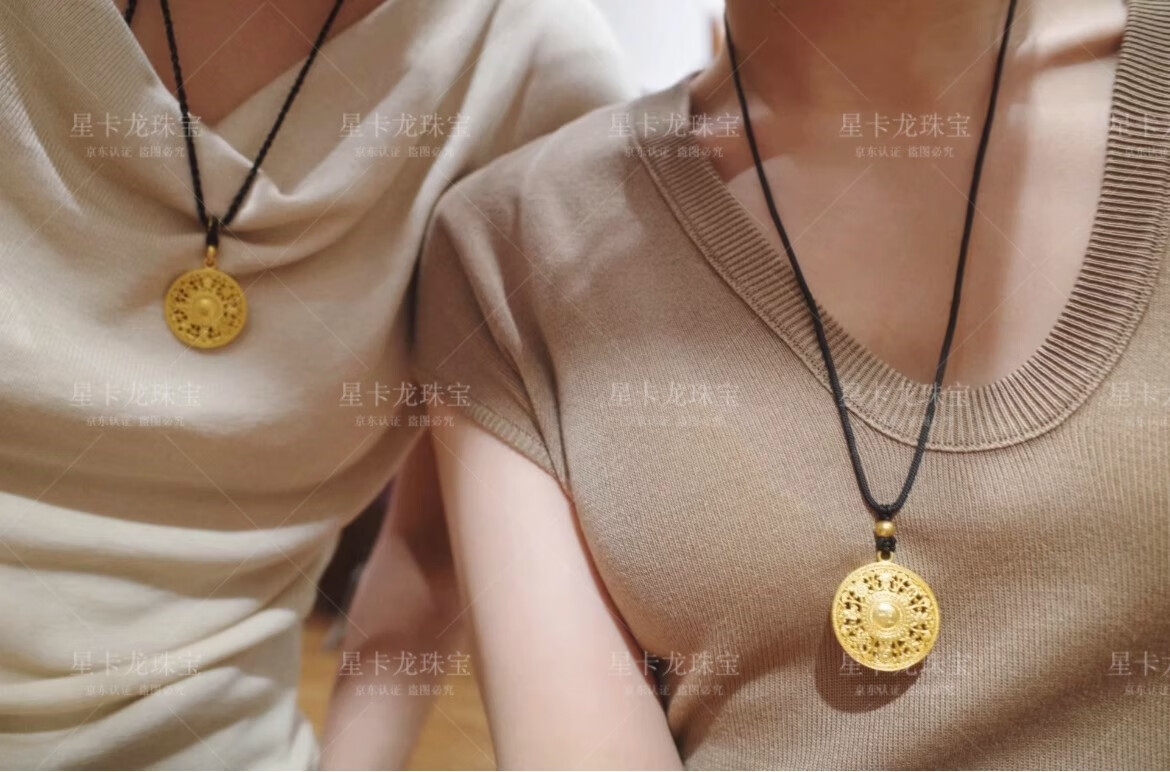 Xingkalong Gold Eight Treasures Compass Pendant 9999 Pure Gold Silver Packed Ancient Method Heritage Necklace Pendant for Girlfriend Gift for Wife 2.2g Gold Packed Eight Treasures Compass Pendant