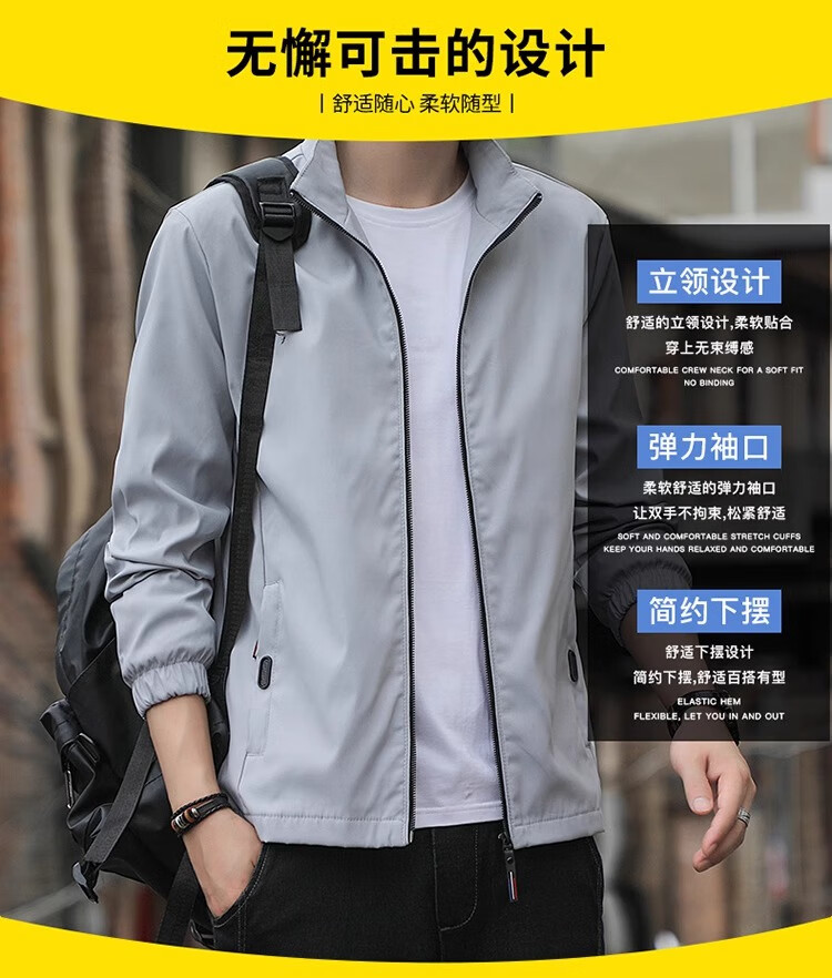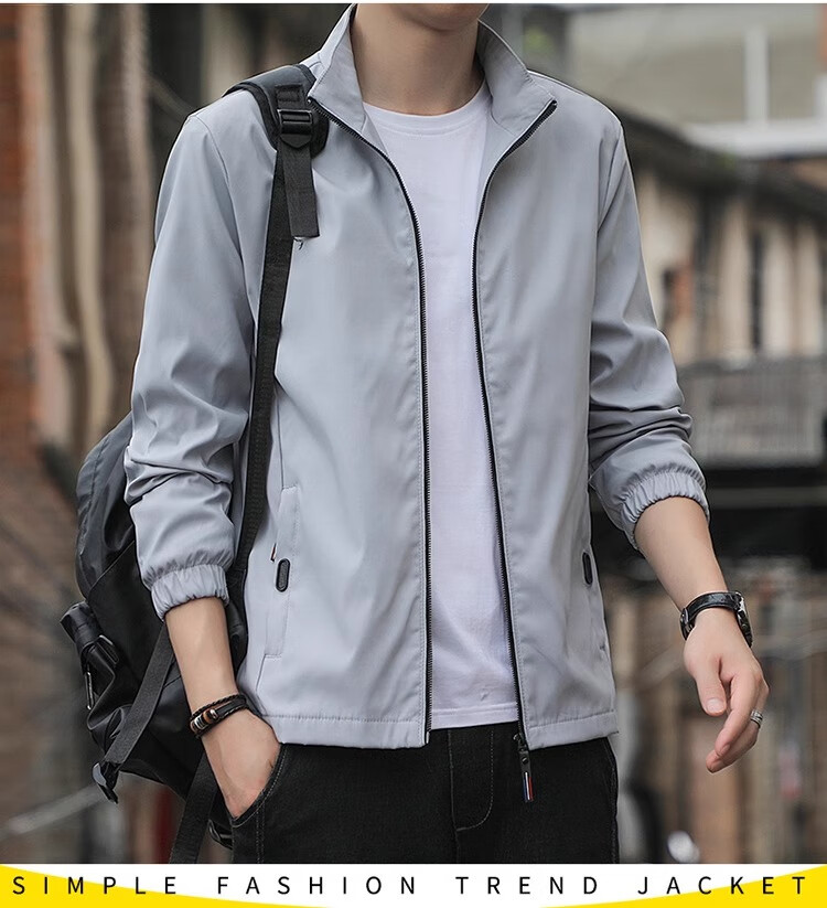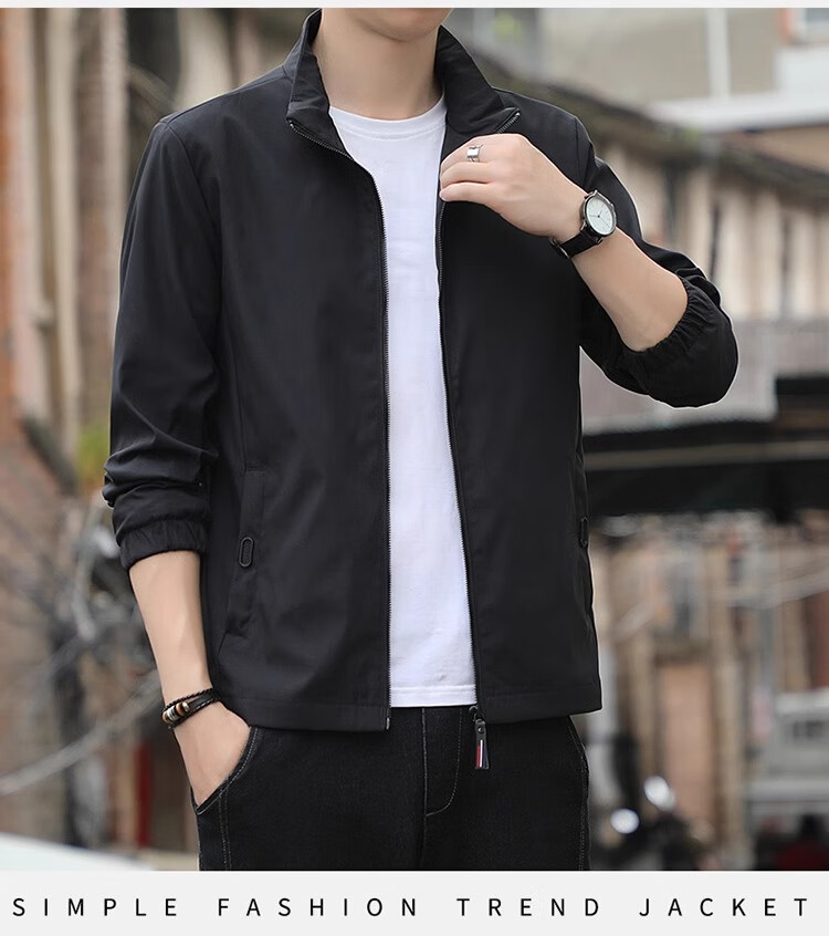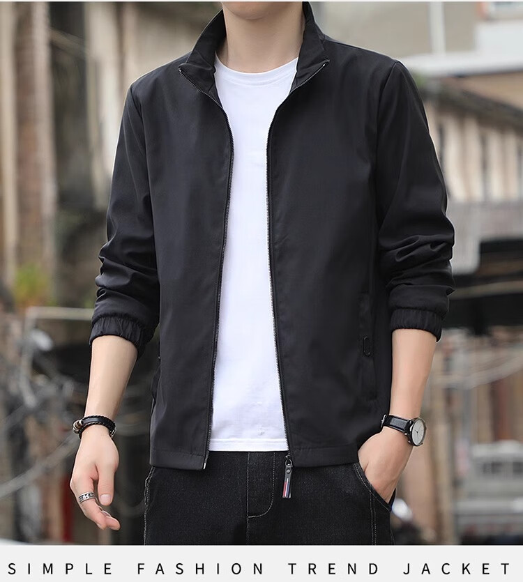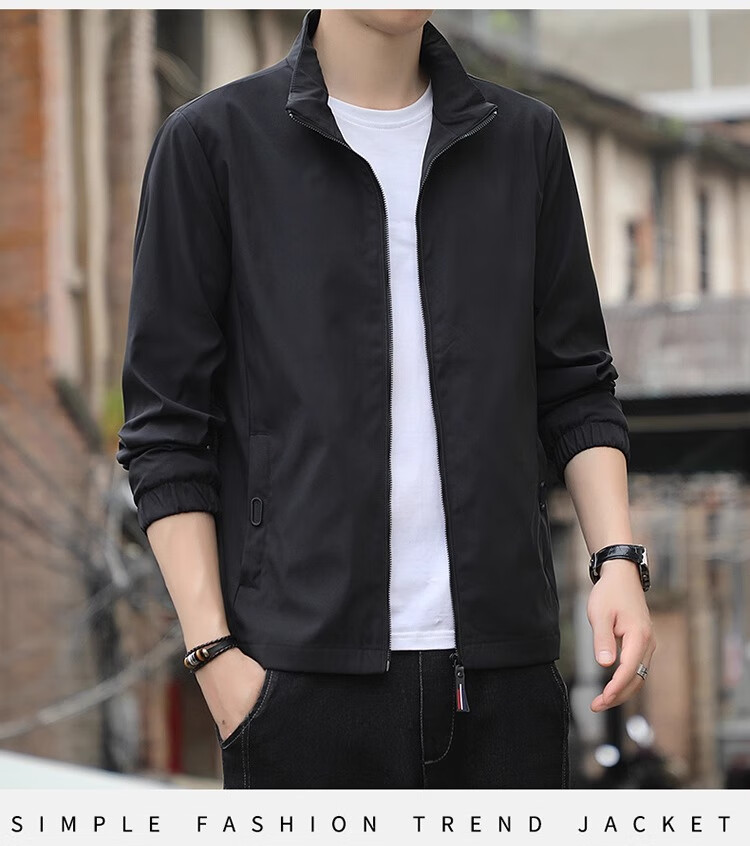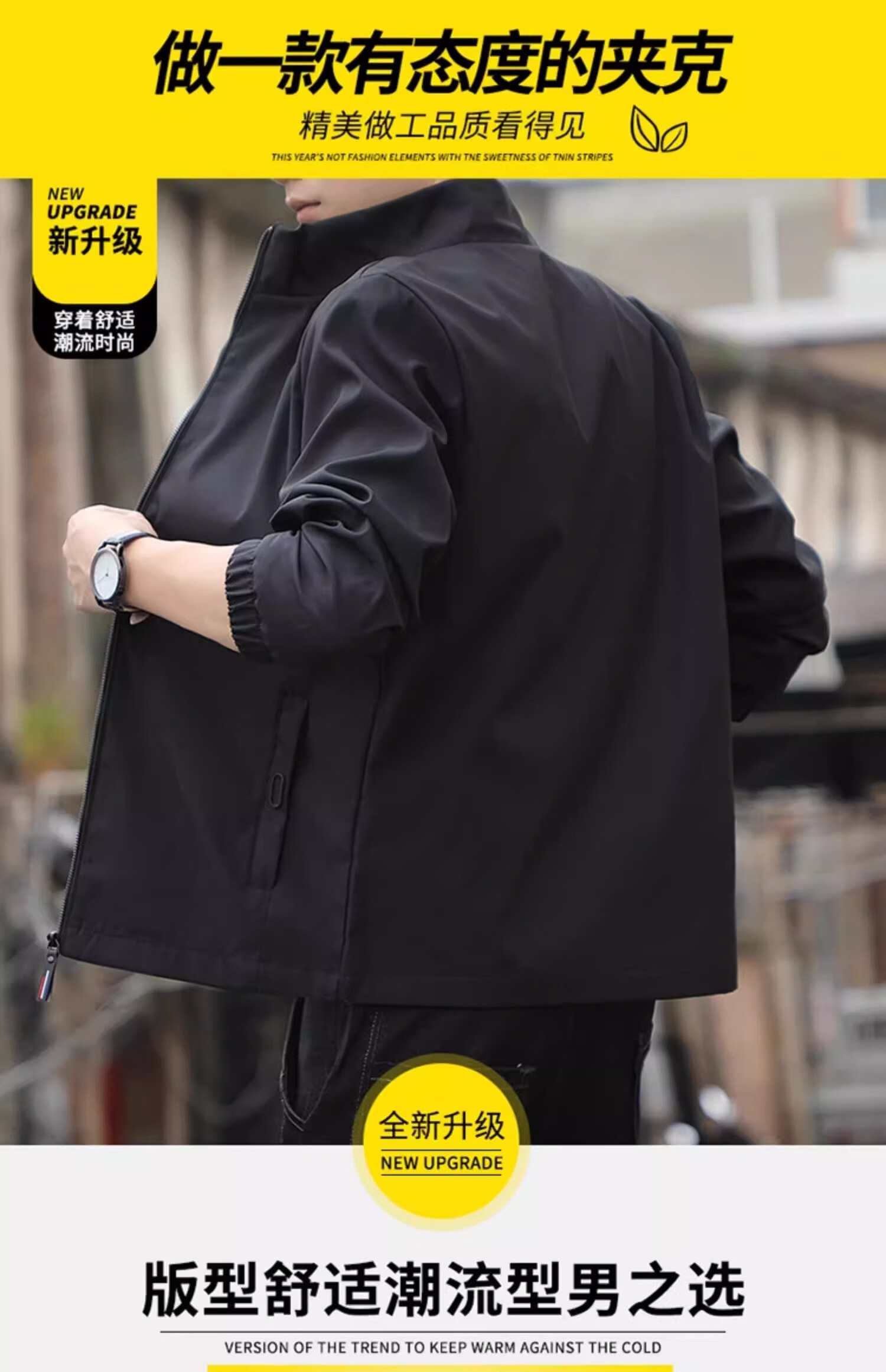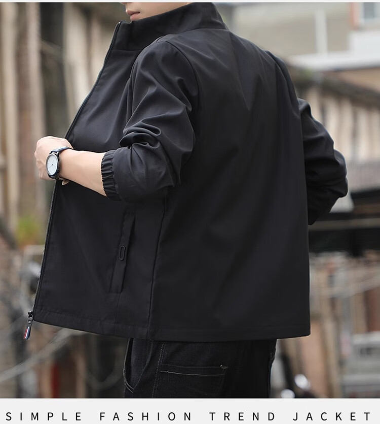 Jackets for men spring and autumn 2024 new tops autumn and winter trendy boys sports loose stand-up collar jacket men's black 3XL