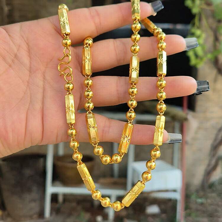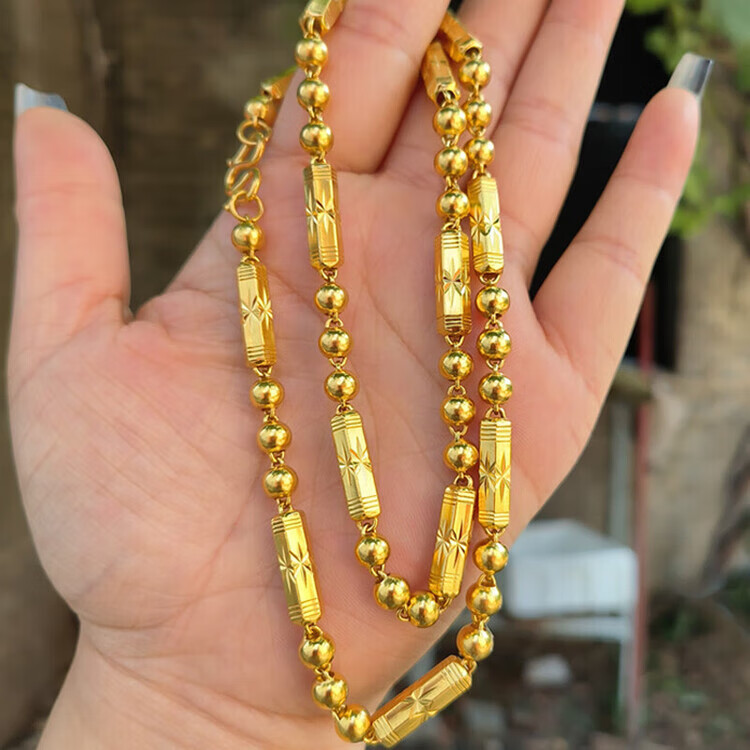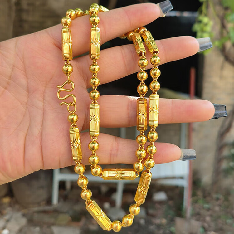 Mercantia fake one-for-ten gold necklace for men, gold-covered silver, domineering three-in-one beads, large gold chain, large and domineering style for men, gold-covered 1.5 grams, 6mm necklace, about 25 grams