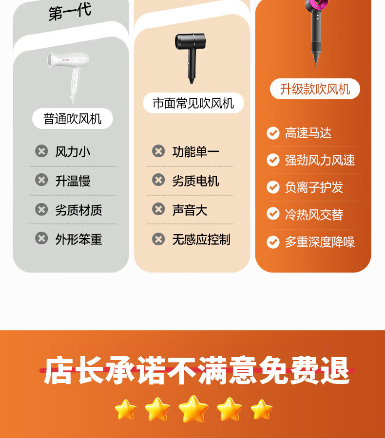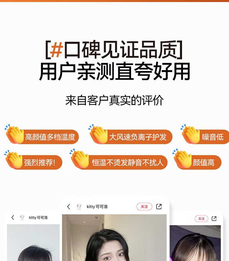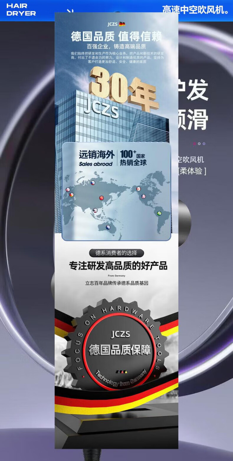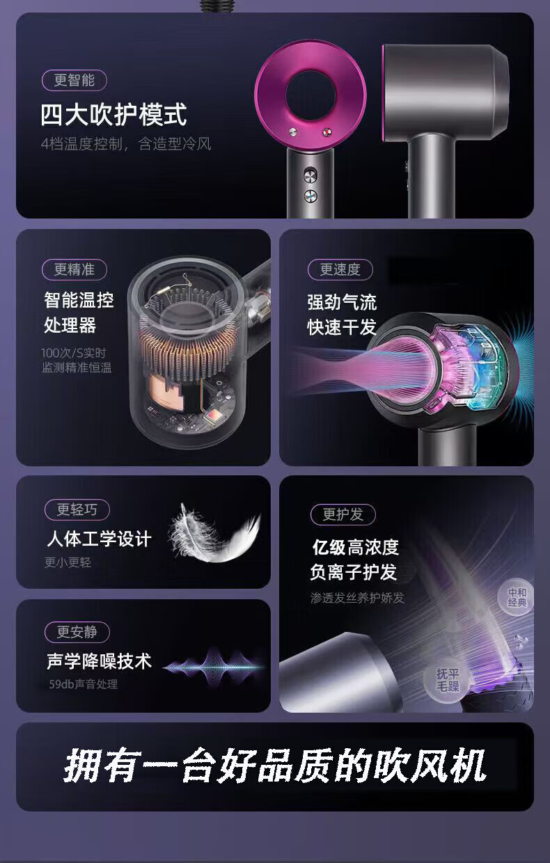 JCZS German brand hair dryer household silent negative ion high power does not hurt hair high-speed quick drying leafless hair dryer hair care dormitory portable business trip baby pet lady top version sunset rose single split mouth 1.8 meters wire + gift box