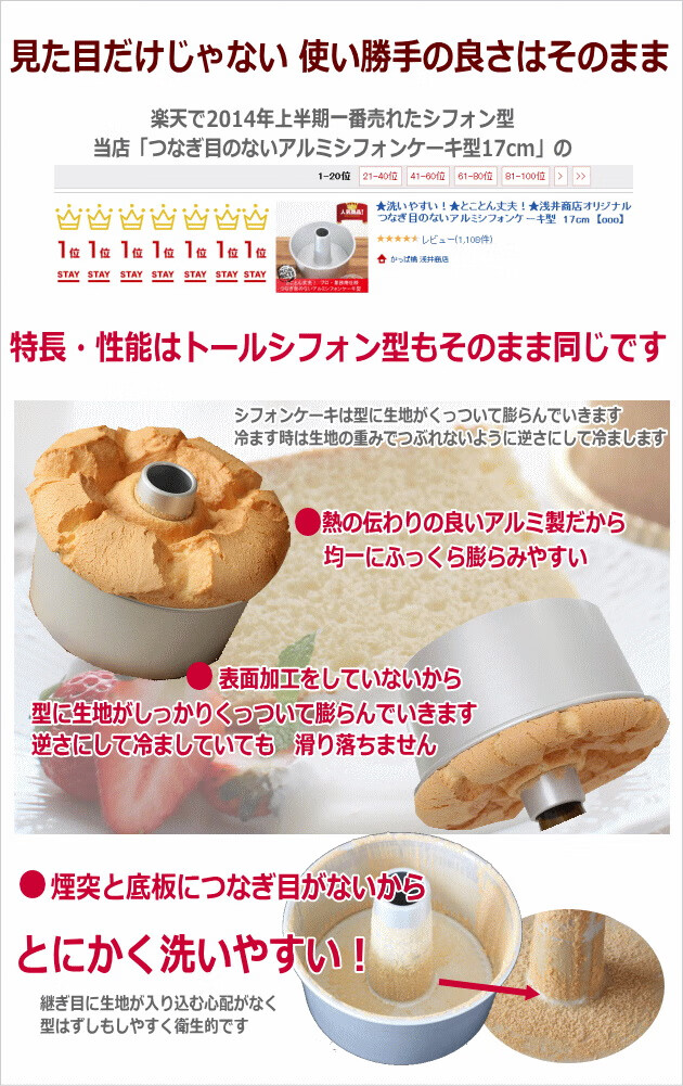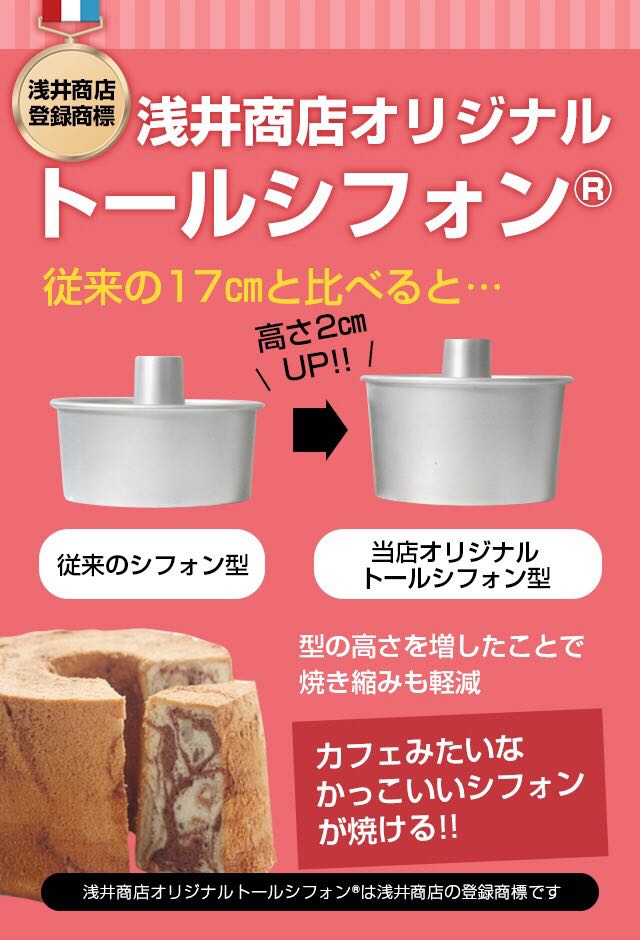 TOMIZ Japan Asai Store 17cm Height Tall Chiffon Aluminum Live Bottom Hollow Cake Baking Mold Asai 17cm Height + Cakeland Ejector Knife Set