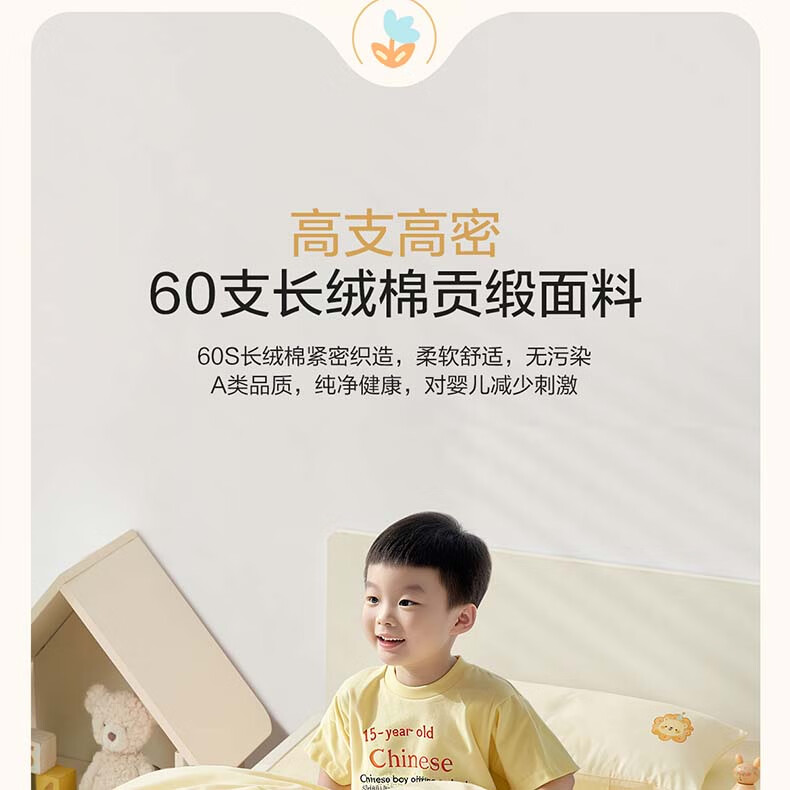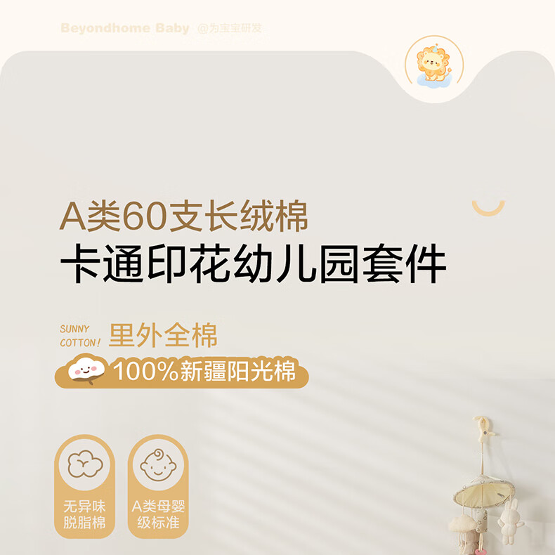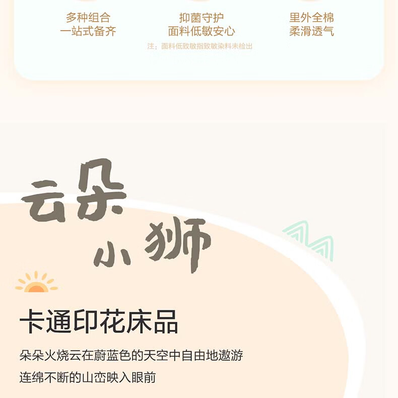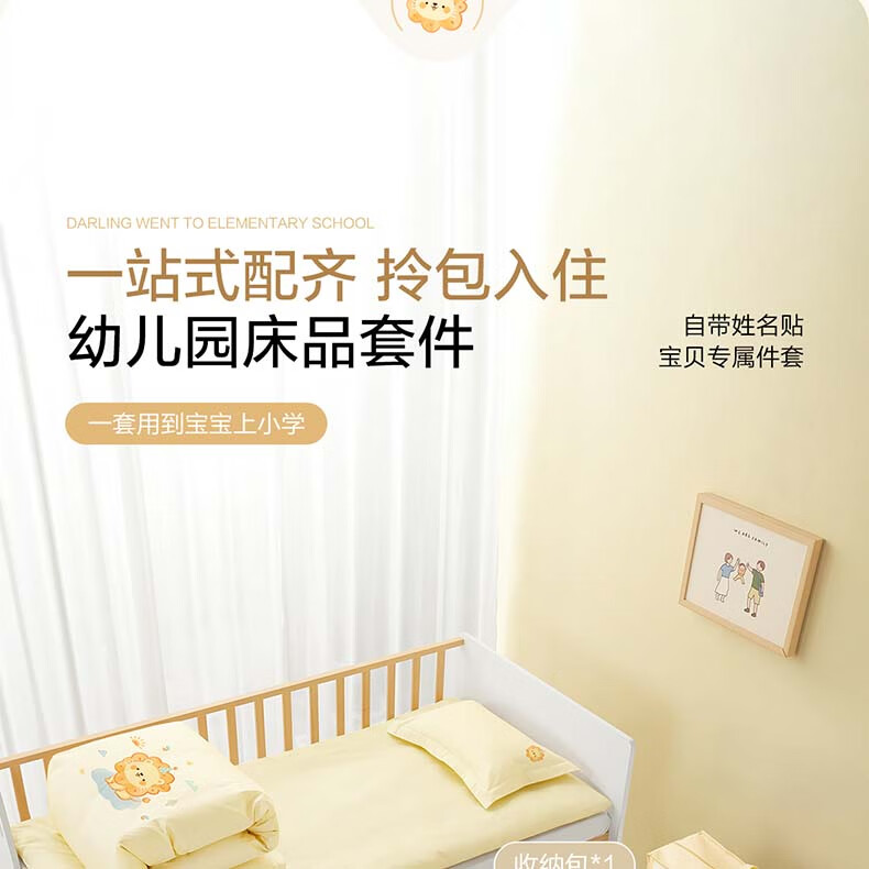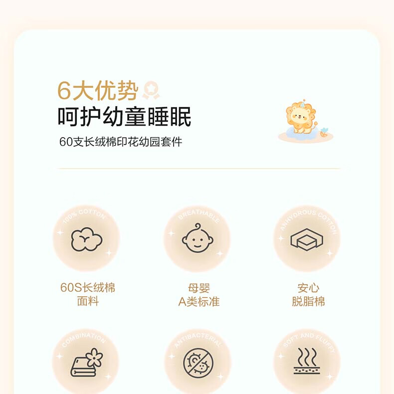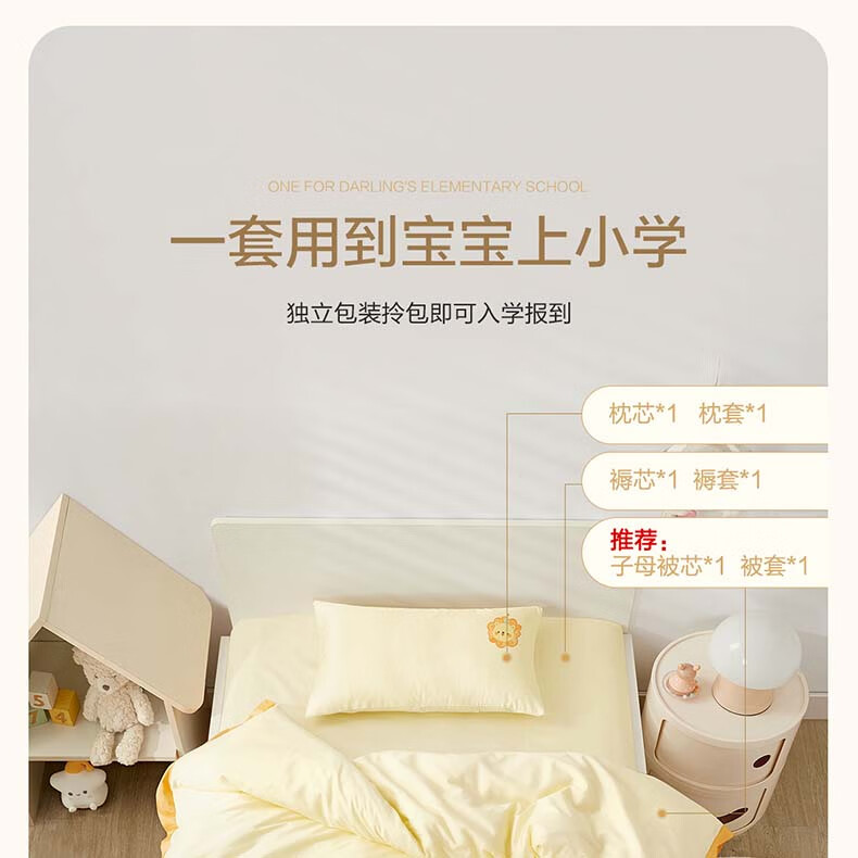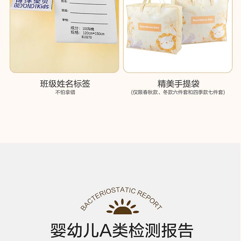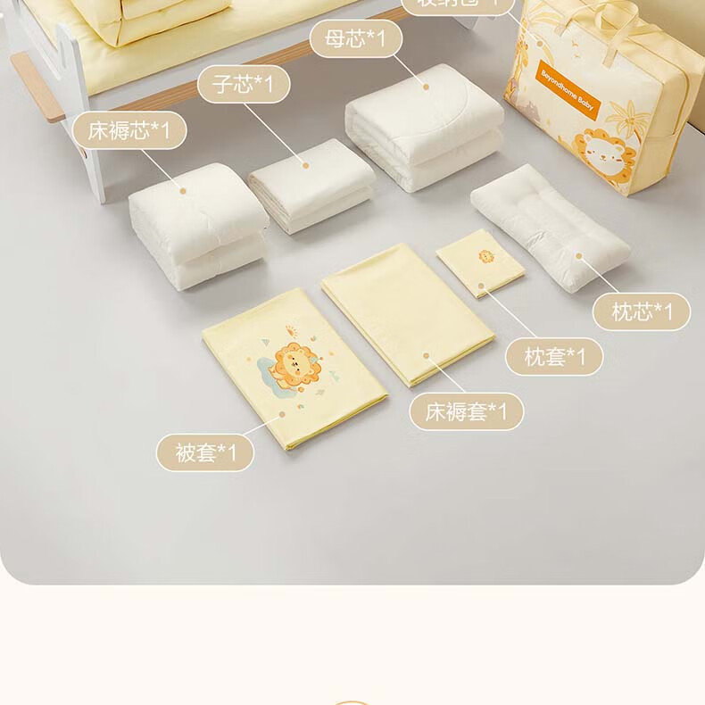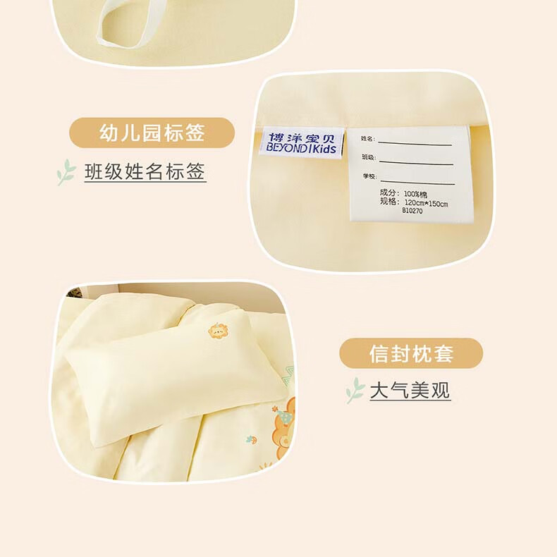BEYONDHOME BABY kindergarten school season 60-count long-staple cotton set three-piece set for baby entering the kindergarten special baby nap bedding set cotton filling core Yunduo Lion bed sheet style seven-piece set (four seasons)