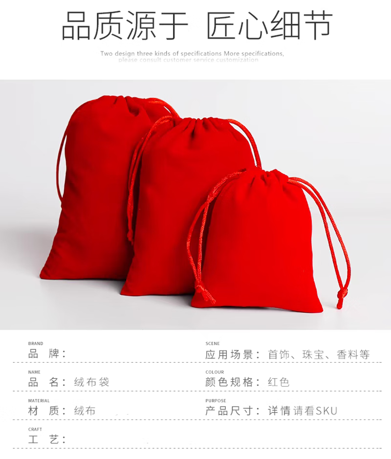 Austrian jewelry gold bag jewelry bag brocade bag red cloth bag drawstring seal storage bag jewelry packaging bag red velvet bag small size 10 pieces 5*7cm