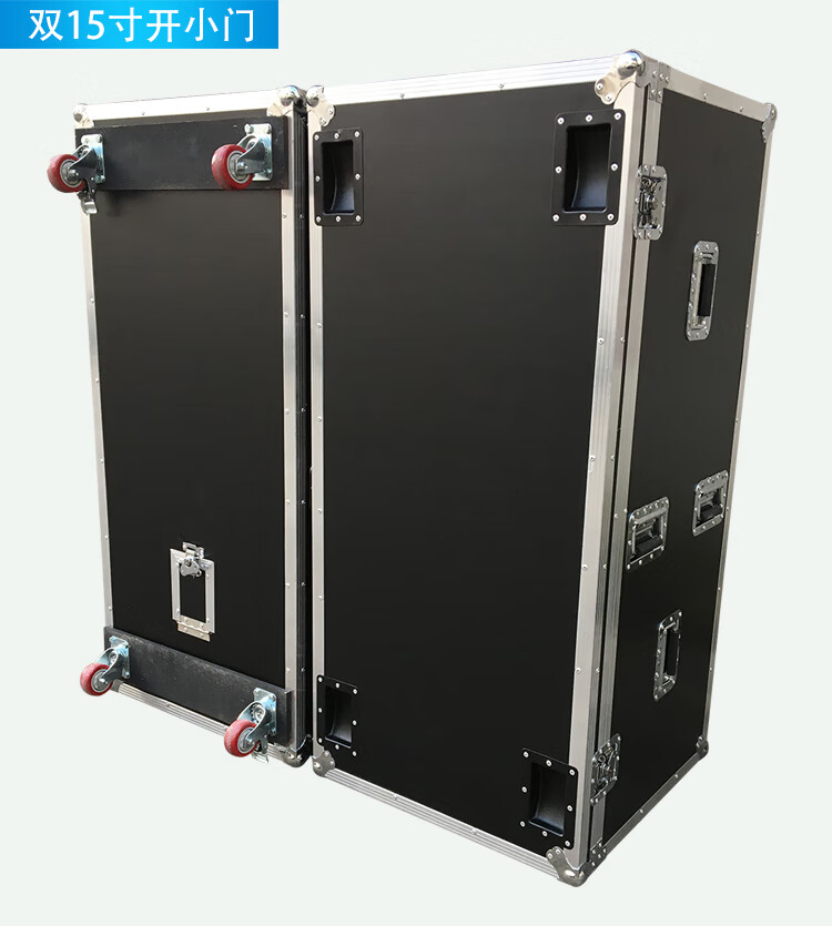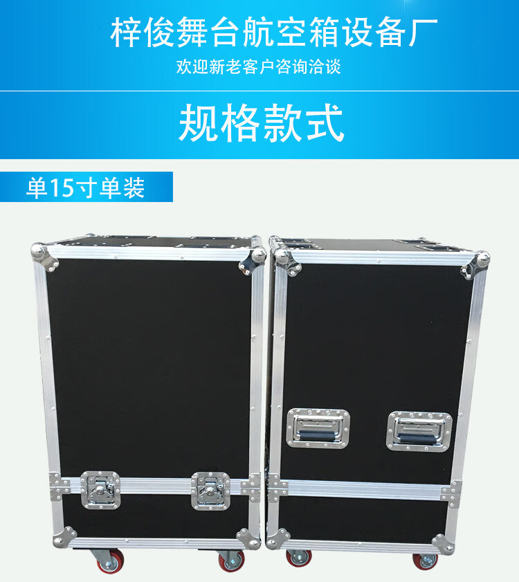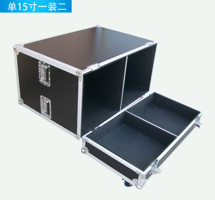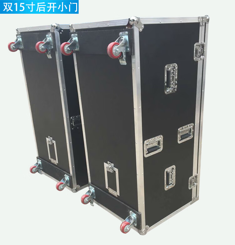 Customized single 15-inch, 12-inch, and double 15-inch audio flight cases, one-pack of two audio cases, flight cases, shock-proof cabinets, single 15-inch, one-pack of two styles, with 3-inch wheels, no postage included