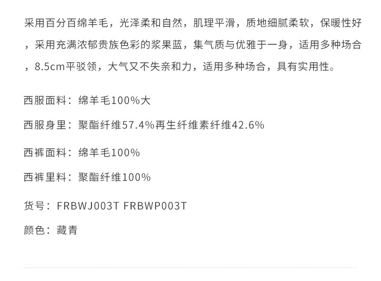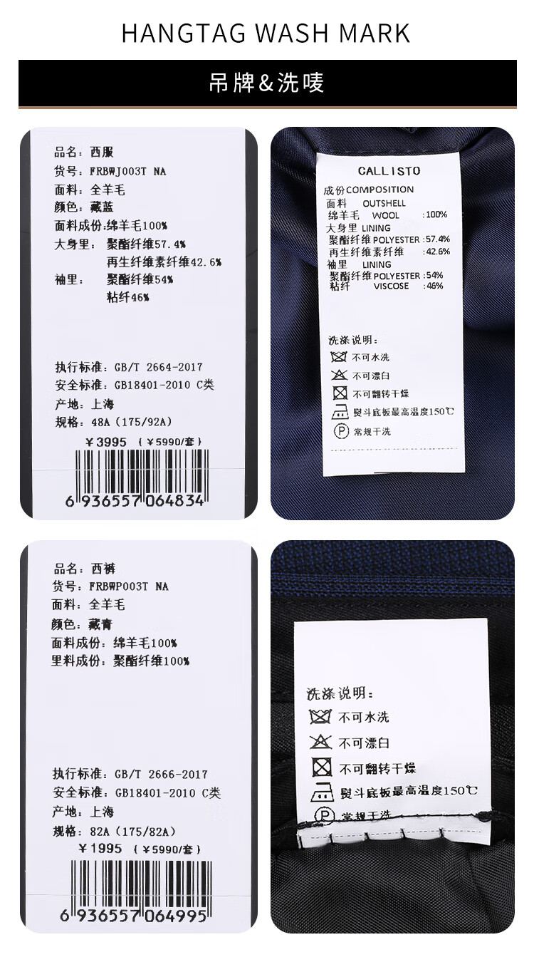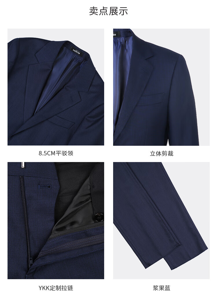 Callisto Callisto 2-piece suit set, all wool spring and autumn men's business casual suit, trousers suit, navy blue, navy blue 31, trousers size 78, waist 2 feet 3 inches 4
