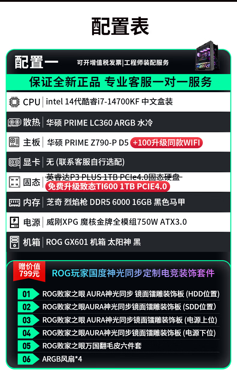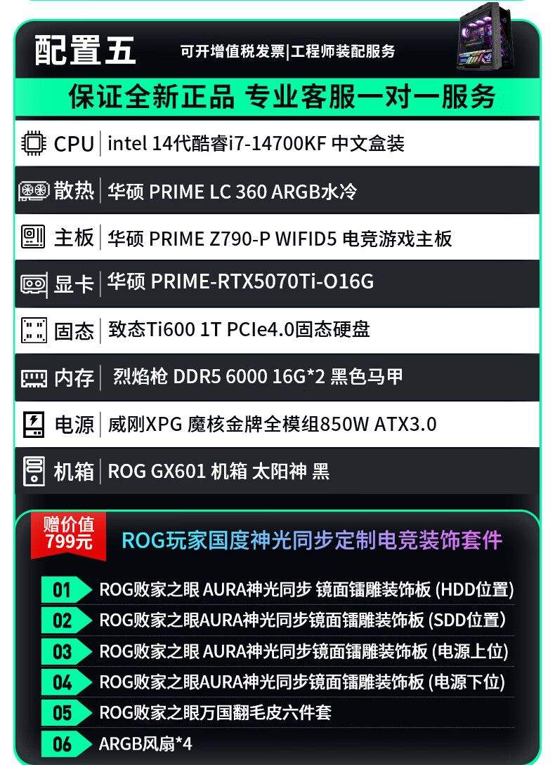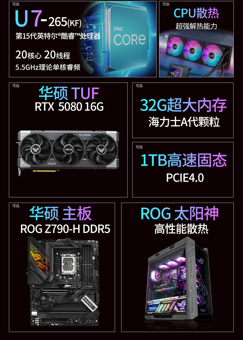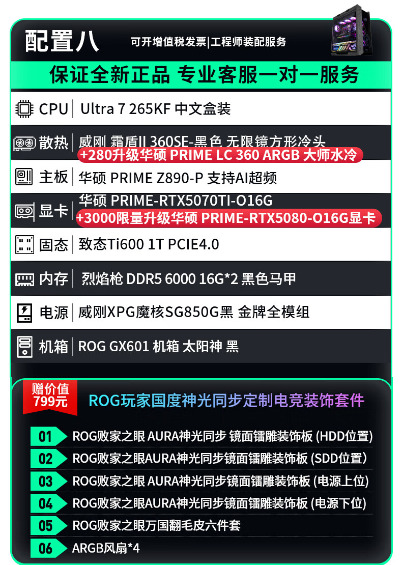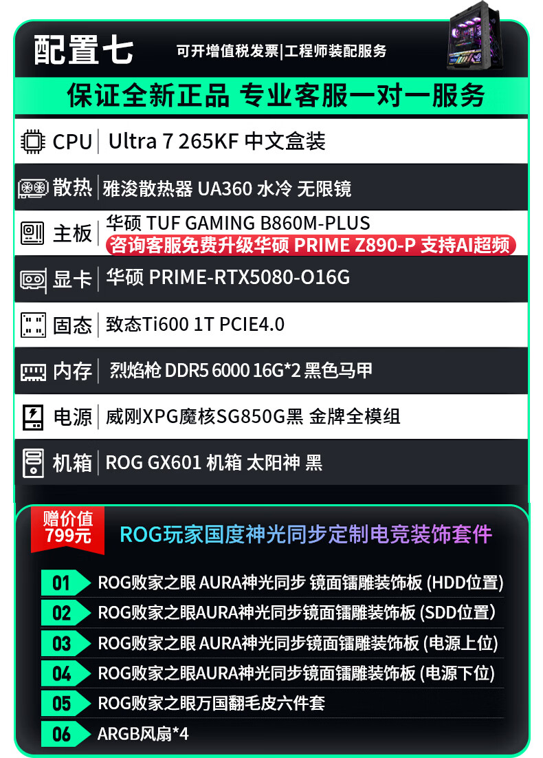 ASUS ROG family bucket 601 Sun God U7 265K/5070ti graphics card/5080 graphics card/5090 graphics card Republic of Gamers console game desktop computer assembly computer U7 265KF boxed + RTX5070TI best-selling eight