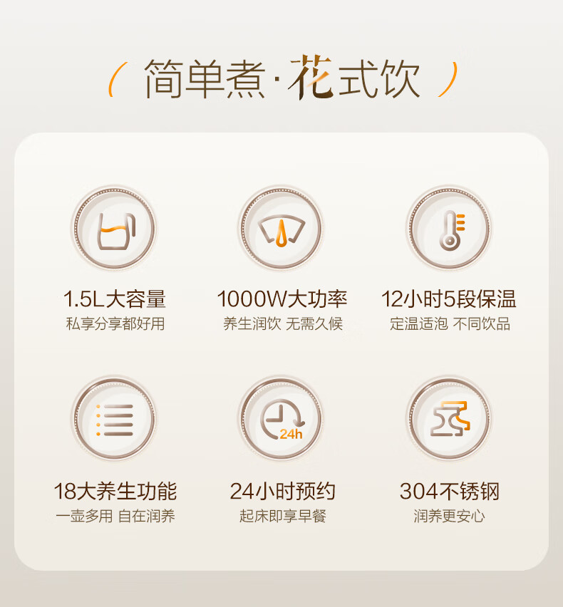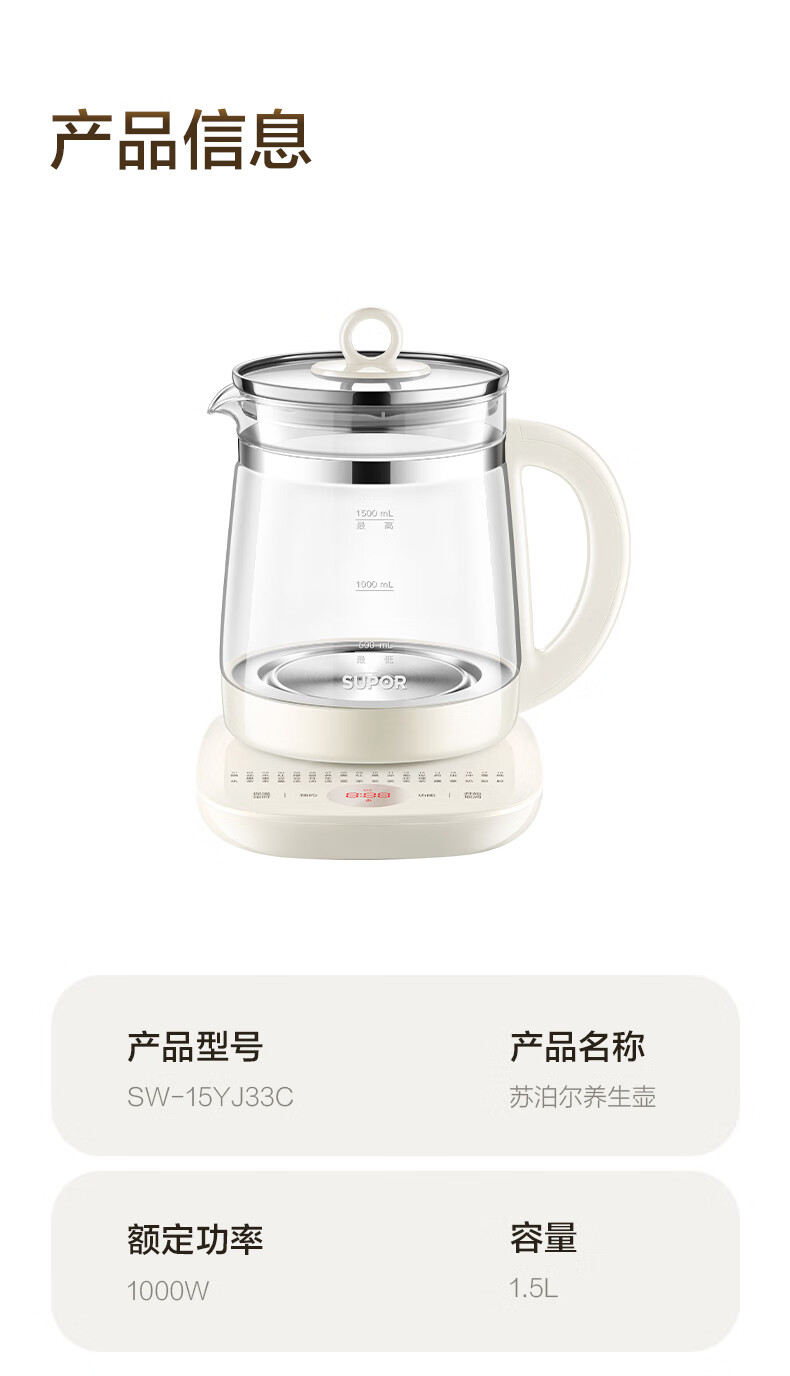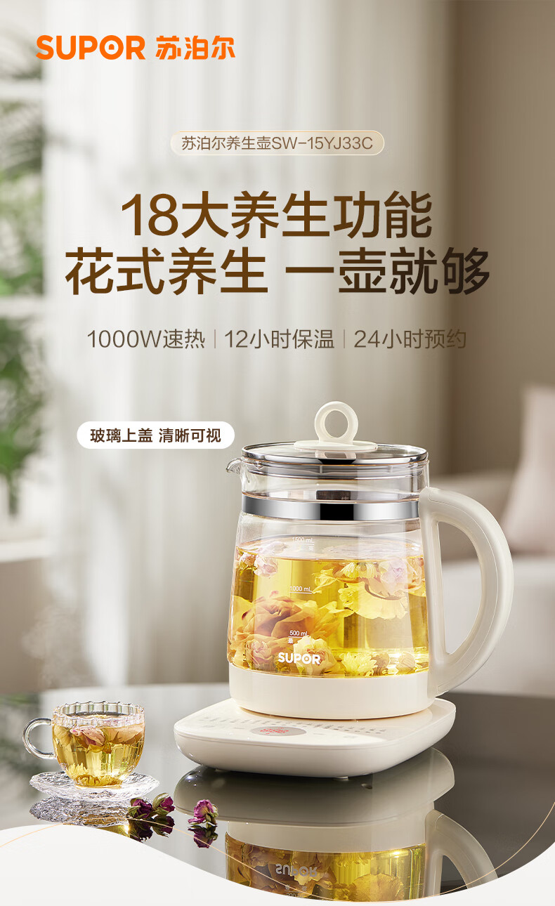 SUPOR health kettle, home office health kettle, 1.5L large capacity hot water kettle, tea kettle, tea maker, multifunctional health kettle, stew kettle, integrated electric kettle 1.5L