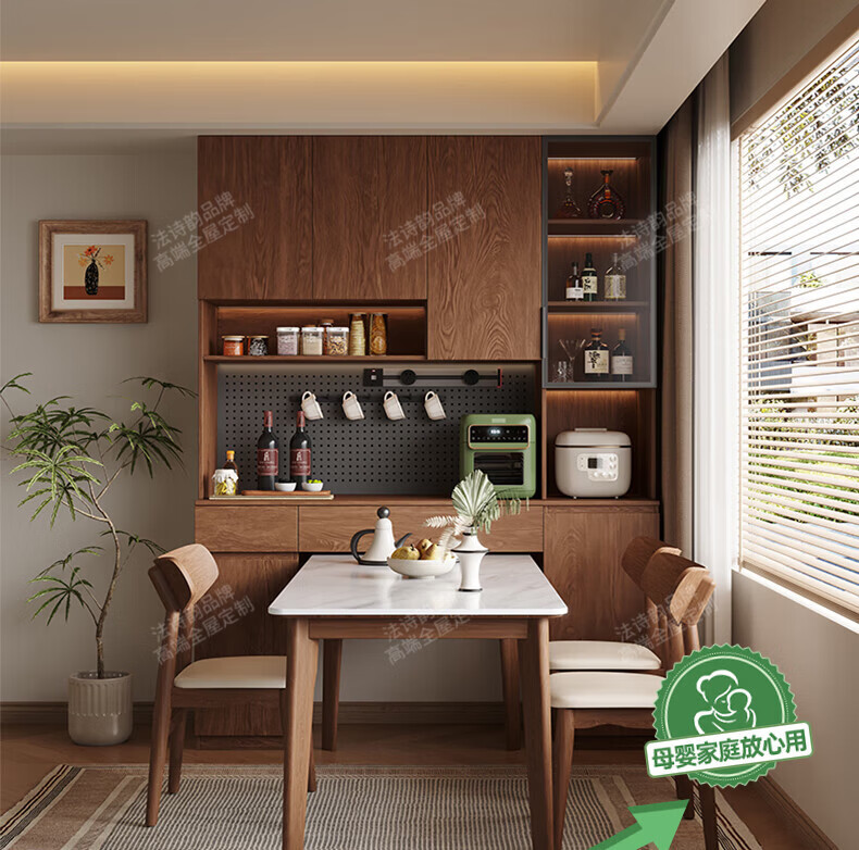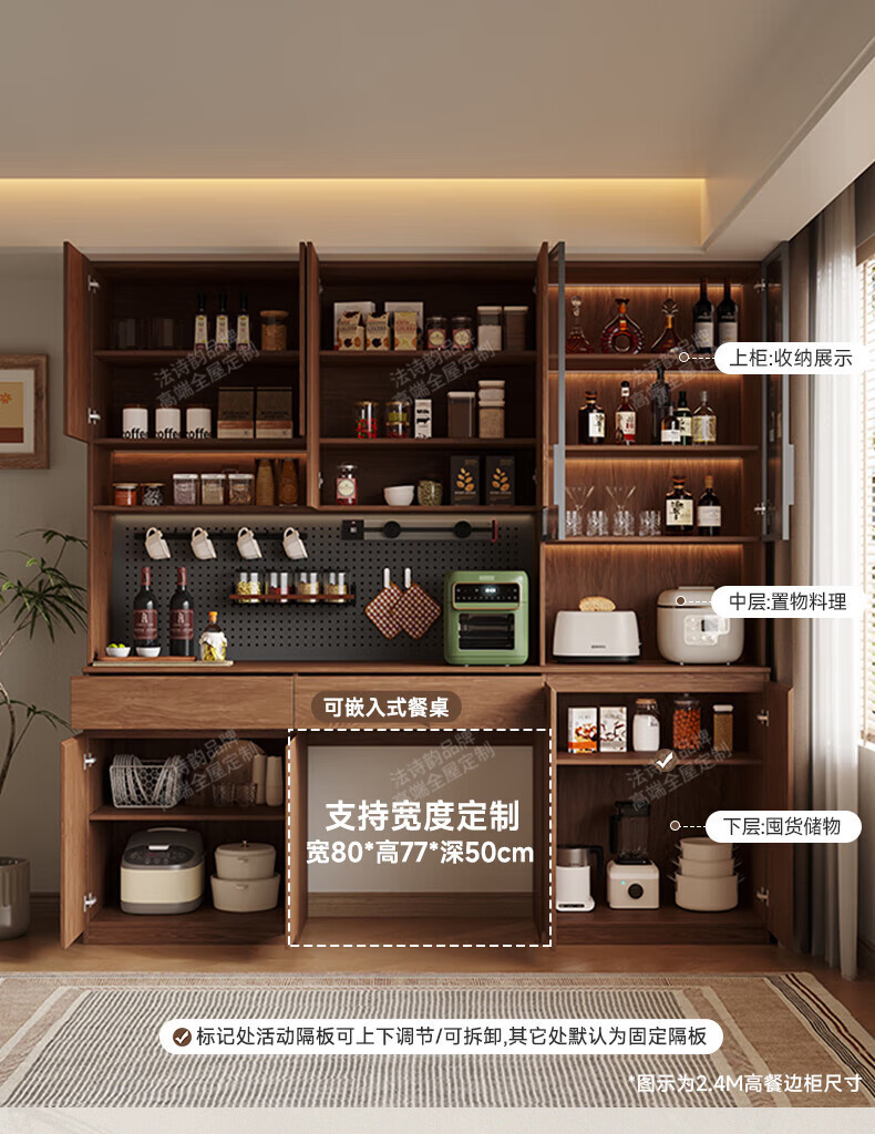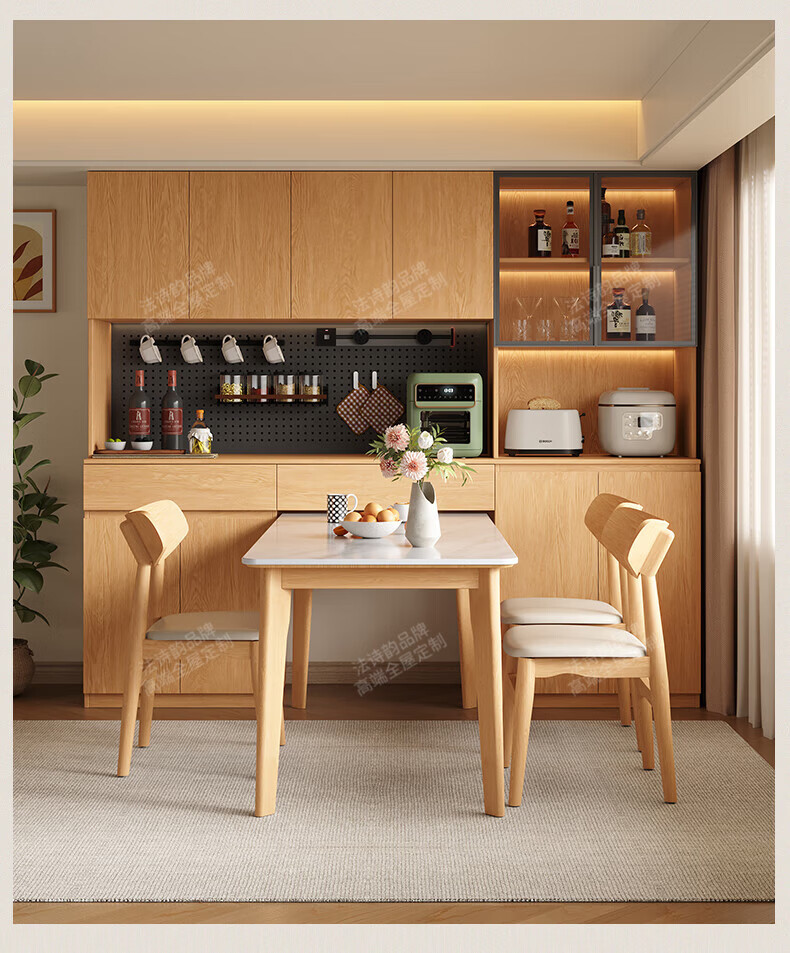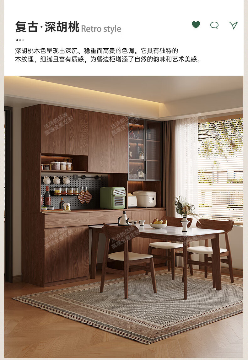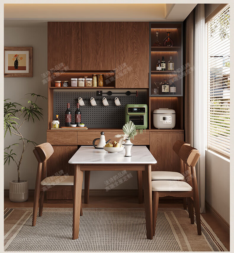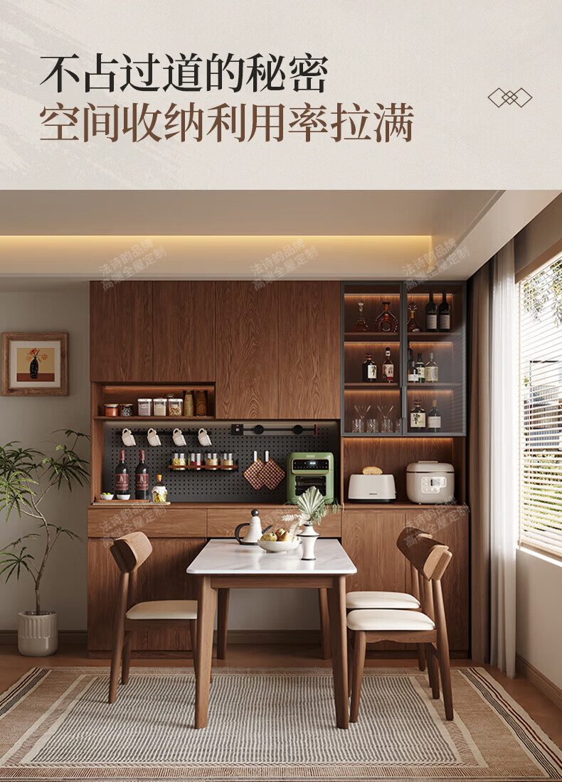 French poetry custom-made solid wood sideboard wine cabinet against the wall integrated dining table built-in walnut glass cupboard cabinet 1.6 meters long * 2.0 meters high (four-door sideboard) Perforated board and double-hole track socket are provided by default