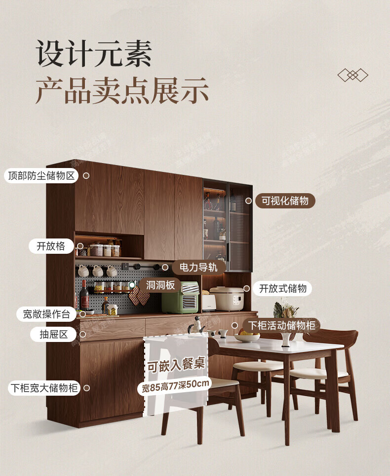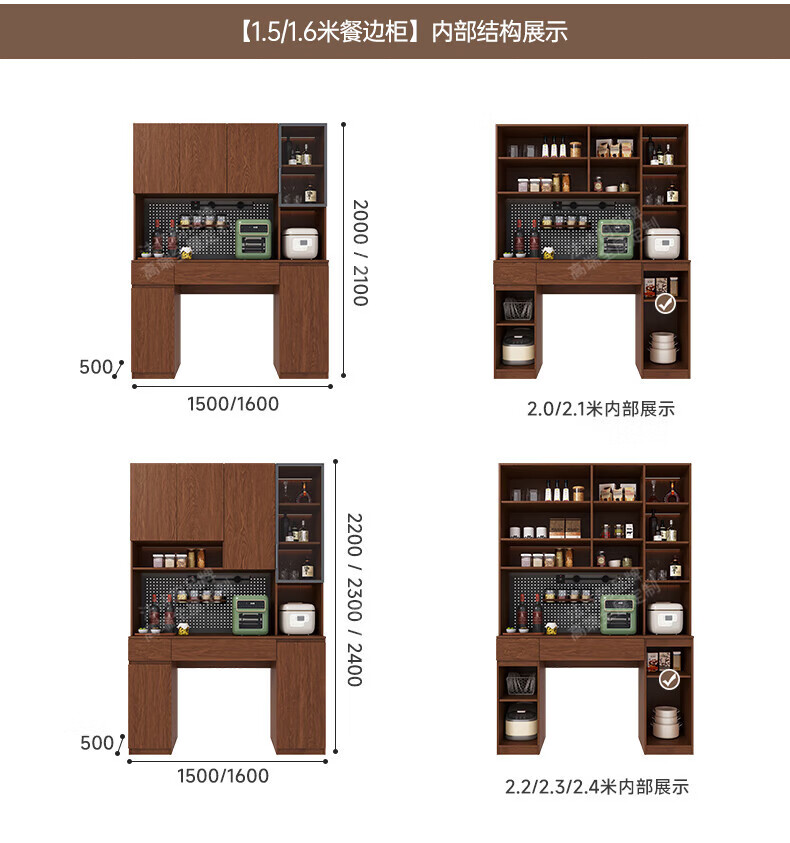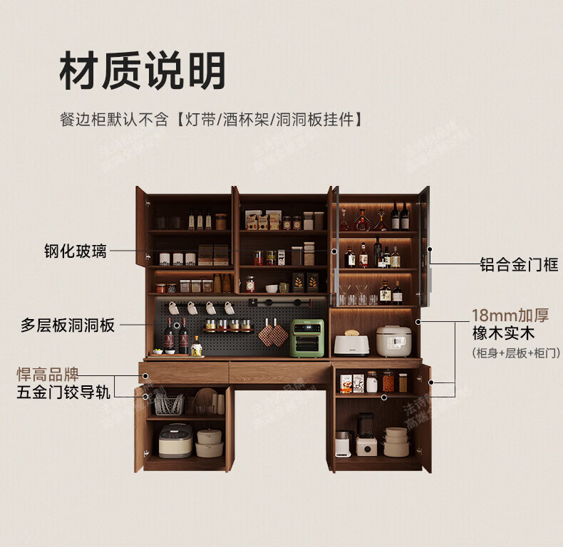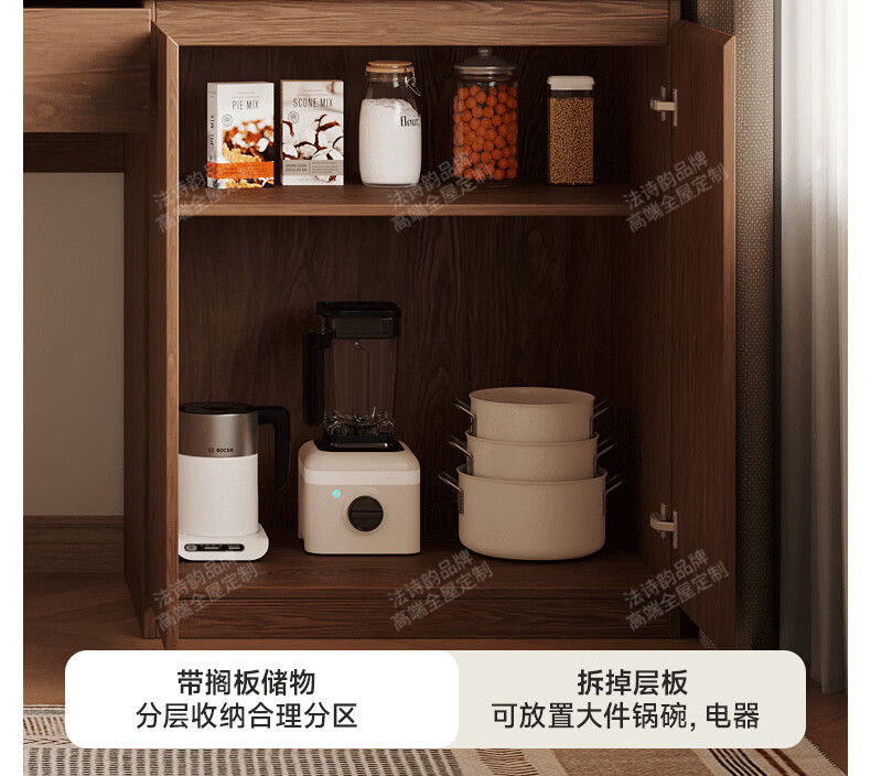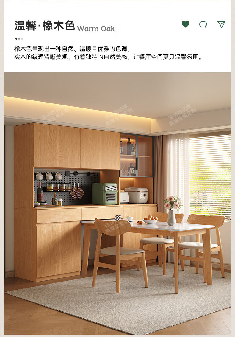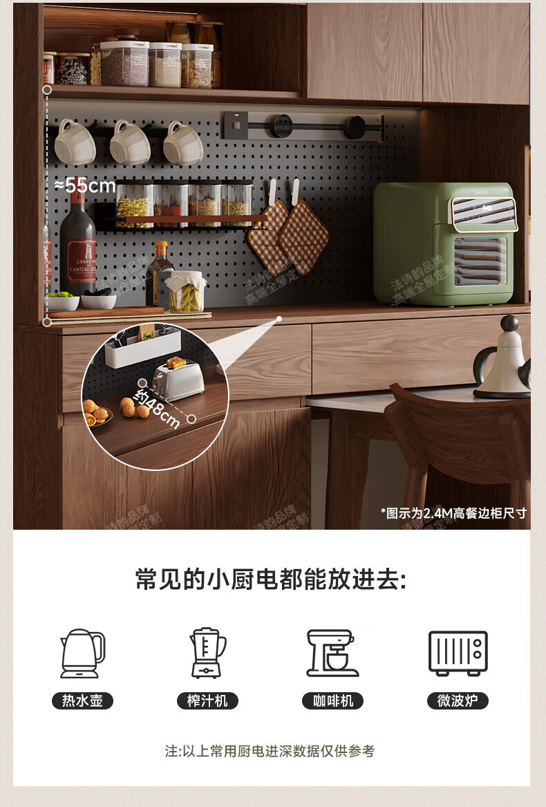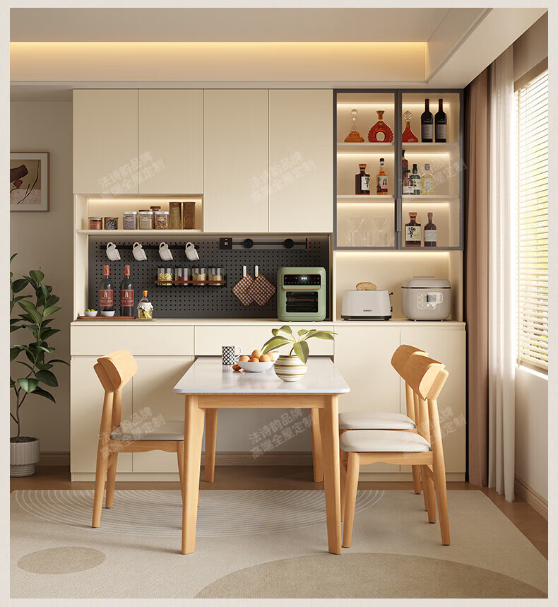 French poetry custom-made solid wood sideboard wine cabinet against the wall integrated dining table built-in walnut glass cupboard cabinet 1.6 meters long * 2.0 meters high (four-door sideboard) Perforated board and double-hole track socket are provided by default