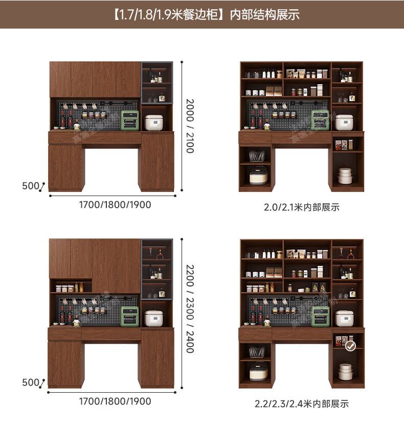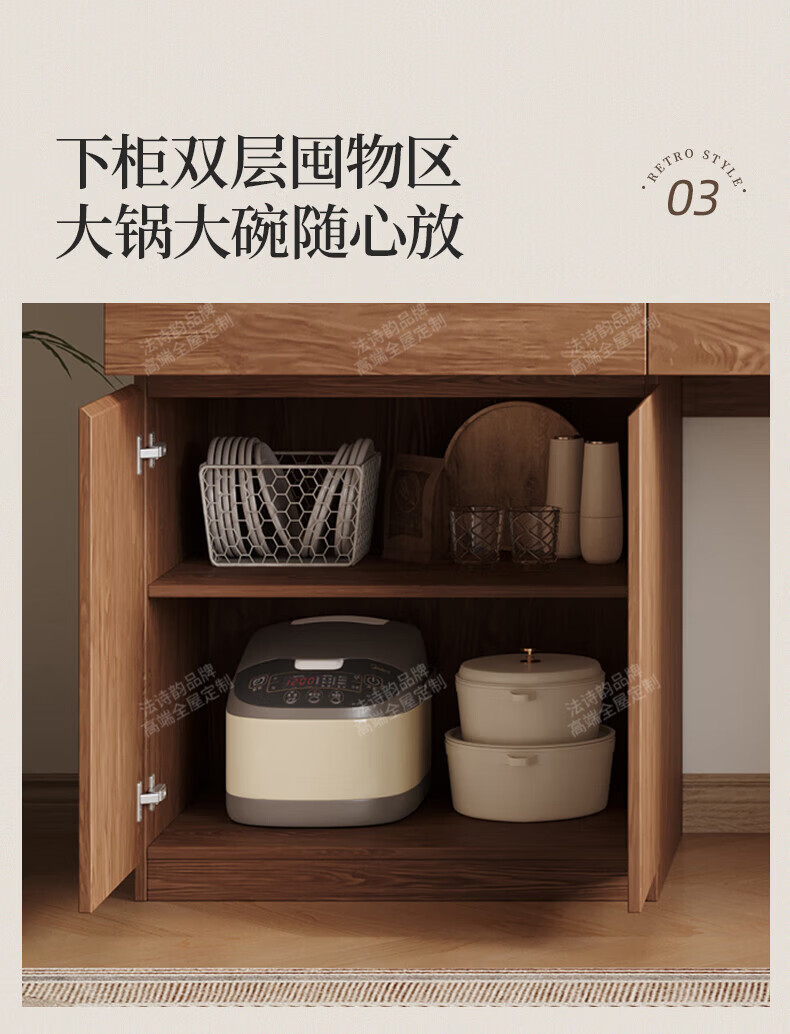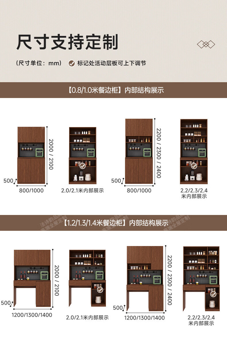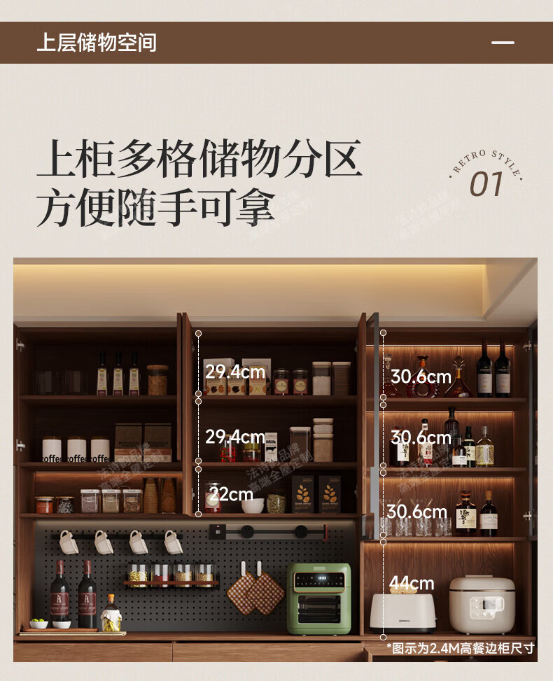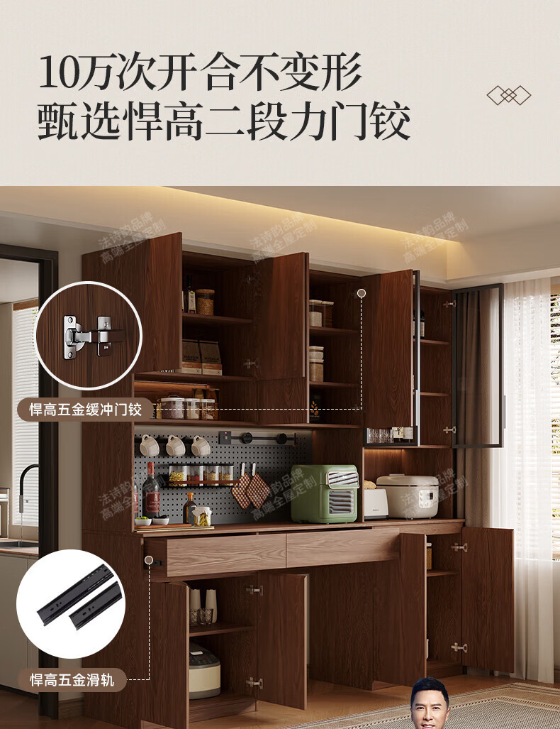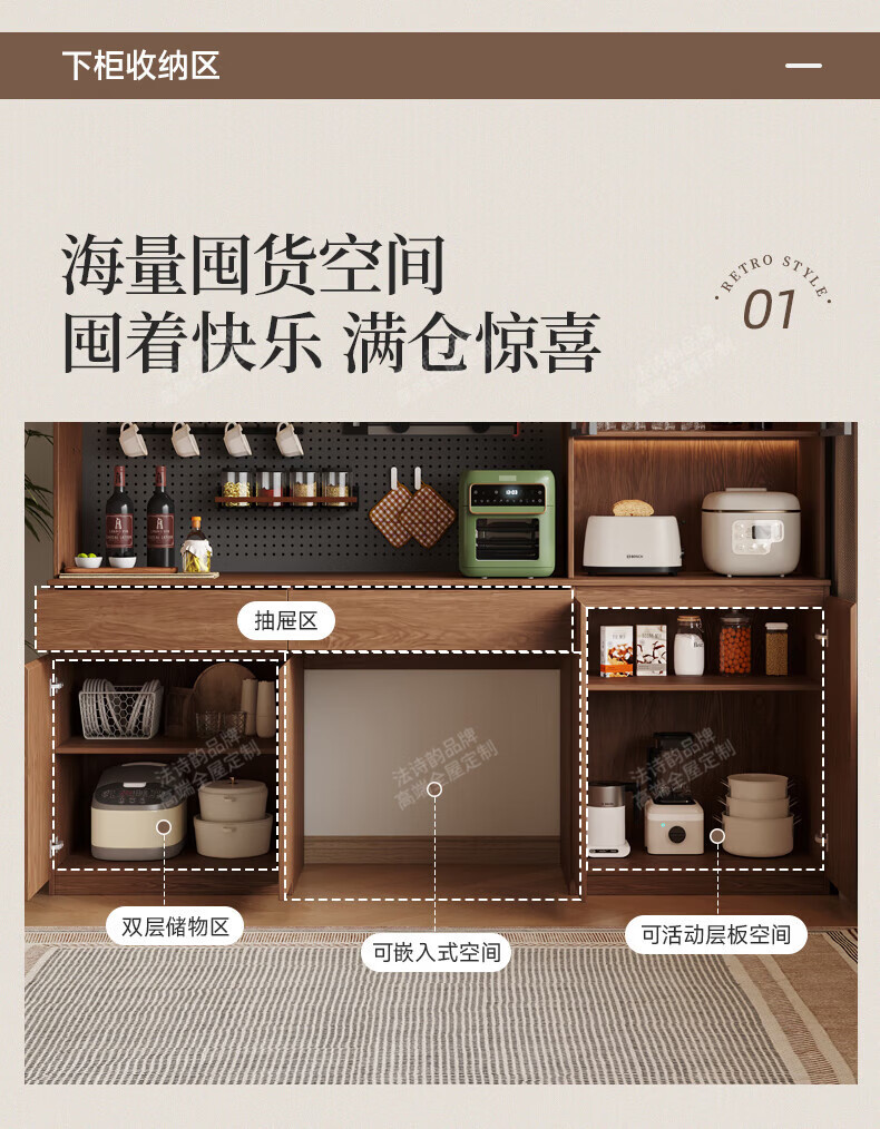 French poetry custom-made solid wood sideboard wine cabinet against the wall integrated dining table built-in walnut glass cupboard cabinet 1.6 meters long * 2.0 meters high (four-door sideboard) Perforated board and double-hole track socket are provided by default