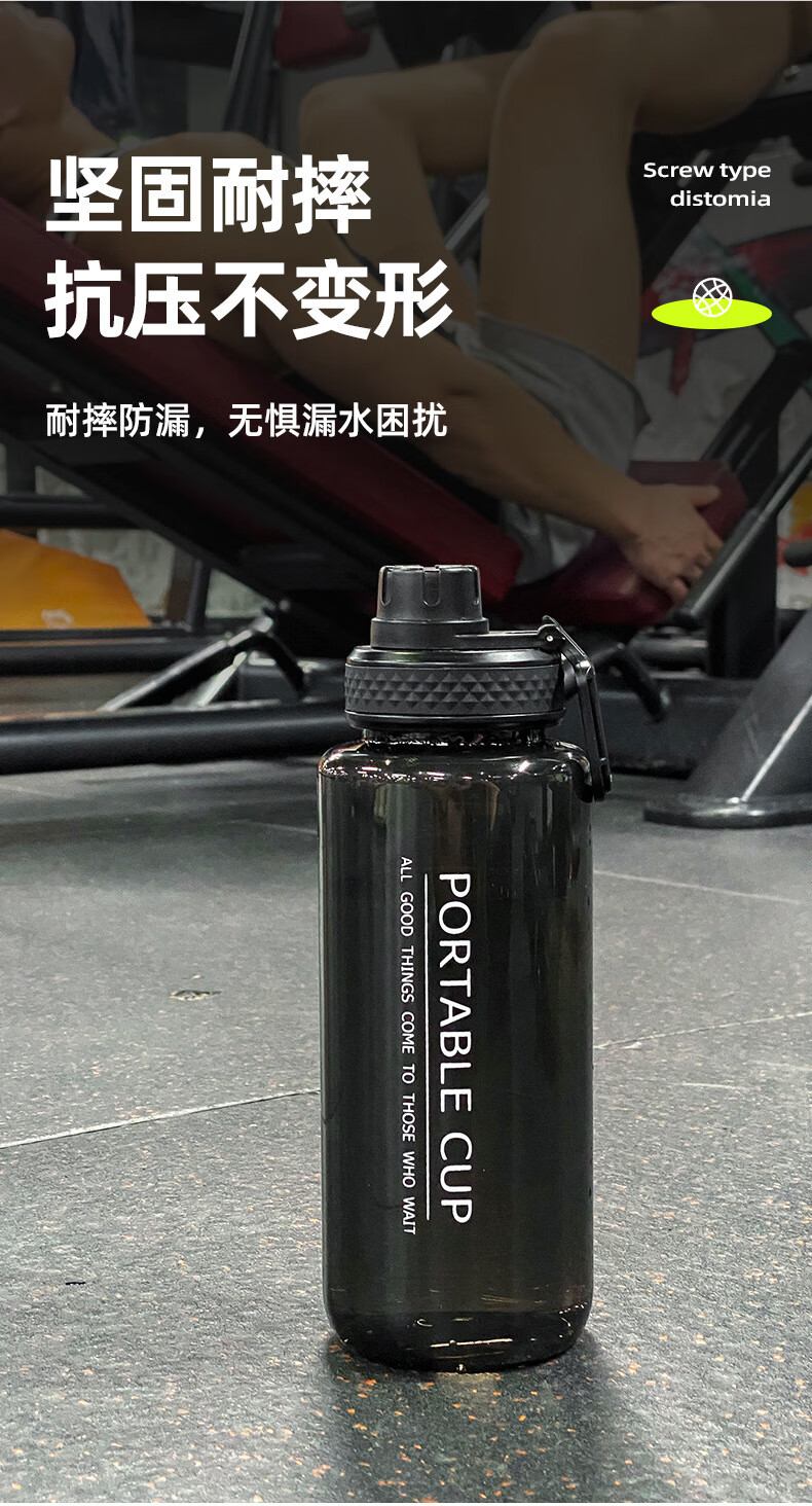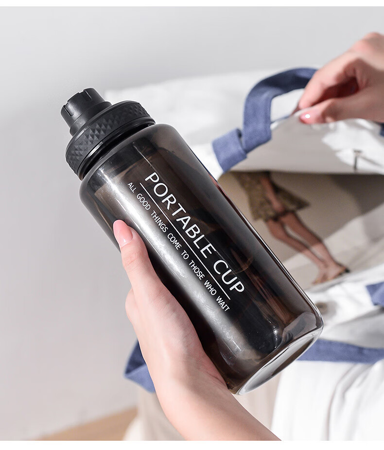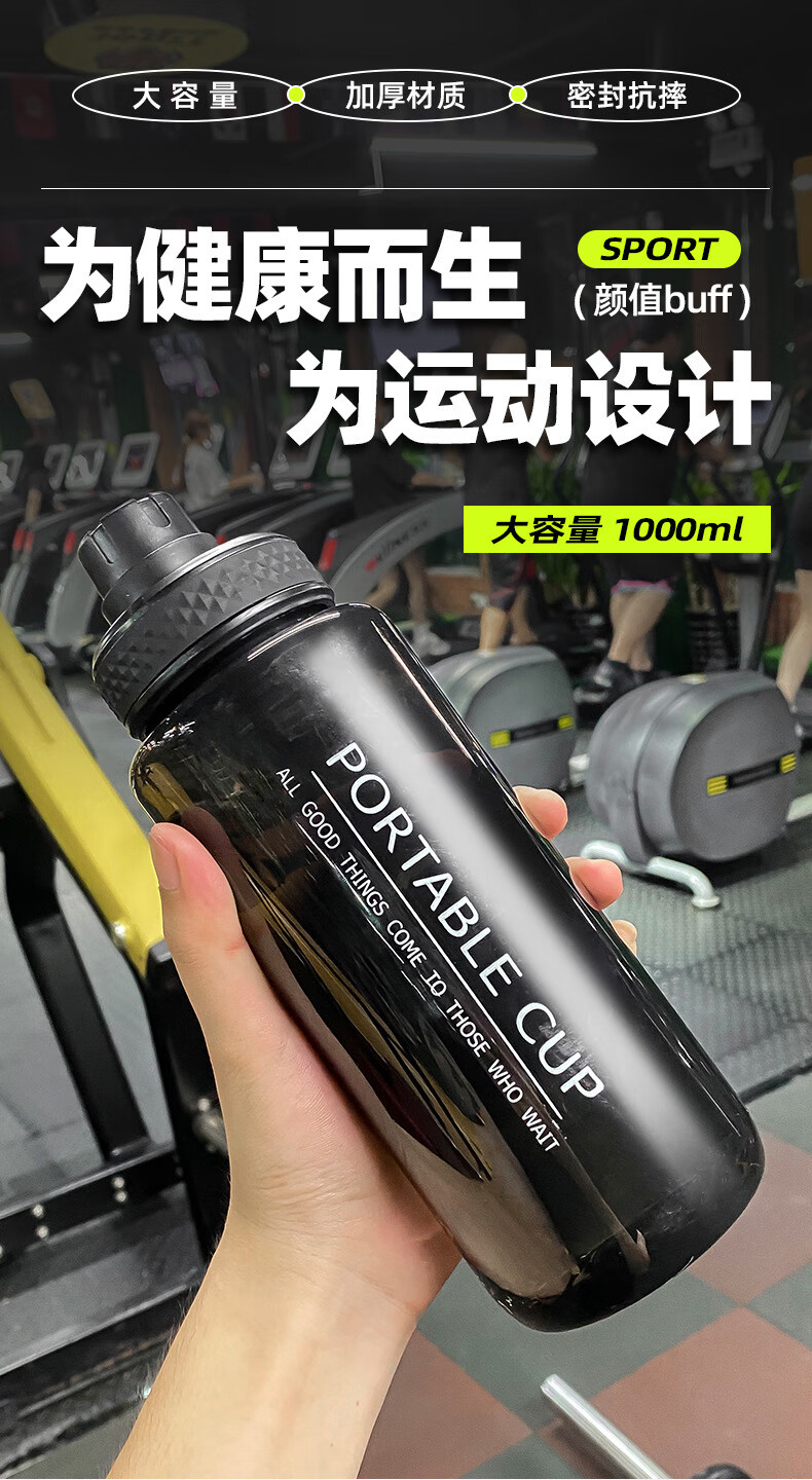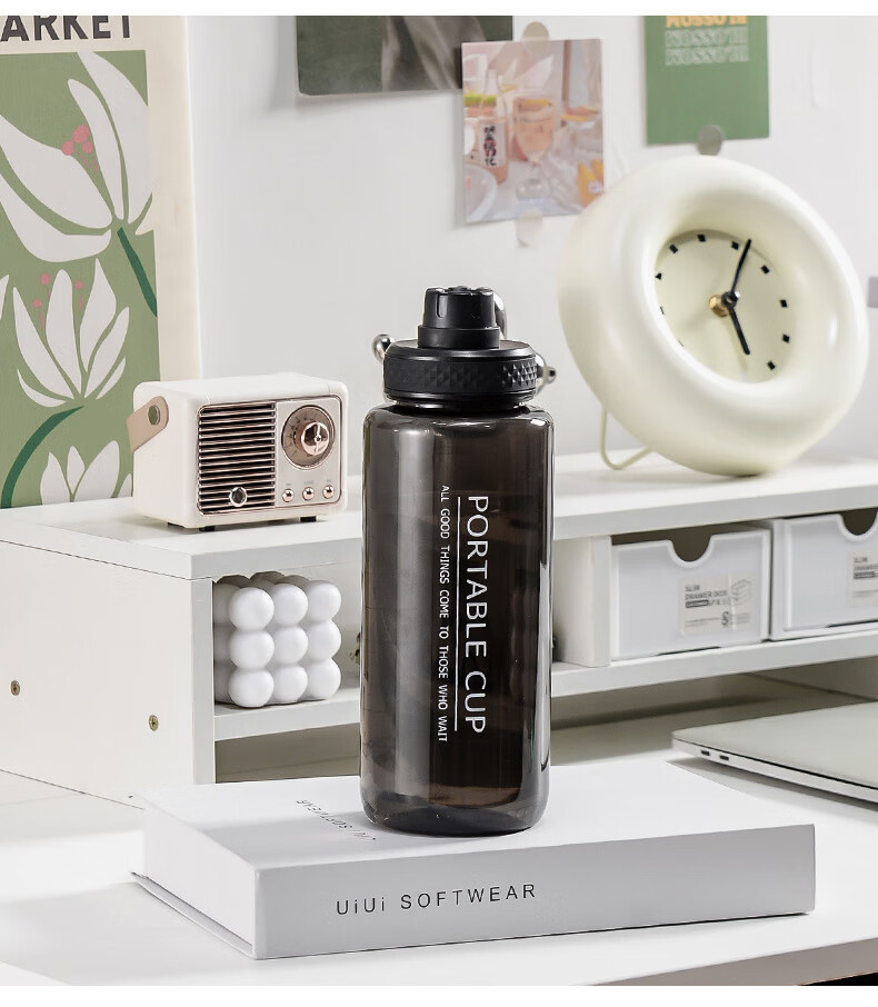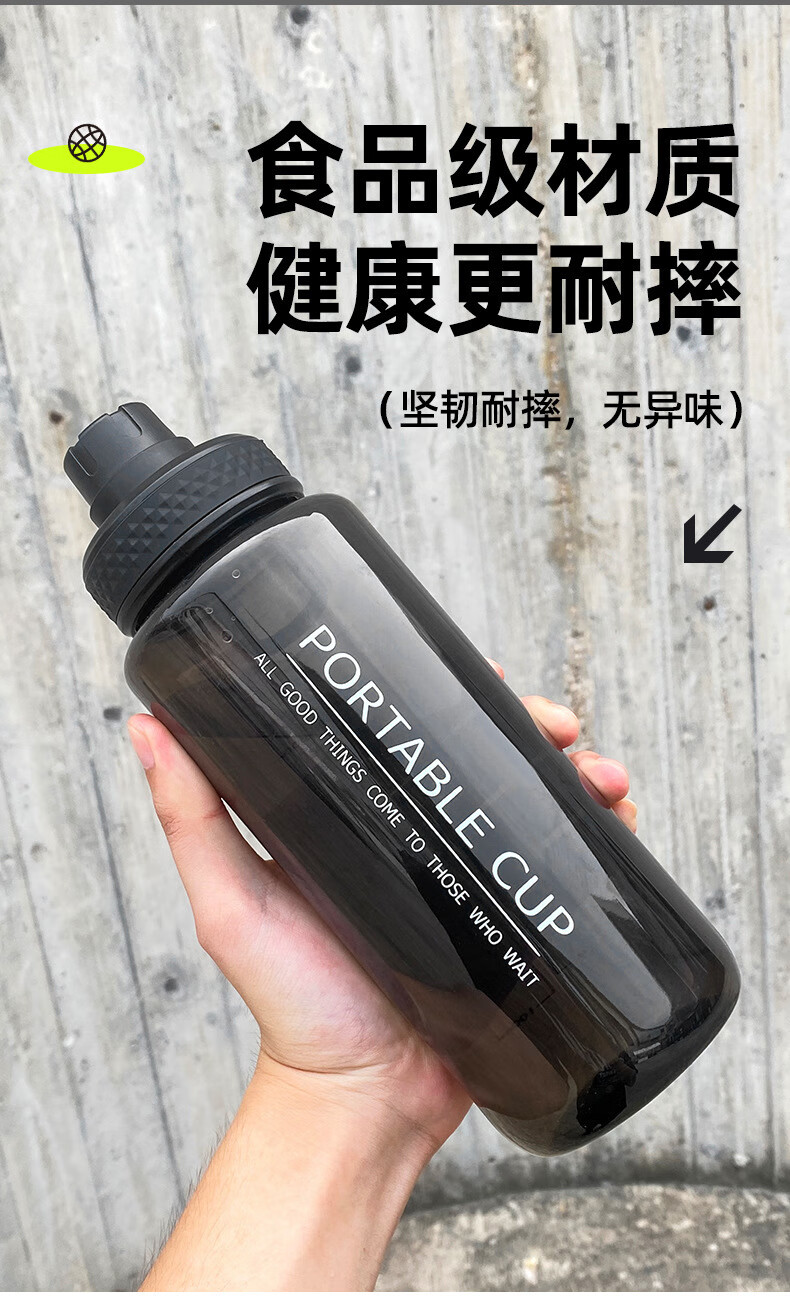Large capacity 1000ml sports water cup, anti-fall plastic cup for boys, high temperature resistant, portable, simple, handy cup for girls, XL-102 black, 1 piece 1000ml