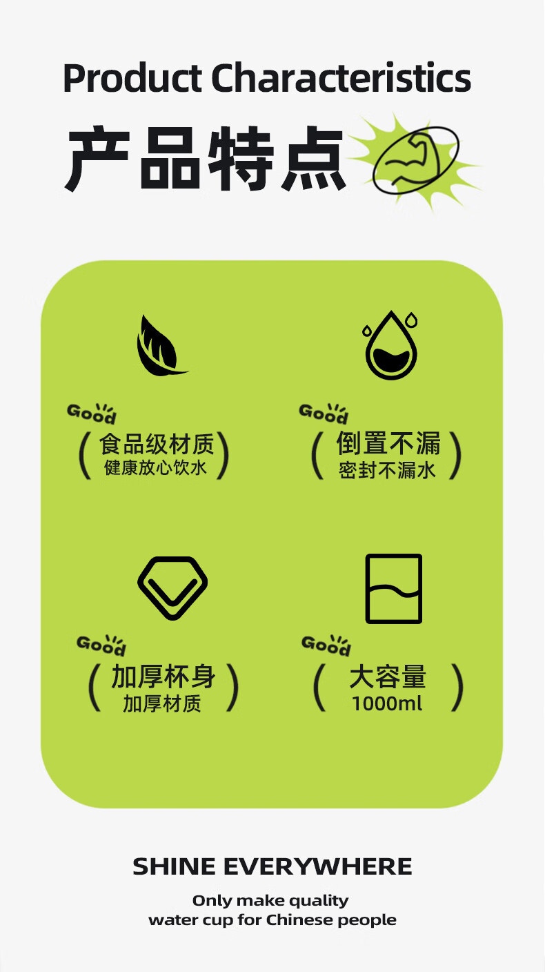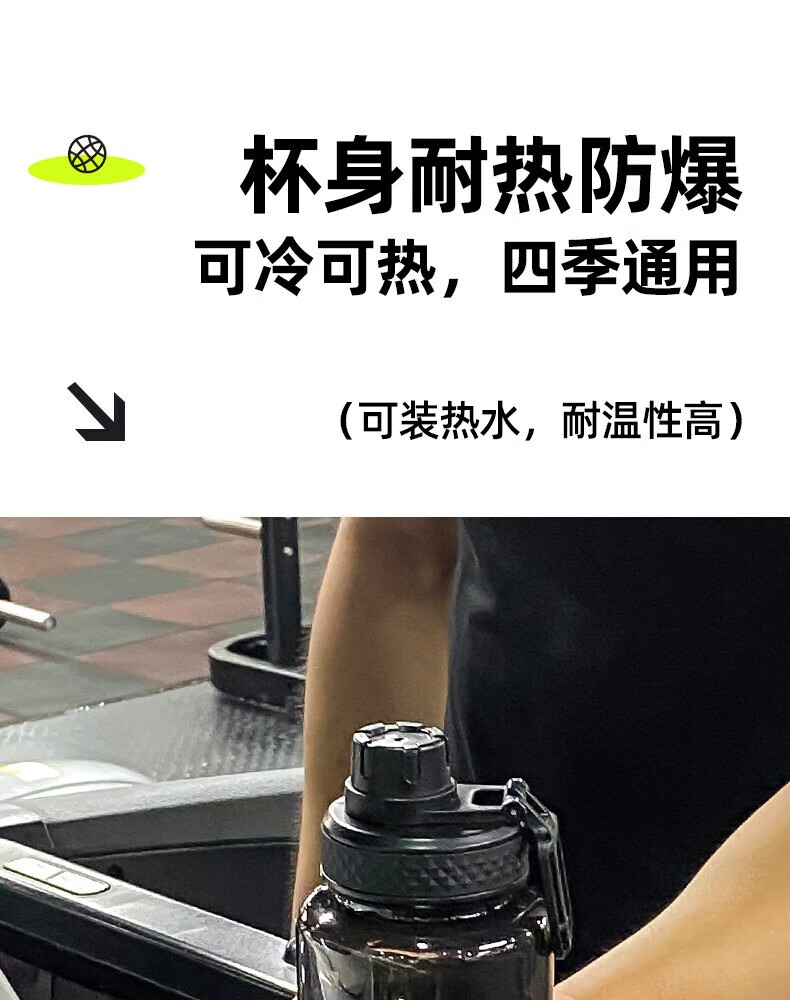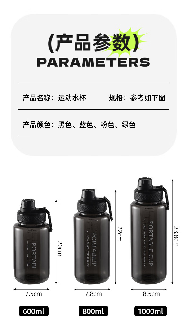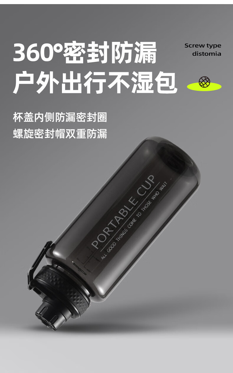 Large capacity 1000ml sports water cup, anti-fall plastic cup for boys, high temperature resistant, portable, simple, handy cup for girls, XL-102 black, 1 piece 1000ml