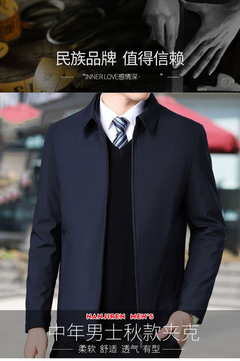 Spring and Autumn New Men's Business Casual Cadre Jacket Middle-aged and Elderly Dad Lapel Men's Jacket Top 008 Navy Blue 4XL Recommended 170-200Jin Jin equals 0.5 kg