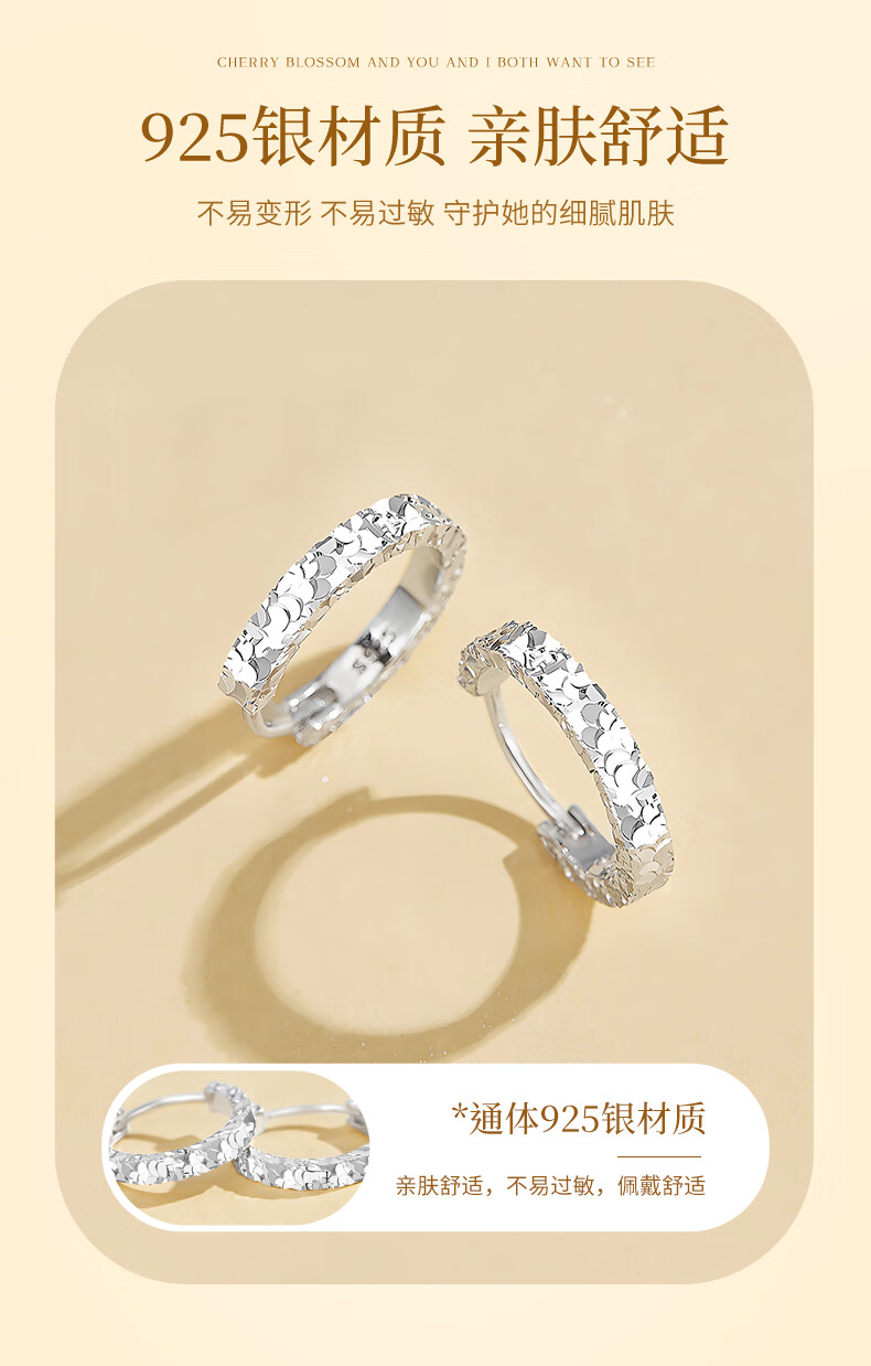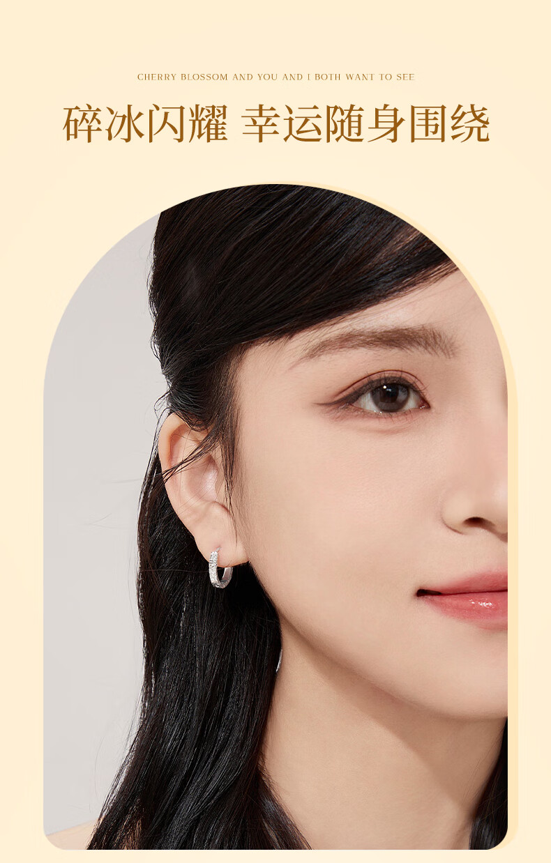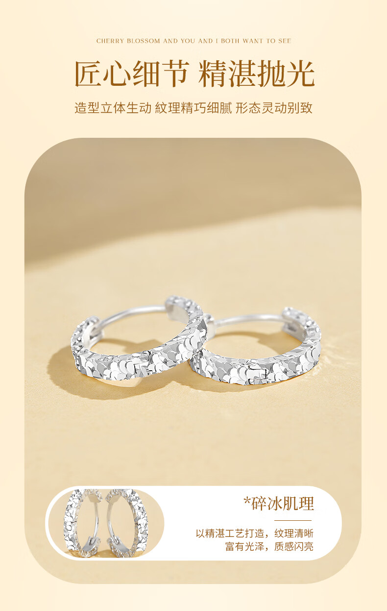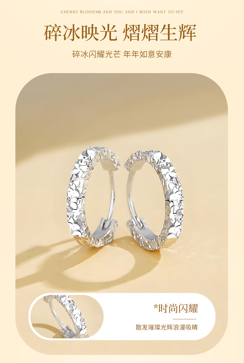 Lao Fengxiang S925 sterling silver earrings for girls, fashionable and high-end crushed ice earrings, Valentine's Day birthday gift for girlfriend and wife, crushed ice earrings - brand gift box