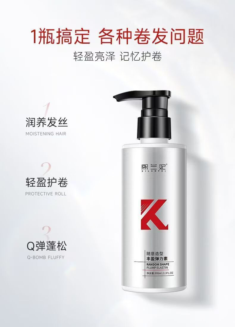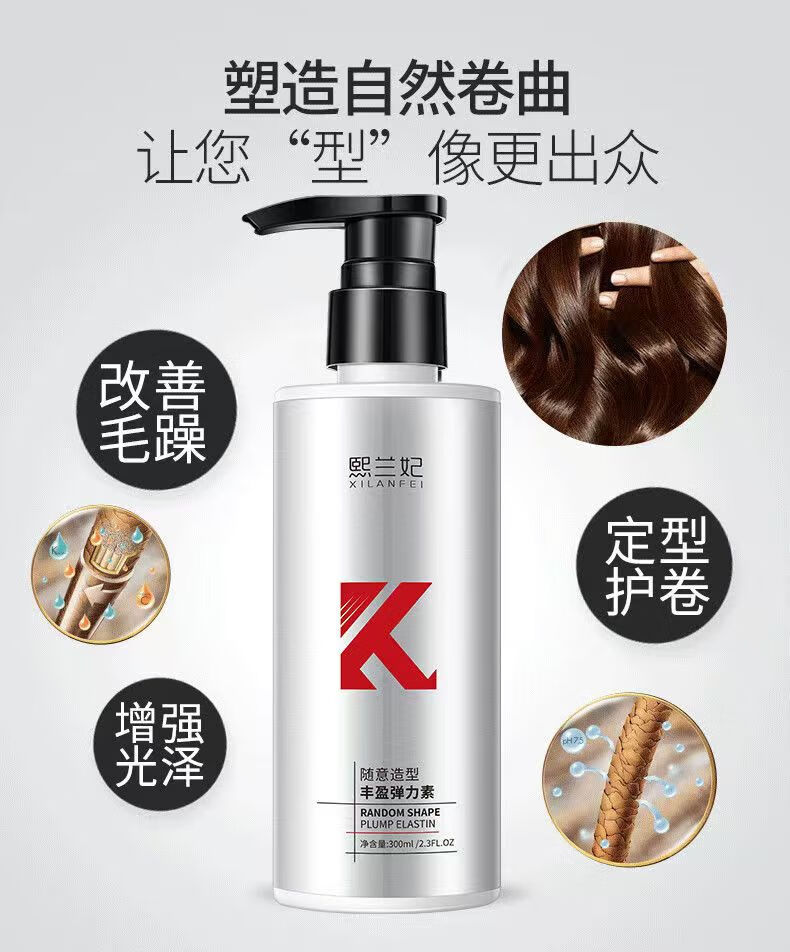 Xilan Fei Elasticity for Women's Curly Hair Moisturizing Long-lasting Styling Anti-frizz Fluffy Hair Care Essence Elasticity Curl After Perming 1 bottle of Moisturizing Styling Curly Elasticity