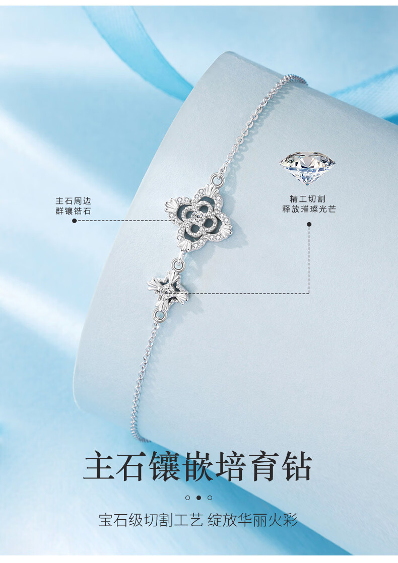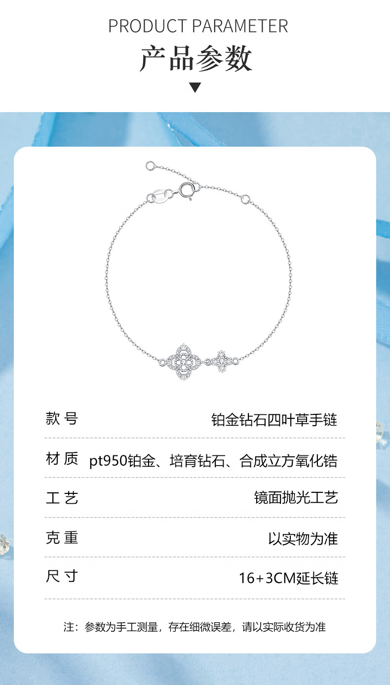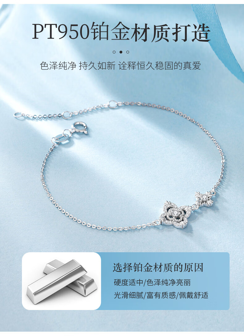 Grace Girl Platinum Diamond Four-leaf Clover Bracelet Women's Light Luxury High-end Hand Jewelry Transfer to Girlfriend Birthday Gift Valentine's Day Platinum Diamond Four-leaf Clover Bracelet + Light Luxury Gift Box
