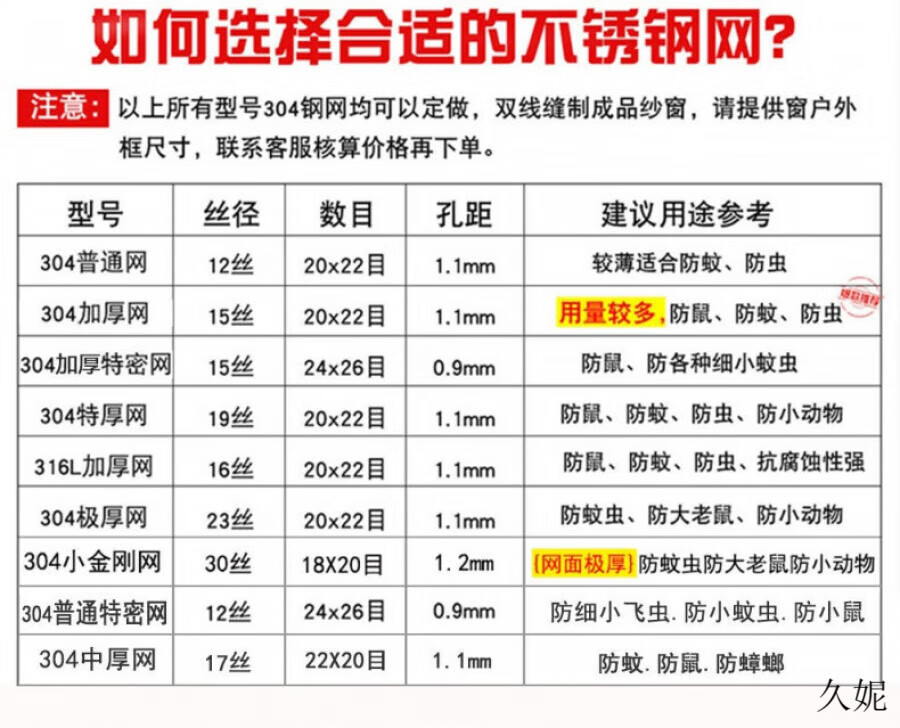 Stainless steel anti-mosquito screen, thickened and encrypted, screen, window screen, plastic steel, aluminum alloy anti-rat net, 304L ordinary type (anti-mosquito) 0.8*1m