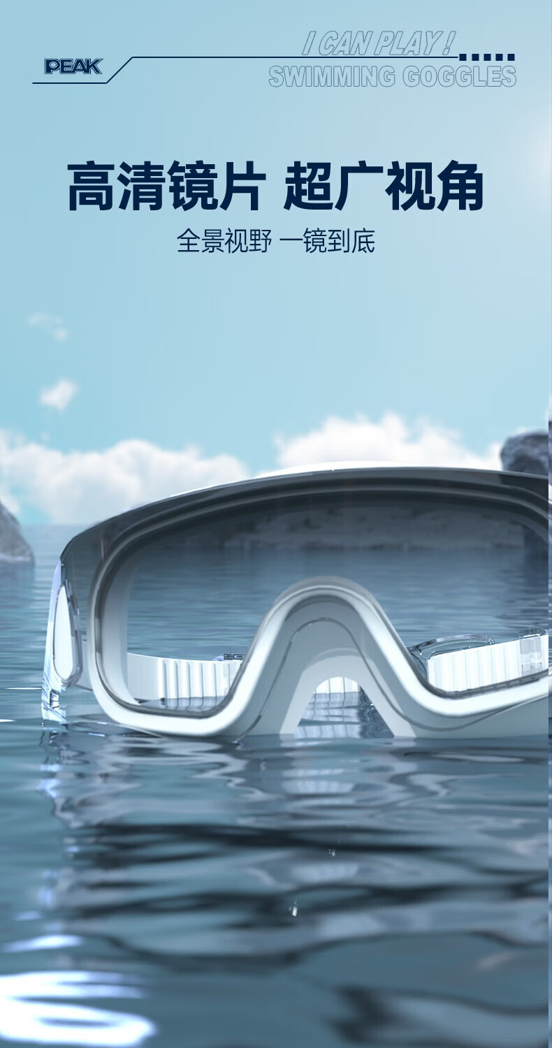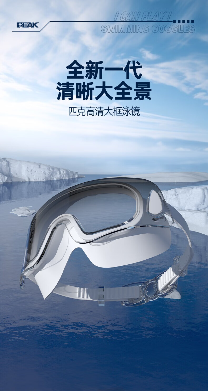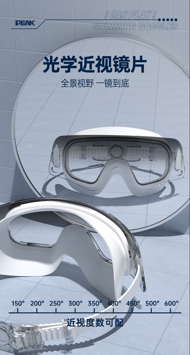 Peak swimming goggles for myopia adult large frame high-definition swimming goggles and swimming cap set for men and women, anti-fog and waterproof swimming equipment, smoke blue and black, flat/not myopic