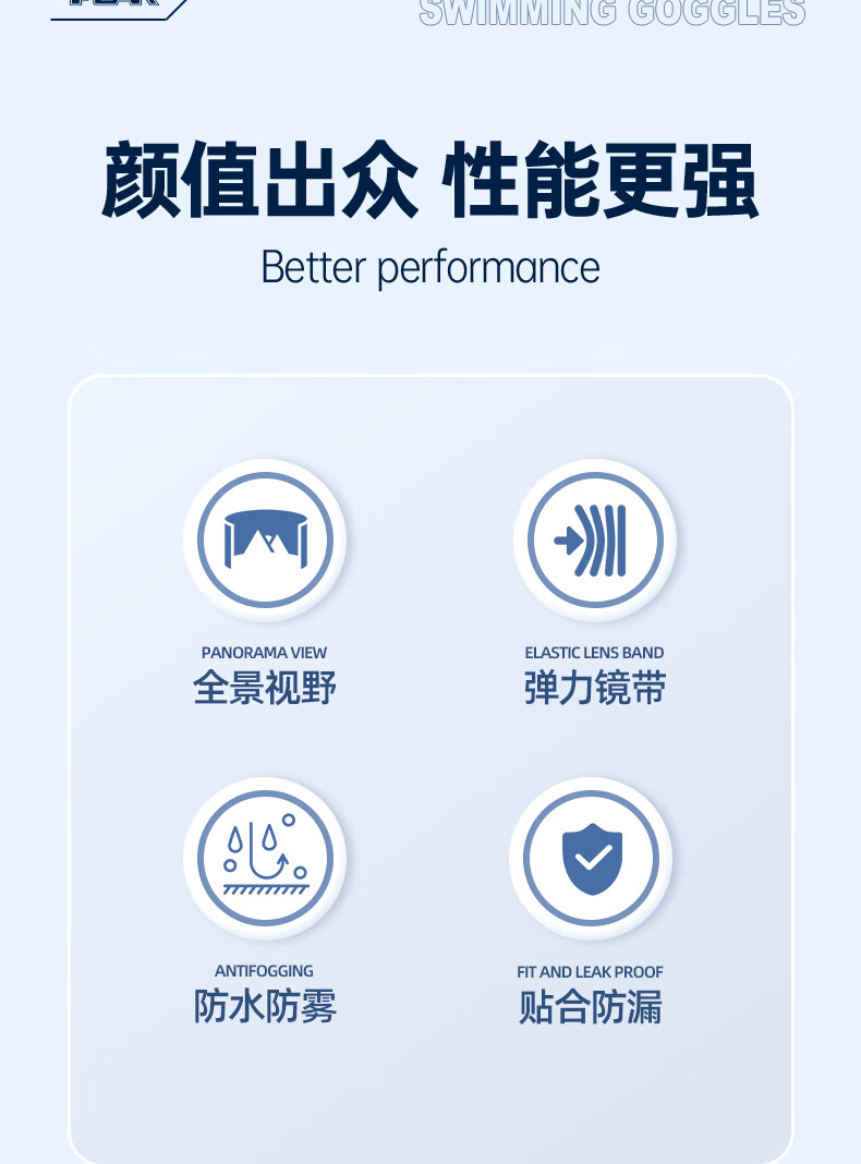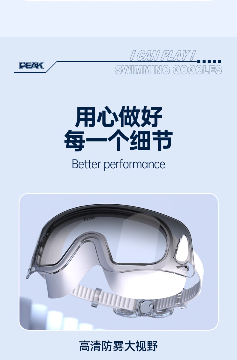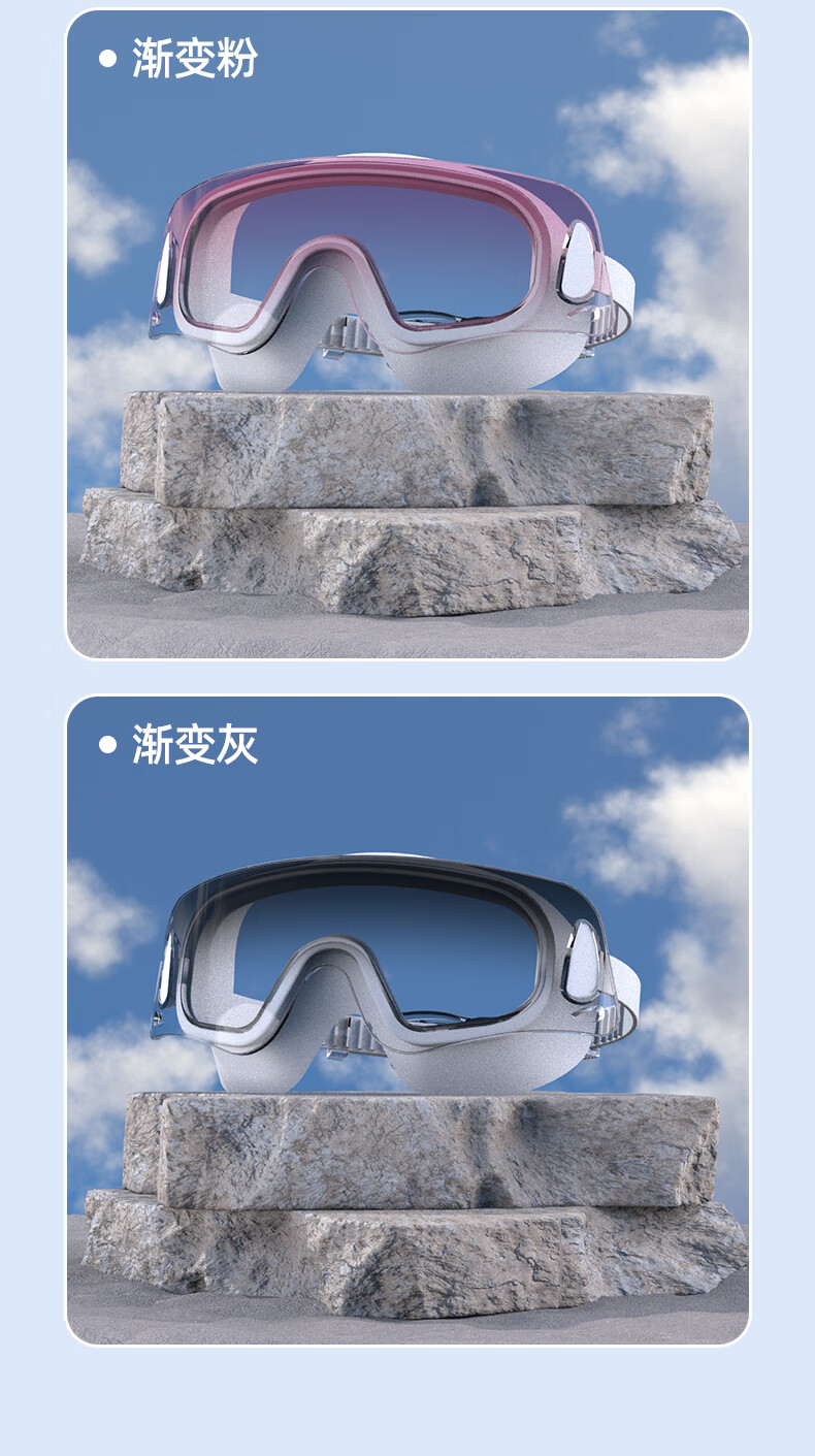 Peak swimming goggles for myopia adult large frame high-definition swimming goggles and swimming cap set for men and women, anti-fog and waterproof swimming equipment, smoke blue and black, flat/not myopic