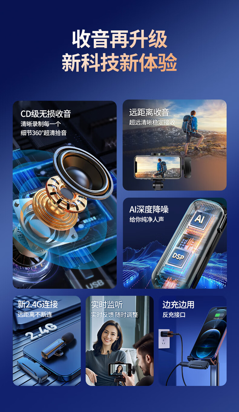 Fashion tribal radio microphone wireless lavalier microphone supports mobile phones, cameras, computers, tablets, Bee live recording equipment, Douyin short video shooting, karaoke noise reduction wireless microphone, Type-c interface, Android/Apple 15,16, one to one