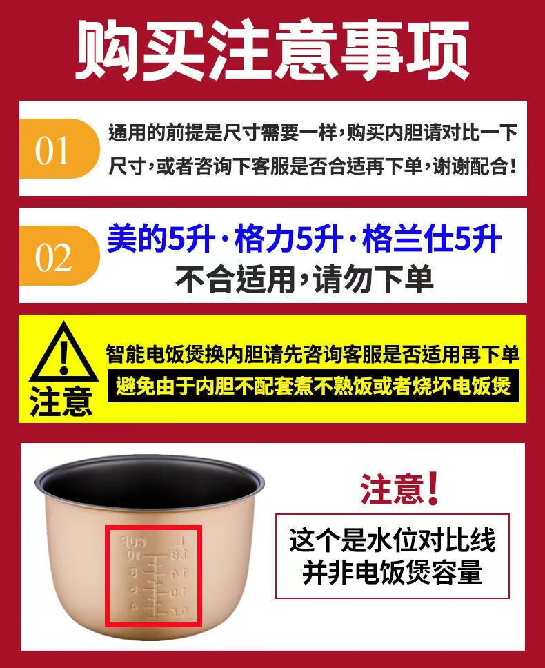 Suitable for universal 3 liters, 4 liters, 5 liters, Malida hemisphere, Xianke Meiling Changhong rice cooker, extra thick ball kettle, non-stick pot, 5L health-preserving non-stick ball kettle, flat bottom