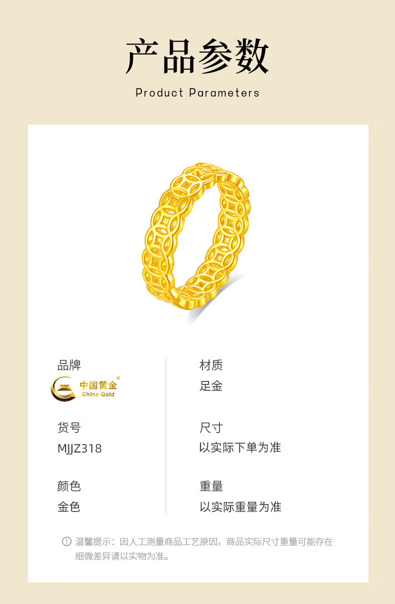 China Gold (CHINA GOLD) Gold Copper Coin Ring Women's Football Gold Closed Qian Duoduo Coin Ring Birthday Gift for Girlfriend Gold Weight About 1g* Daily Dou Gold Copper Coin Ring Circle Mouth 18#