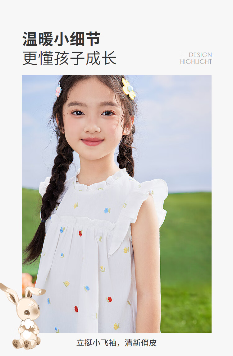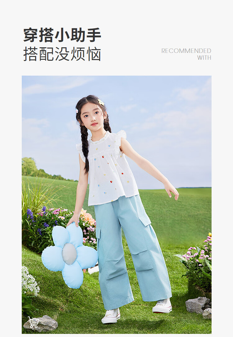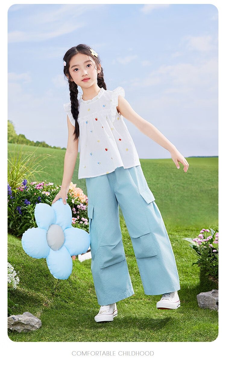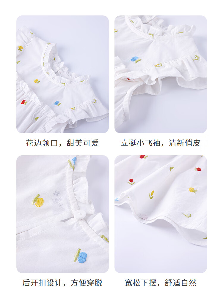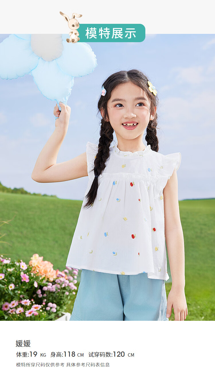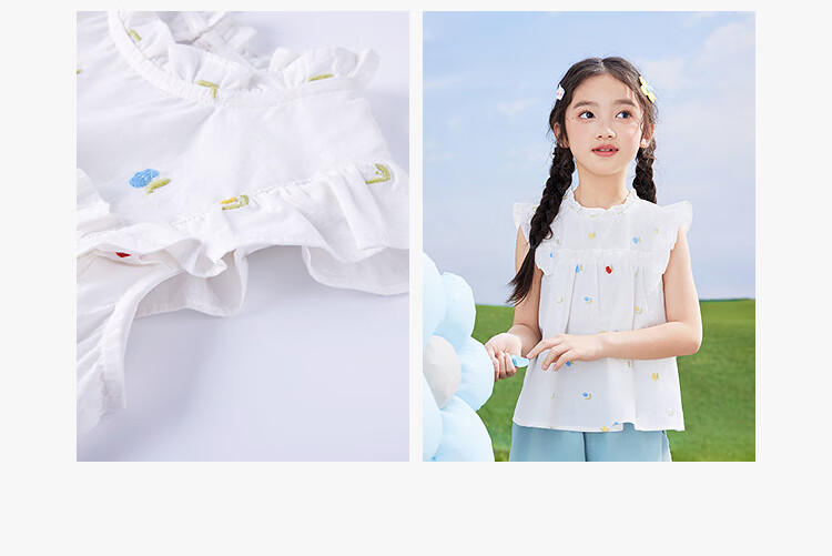 Xiaoyinman girls' shirt ruffled small flying sleeves summer children's middle and large children's fungus round neck casual top flower art 150
