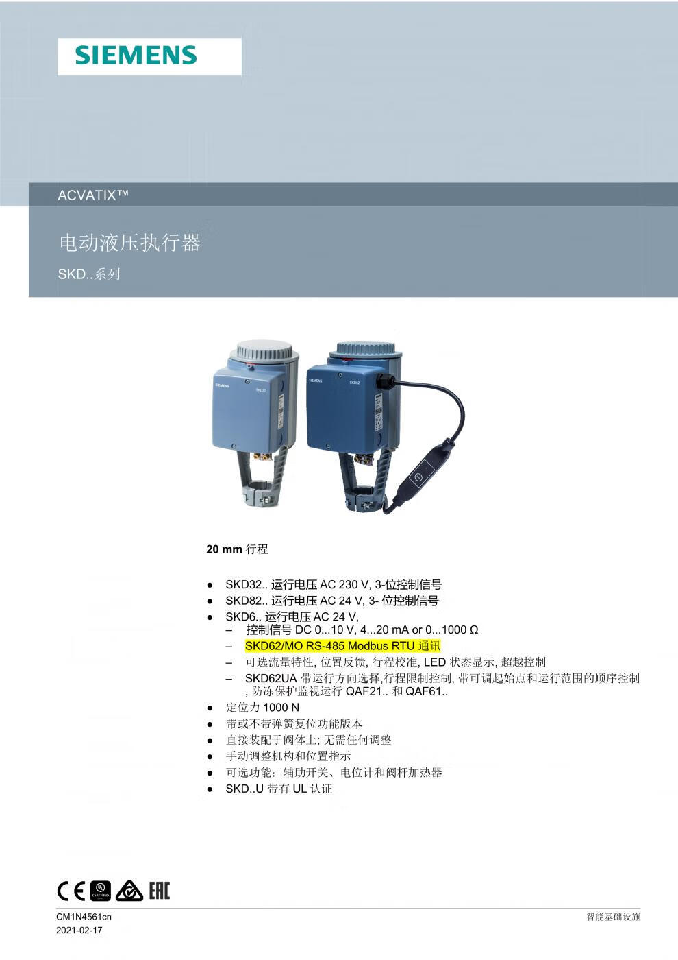 Siemens SKD62 SKC60 SKB electro-hydraulic actuator proportional adjustment temperature control steam water valve SBV61 (AC24V) 0-10V