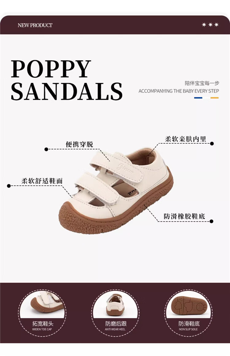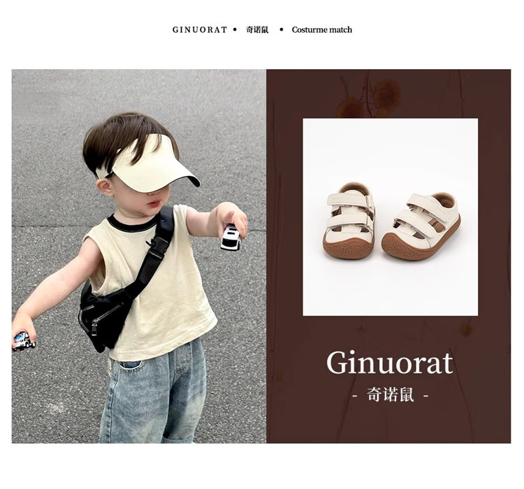 Chino Mouse Children's Sandals Boys 2025 Summer New Style Infant Girls 1-3 Years Old Functional Shoes Baotou Summer Toddler Shoes Beige Size 17 (Inner Length 11.6cm Suitable for Foot Length 11.1cm)