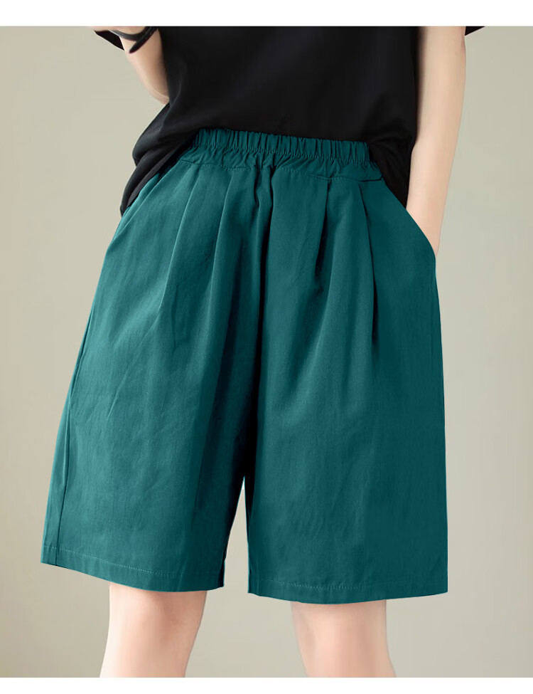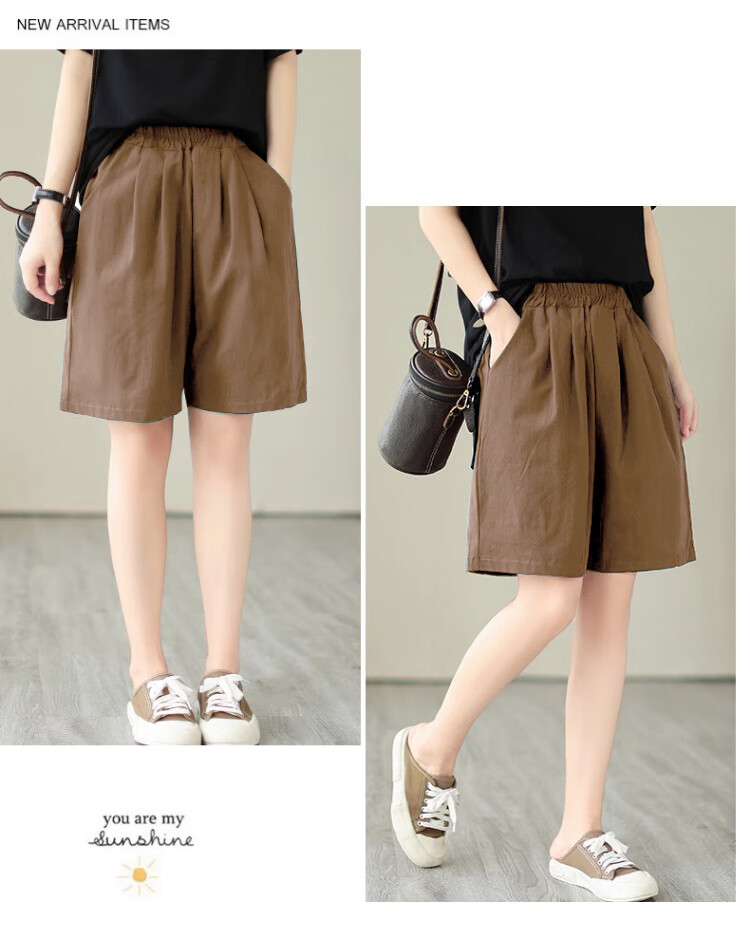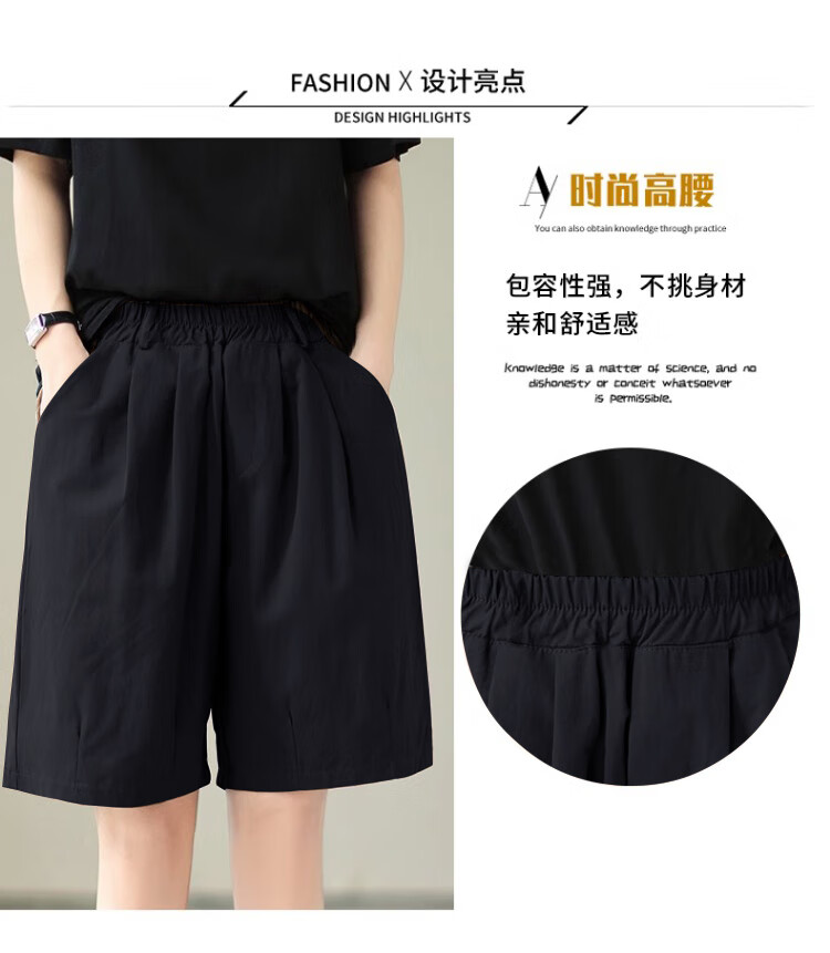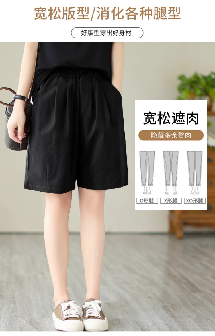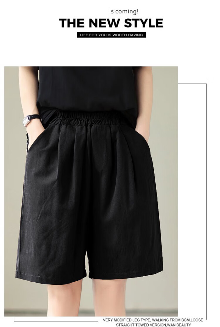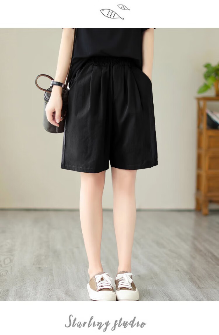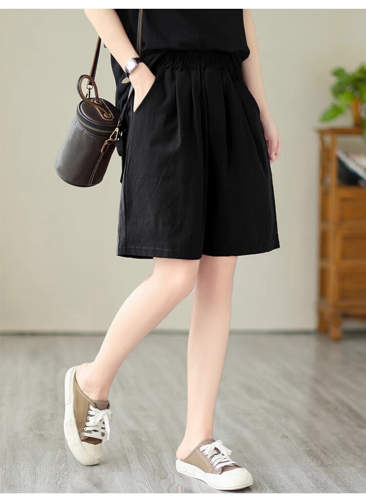 Pure cotton high-waist slim women's pants, thin, versatile, large size, casual, petite, shorts, summer wide-leg pants, black XL recommended 110-125 Jin Jin equals 0.5 kg
