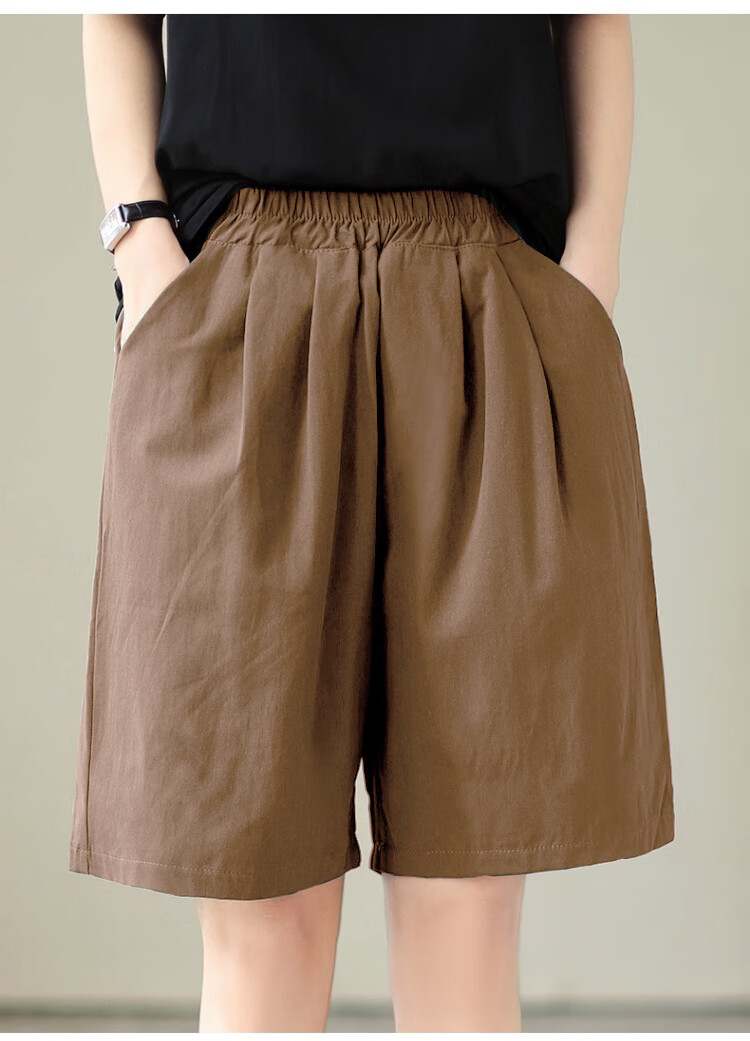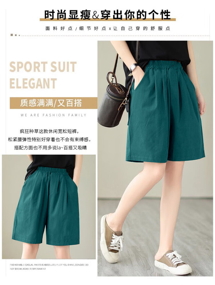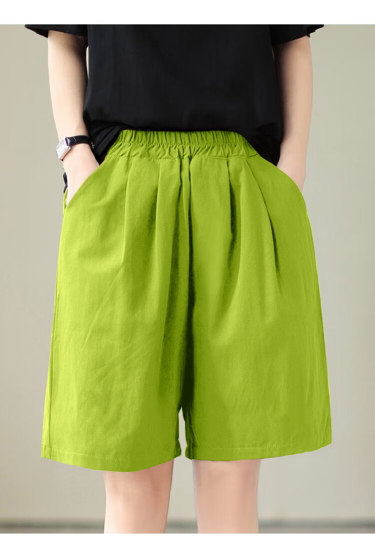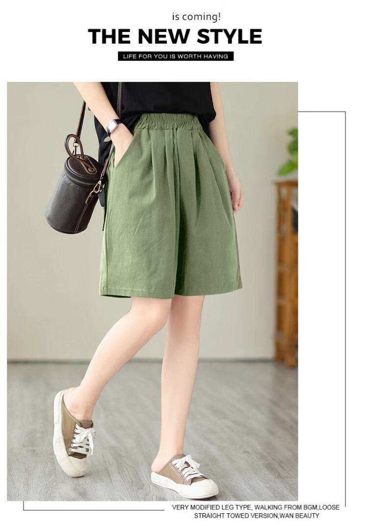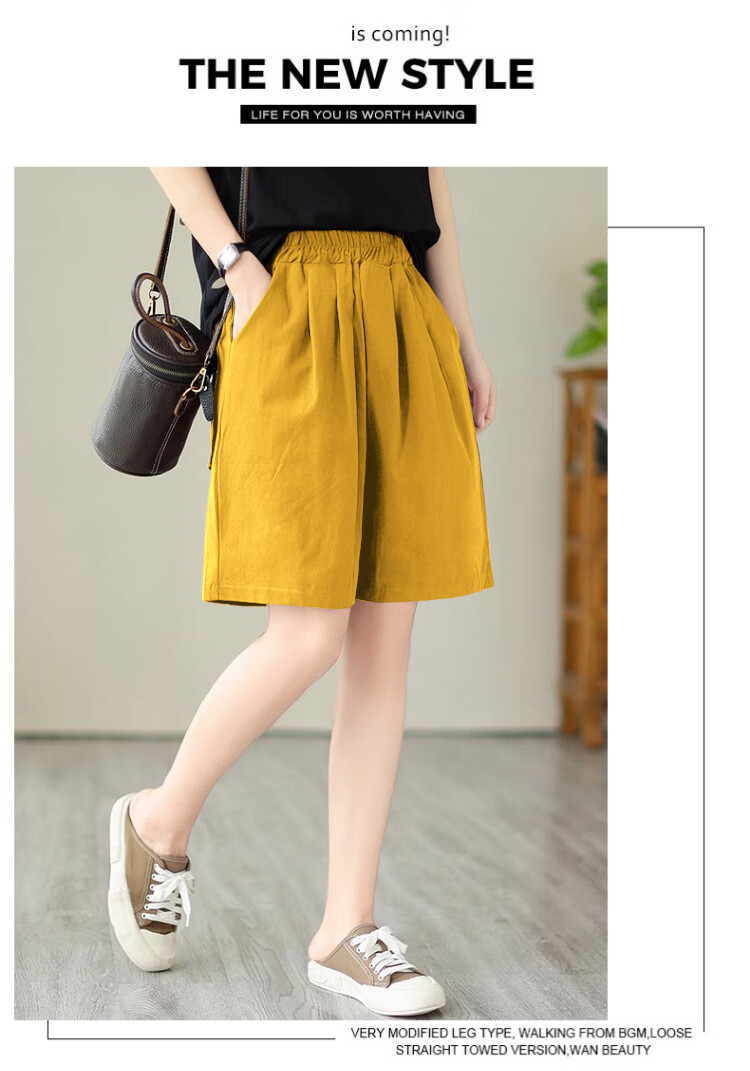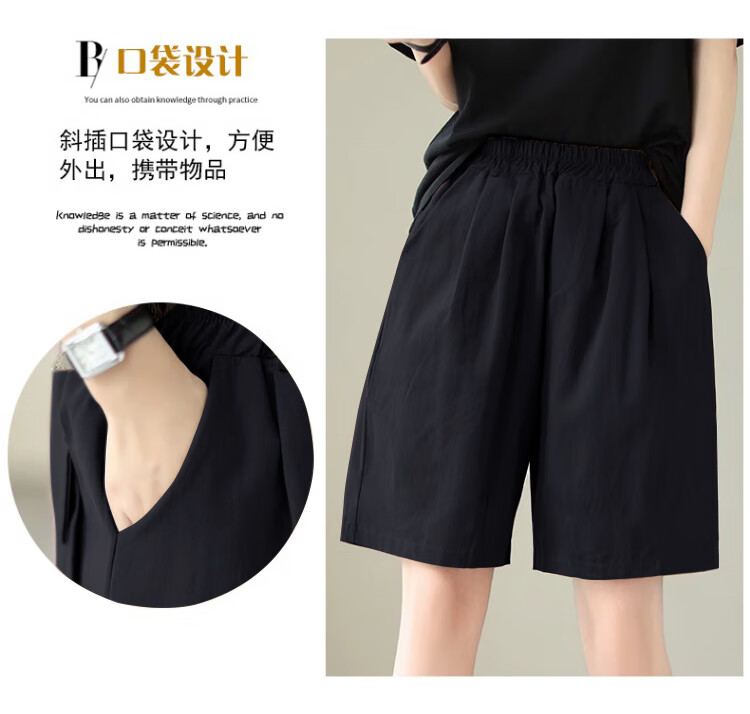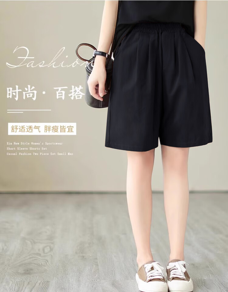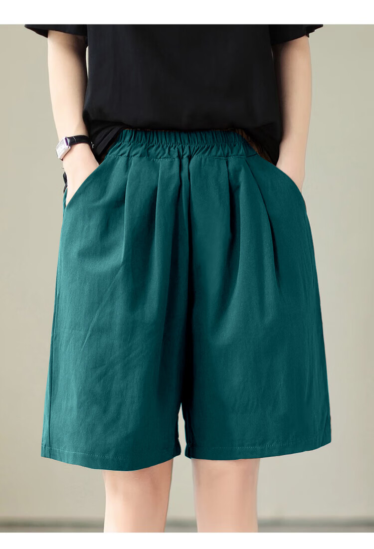 Pure cotton high-waist slim women's pants, thin, versatile, large size, casual, petite, shorts, summer wide-leg pants, black XL recommended 110-125 Jin Jin equals 0.5 kg
