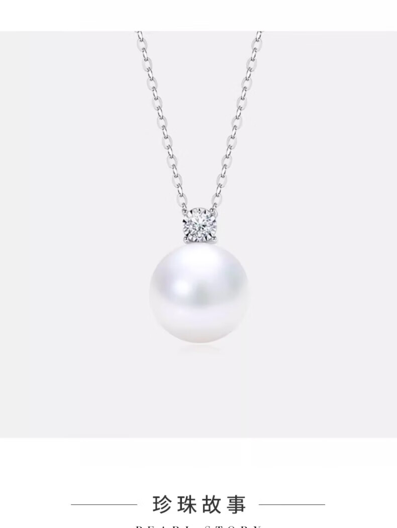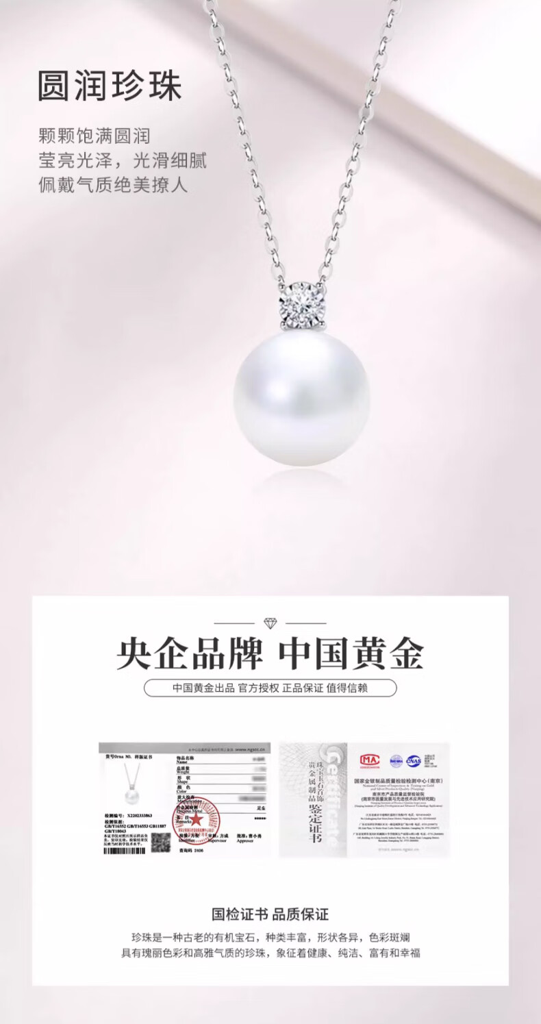 CHINA GOLD Freshwater Pearl Pendant Women's 925 Silver Necklace Princess Style Clavicle Valentine's Day Birthday Gift for Girlfriend and Wife About 10mm Pearl Necklace-s925 Brand Gift Box