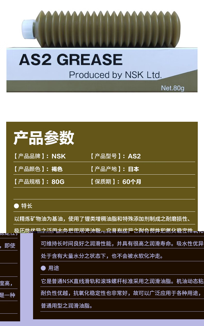 Japan imported NSK grease screw guide spindle lubricant AS2 PS2 LR3 NSL NS7 LG2 LGU LR3