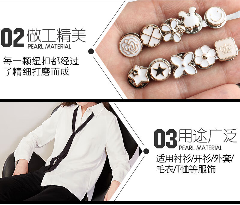 Qingyu pins to fix clothes, invisible seam-free buttons, concealed buttons for women's anti-exposure shirts and cardigans, removable snap buttons, versatile, small and fresh white (5 pieces)