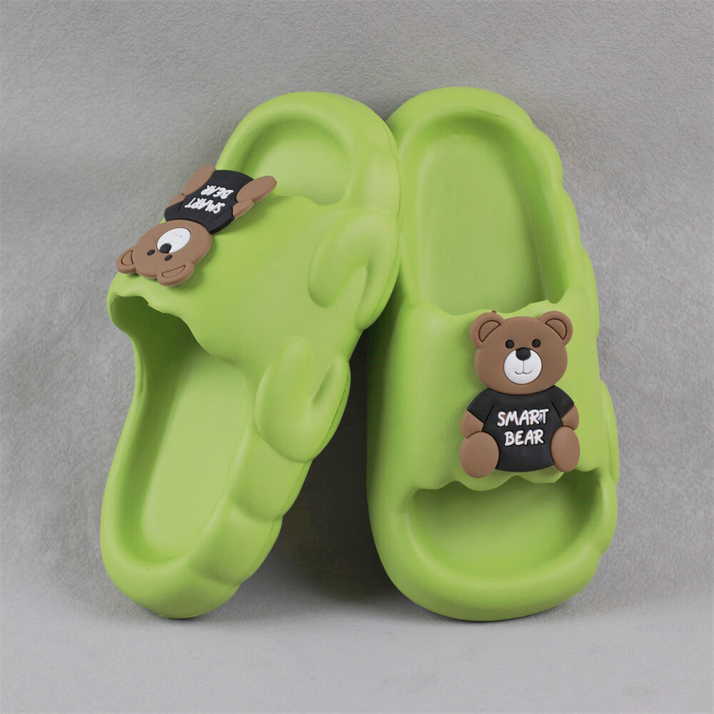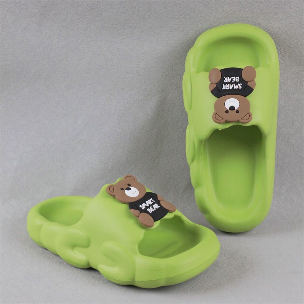 Fashionable cartoon bear wear-resistant high-elasticity high-quality children's slippers EVA material boys and girls green single layer 32 210mm foot length 20.5CM can be worn
