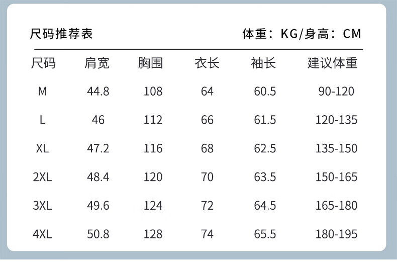China (cm) 165 / 88-90 170 / 96-98 175 / 108-110 180 / 118-122 185 / 126-130
