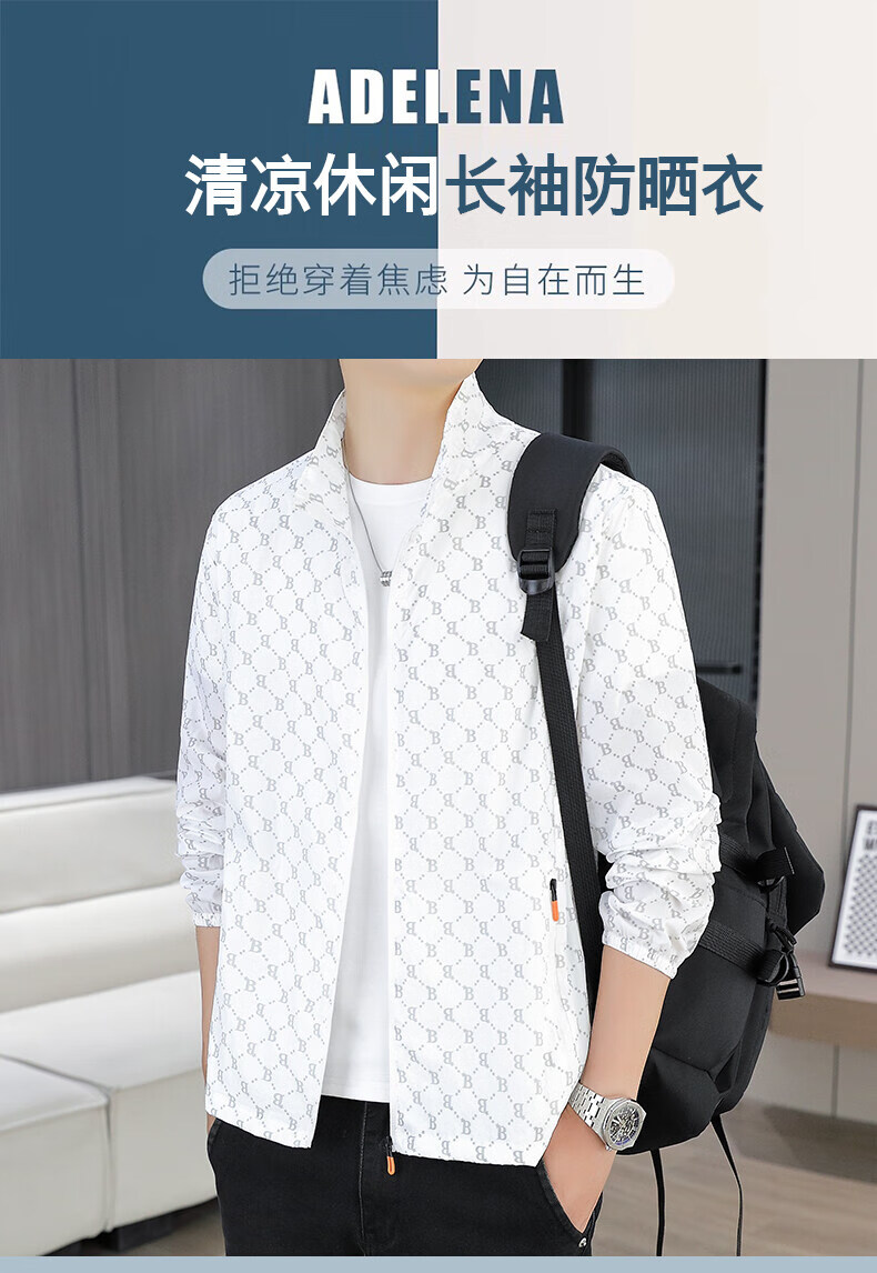 Woodpecker Sun Protection Jacket Men's Summer Lightweight Ice Silk Jacket Men's Outdoor Fishing Wear Breathable Skin Jacket White XL