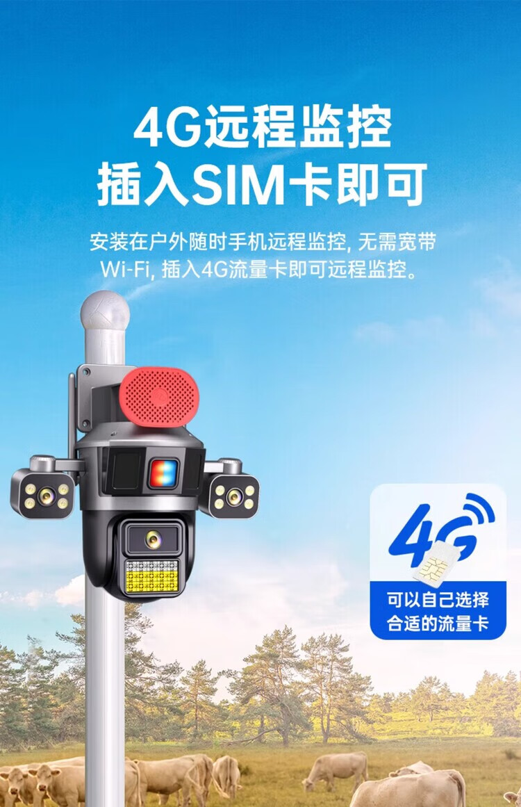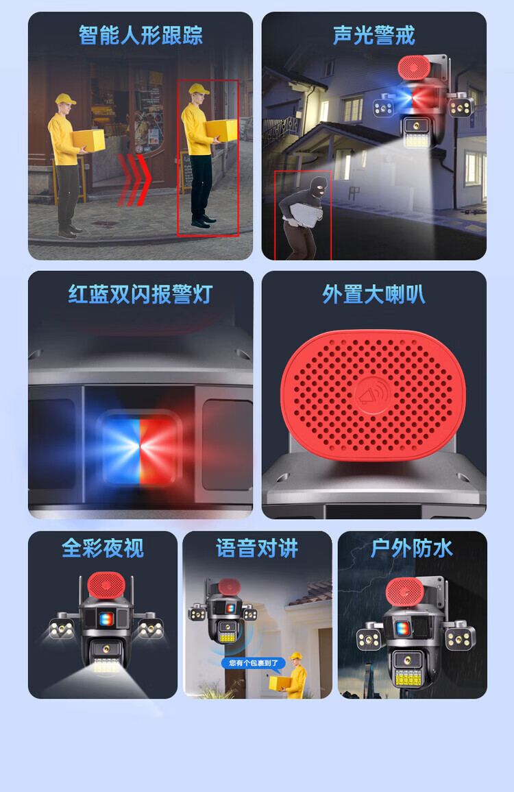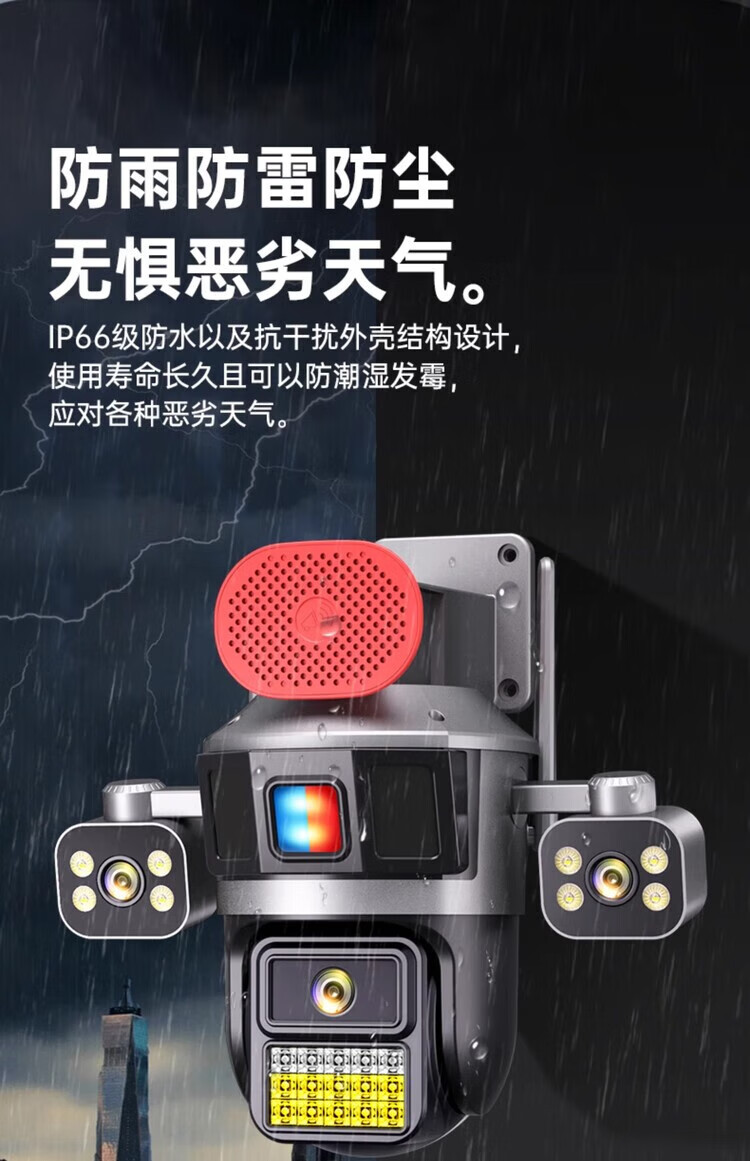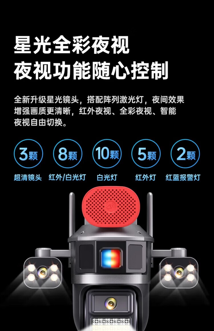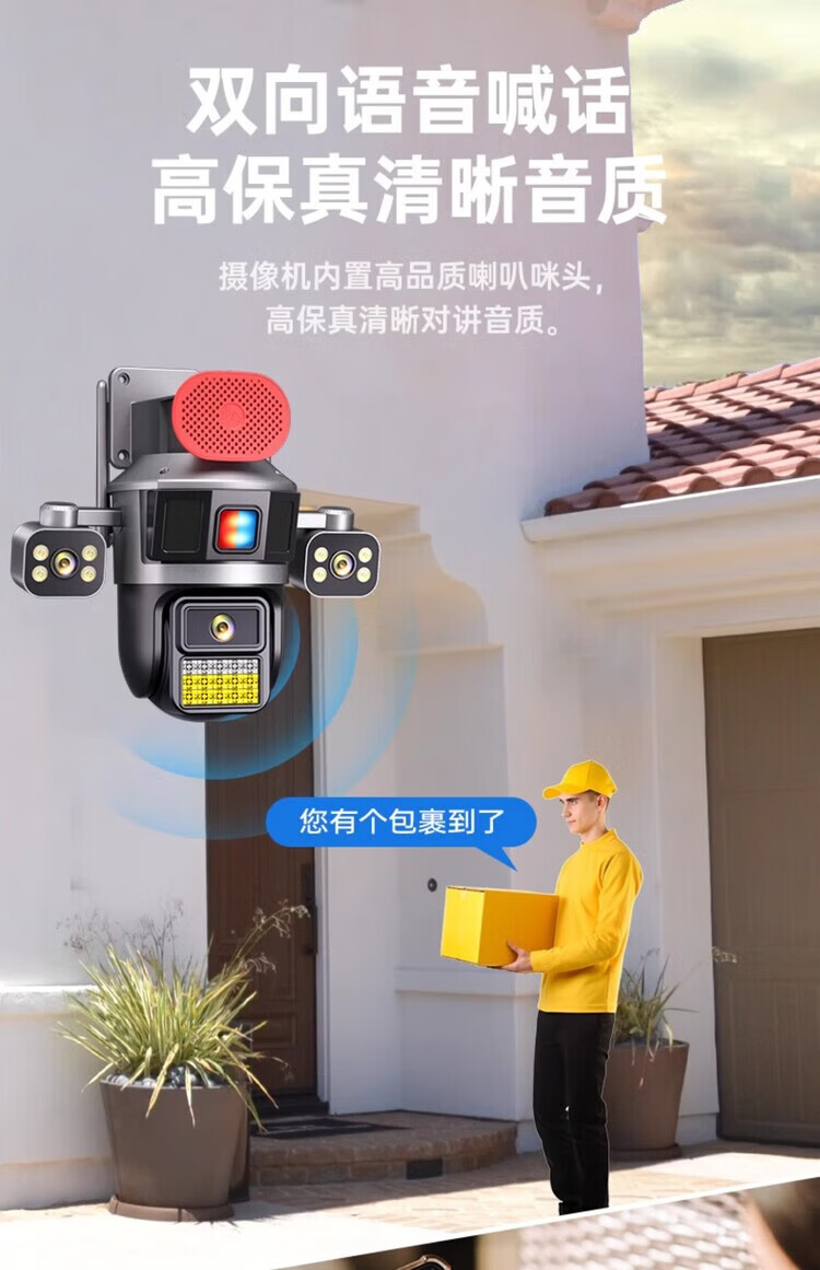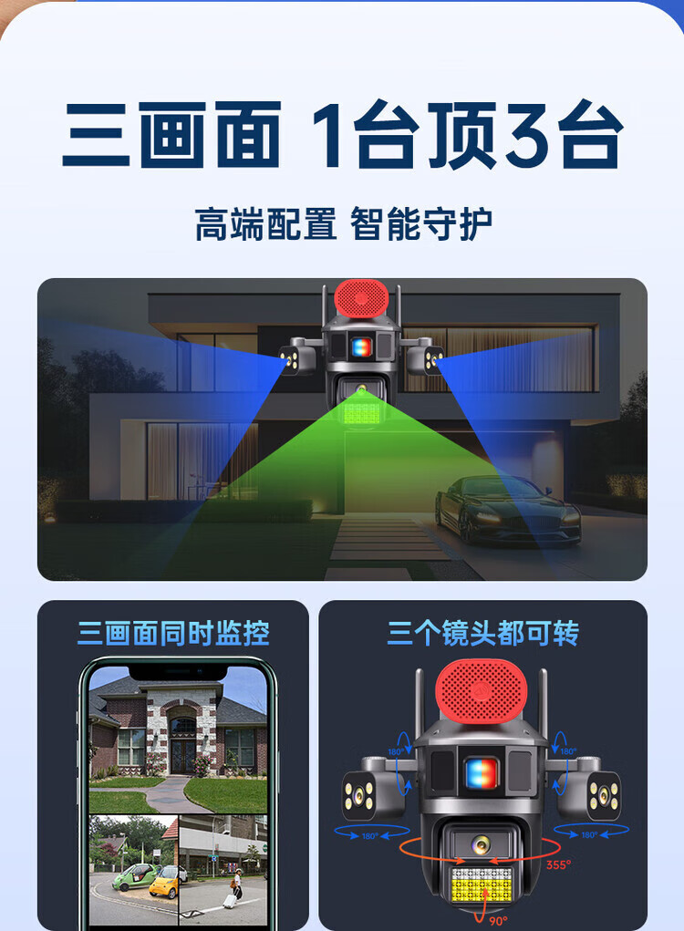 Machine camera 360-degree wireless home mobile phone remote high-definition outdoor three-screen surveillance with voice indoor and outdoor office building and shop self-built wifi model - ultra-clear robotic arm three-camera rotating three-camera + tweeter + red 15-day loop recording standard (monitoring distance 6-15 meters) 3MP