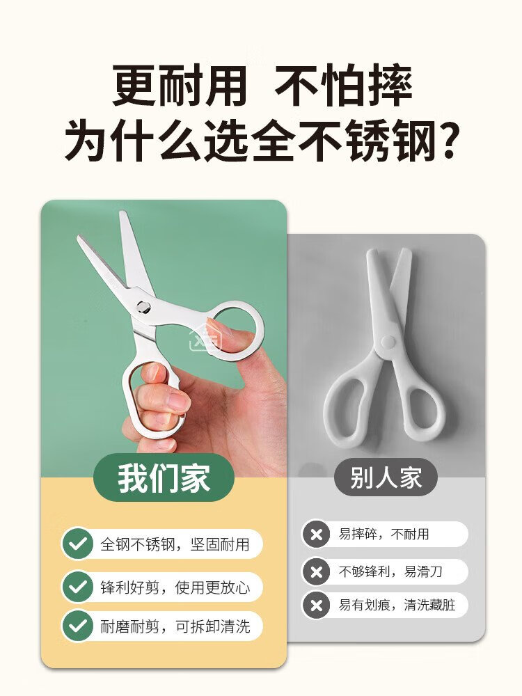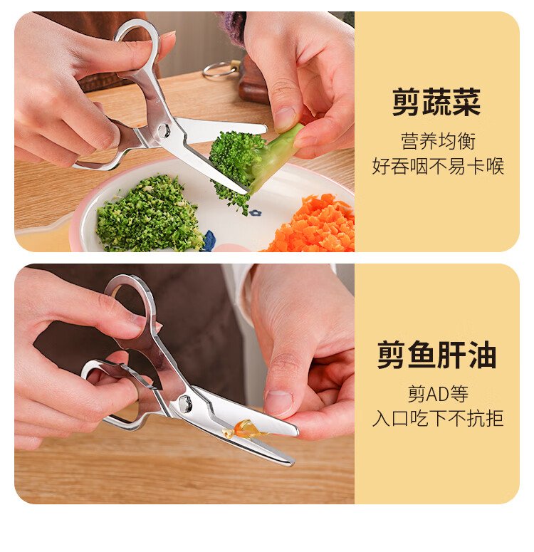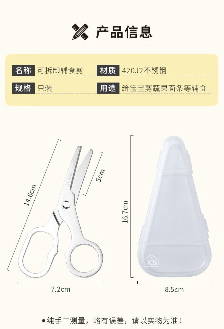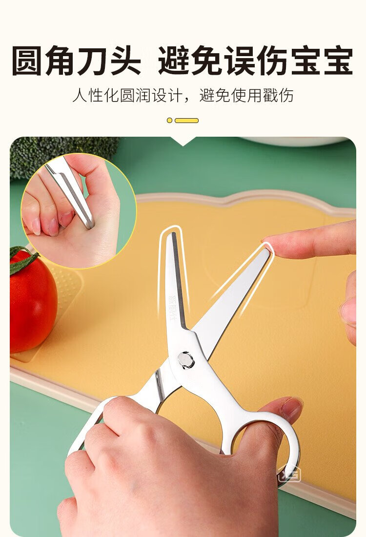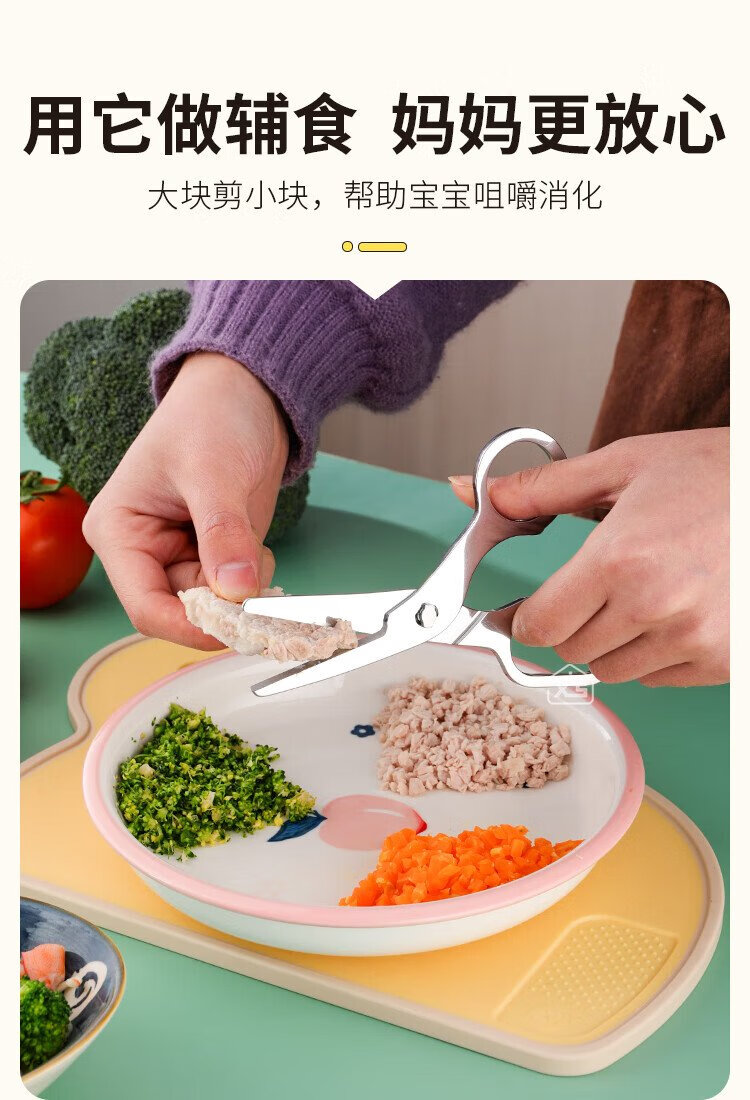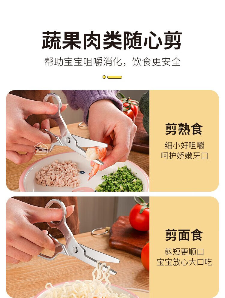 Necooks baby and children's food supplement scissors household stainless steel baby food tool portable small scissors detachable food scissors 1 pair food sharpening scissors - free storage box